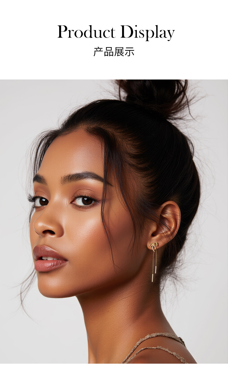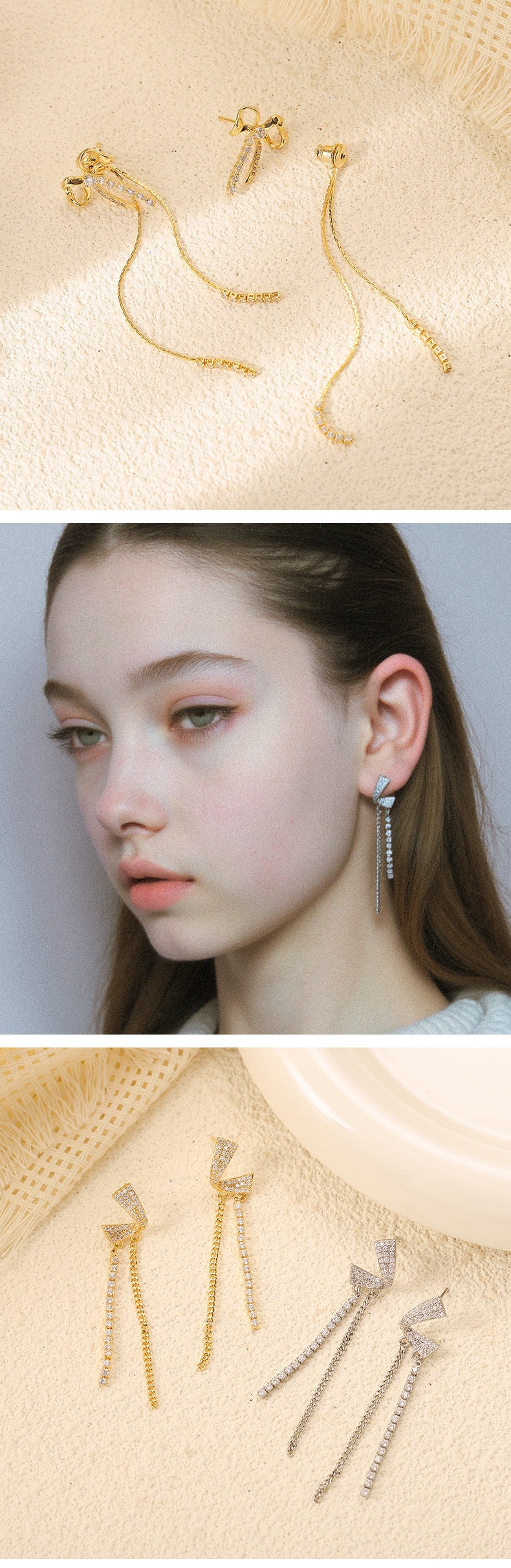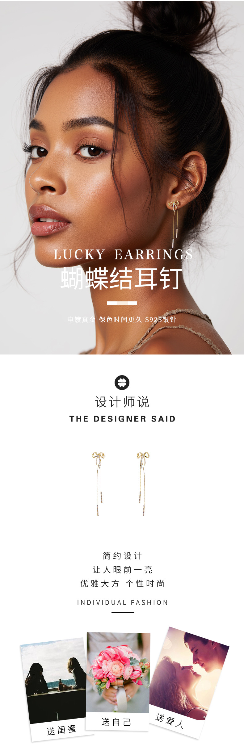 小众设计蝴蝶结流苏耳钉铜锆石银针耳饰轻奢高级气质女款耳环耳饰