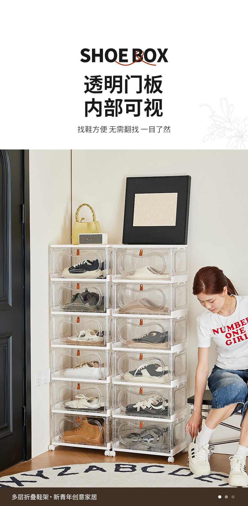 折叠鞋柜免安装家用门口防尘鞋架宿舍鞋子收纳箱塑料透明折叠鞋架