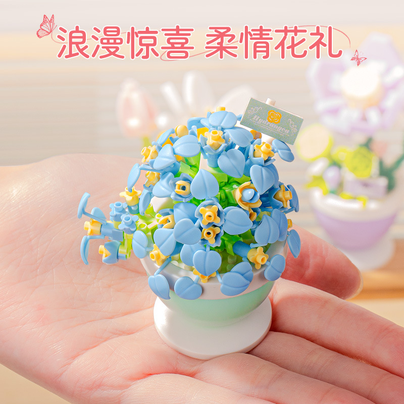 跨境花漾盆栽系列微颗粒拼装积木花永生花玩具节日小礼品代发批发