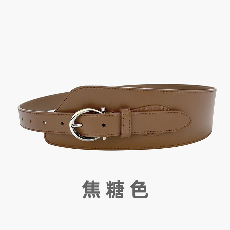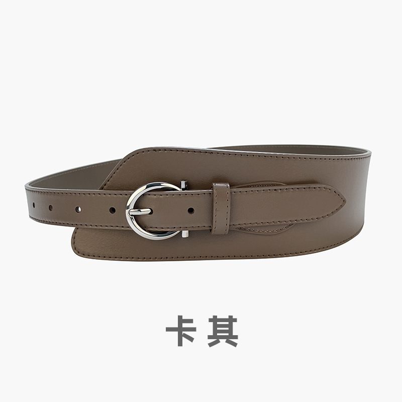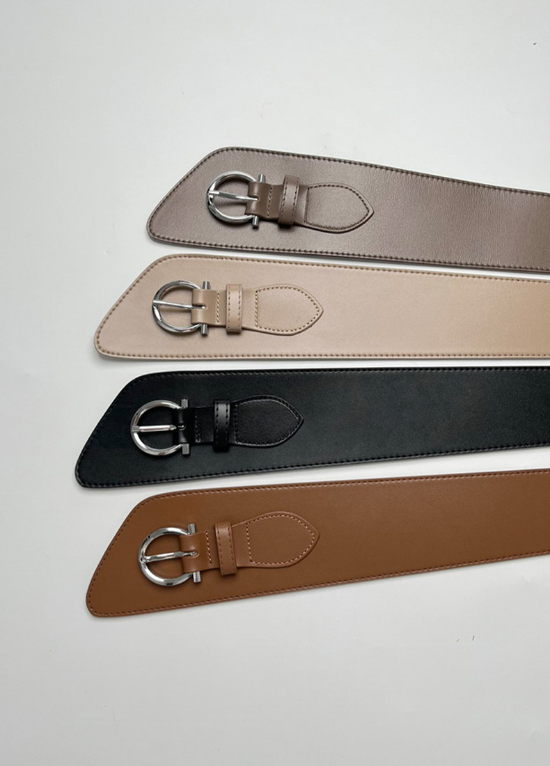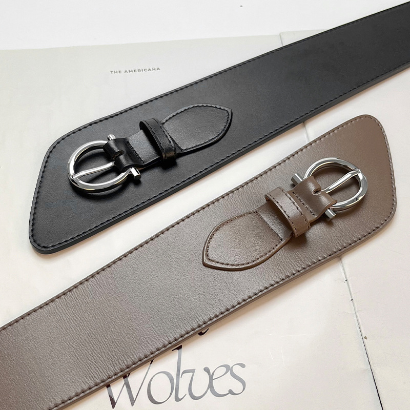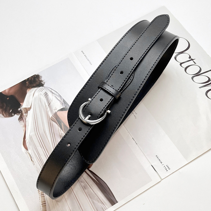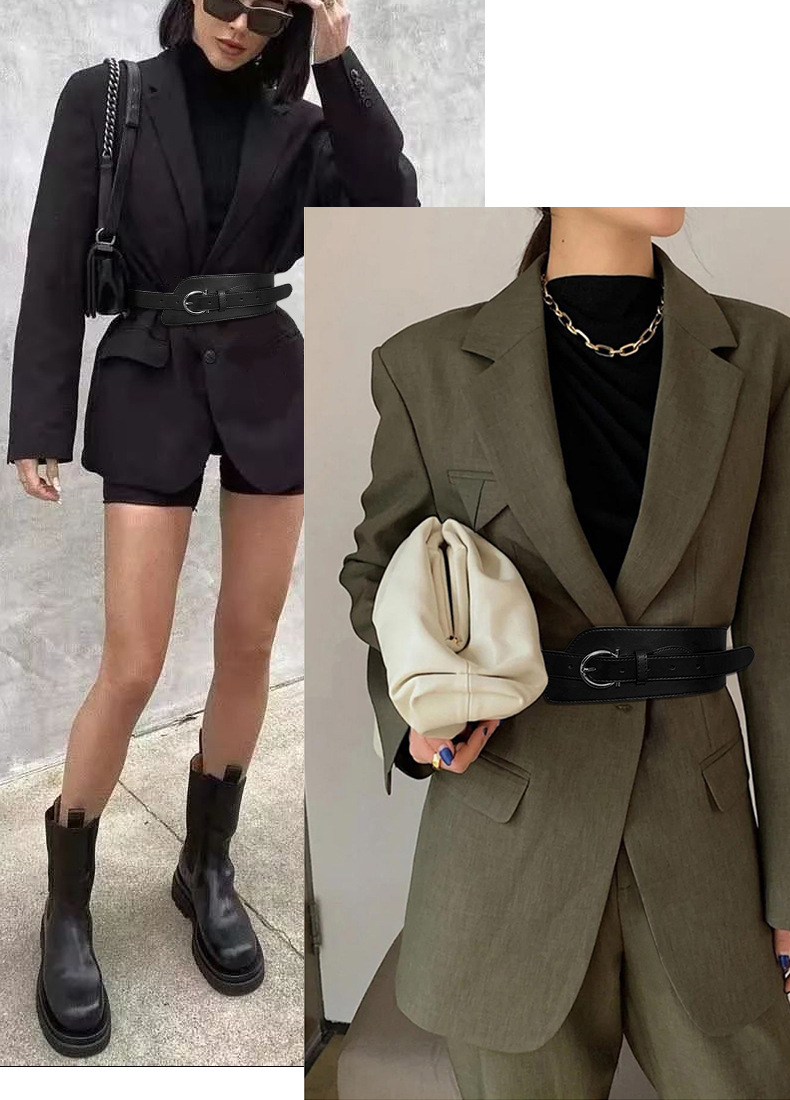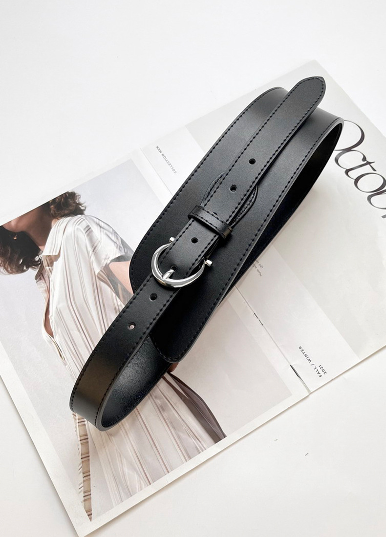 女士腰封装饰时尚配大衣西服束腰收腰针扣真牛皮腰饰腰带黑色皮带