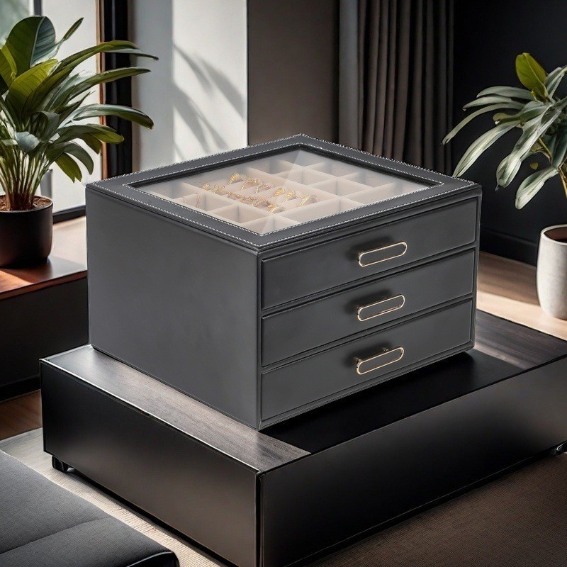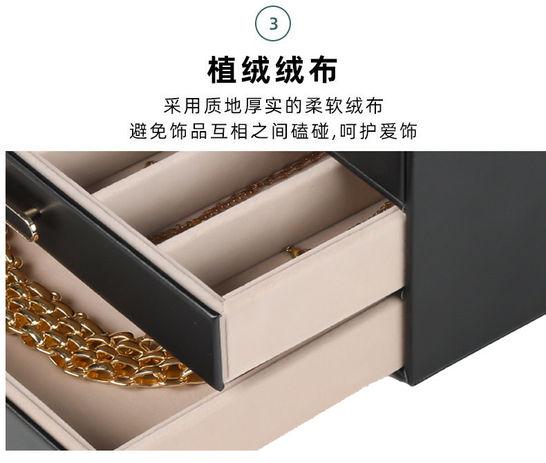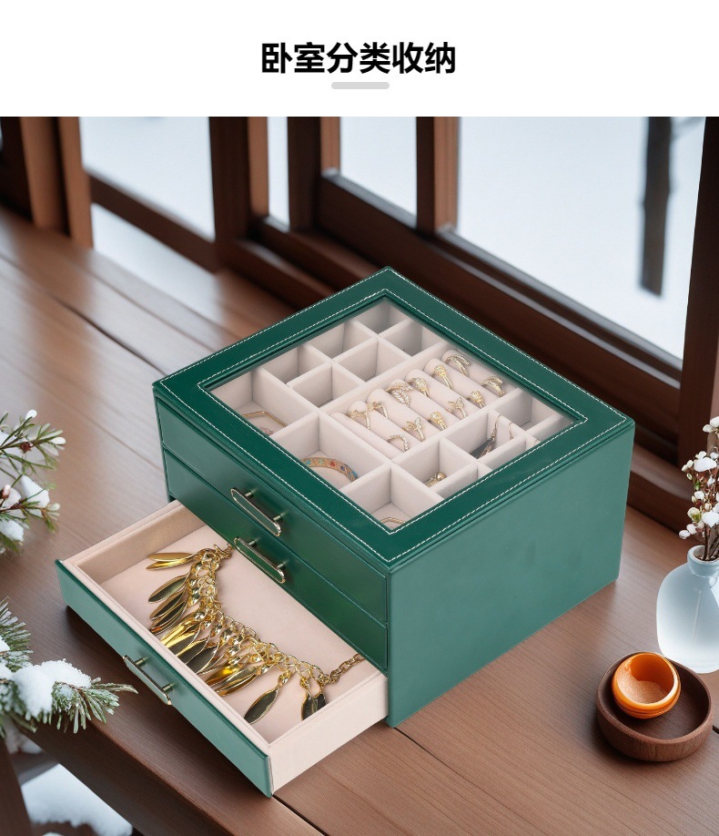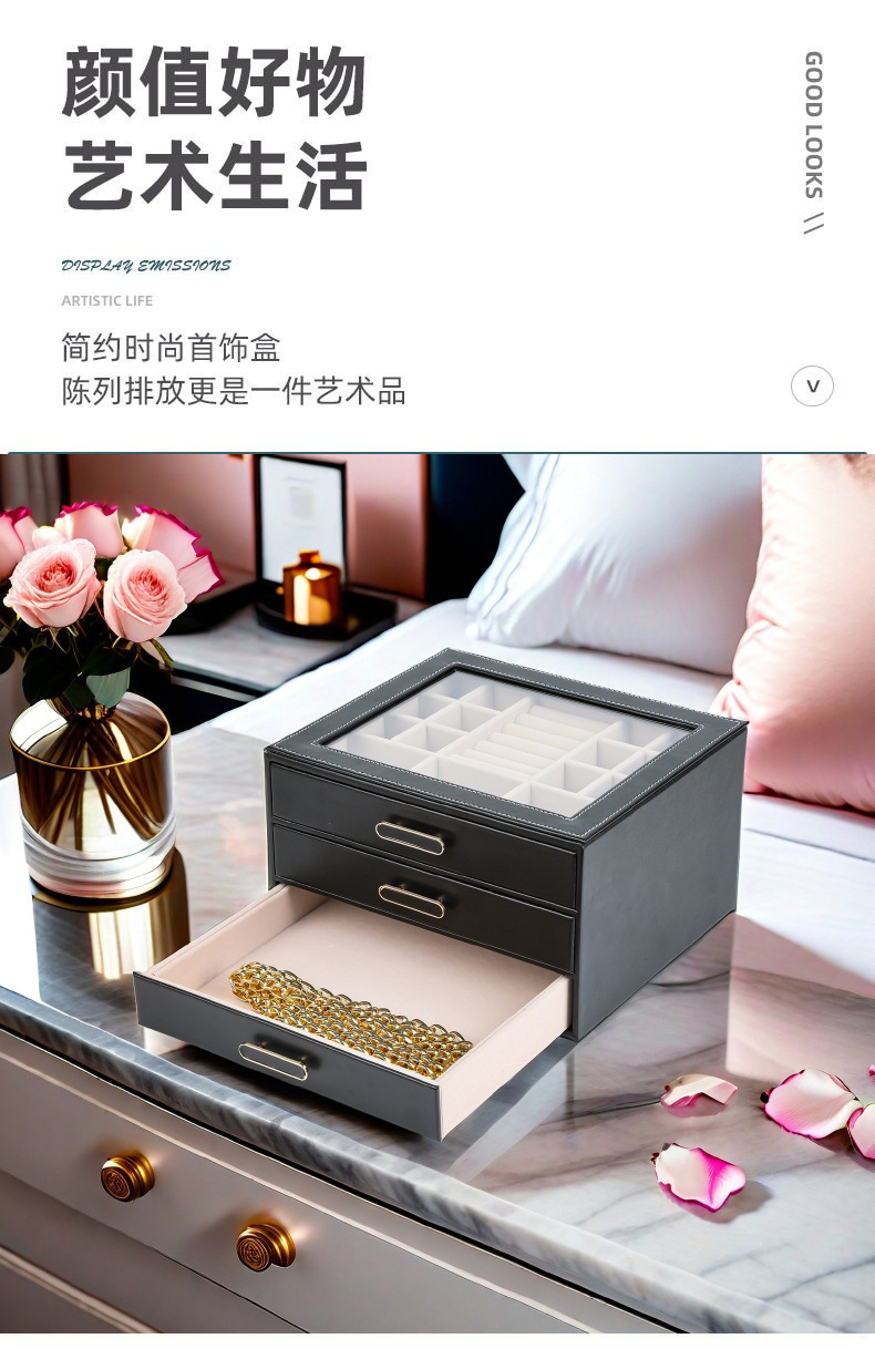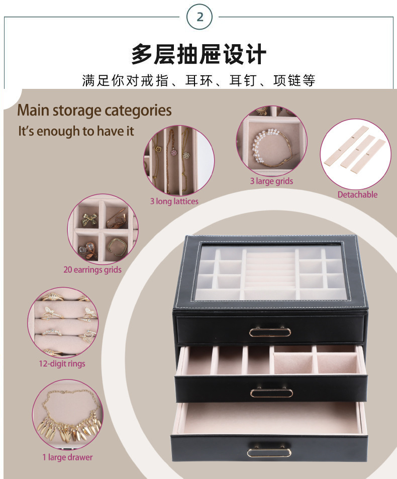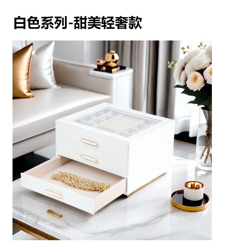 大容量三层首饰盒收纳盒透视款百宝耳环收纳饰品盒子PU材质戒指盒