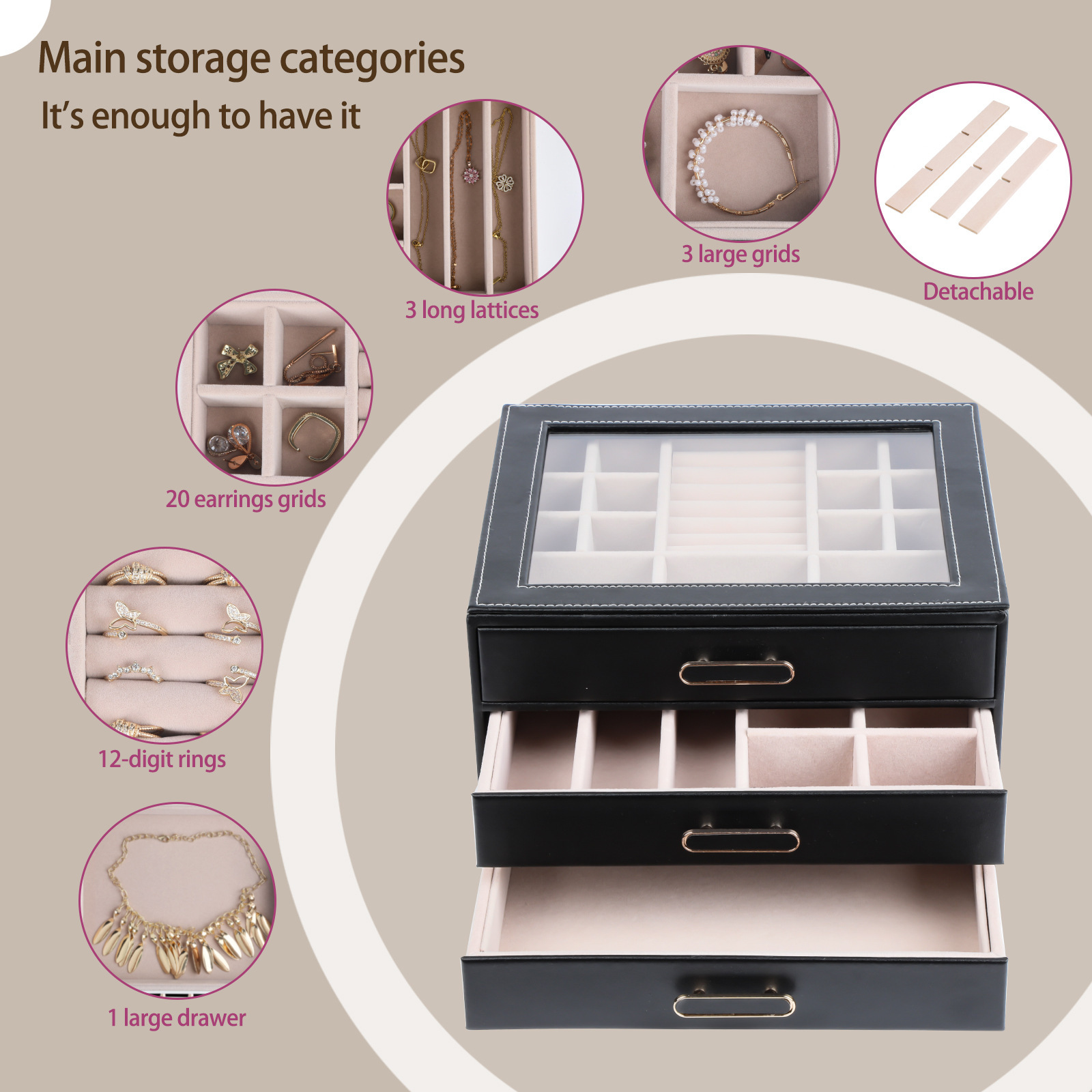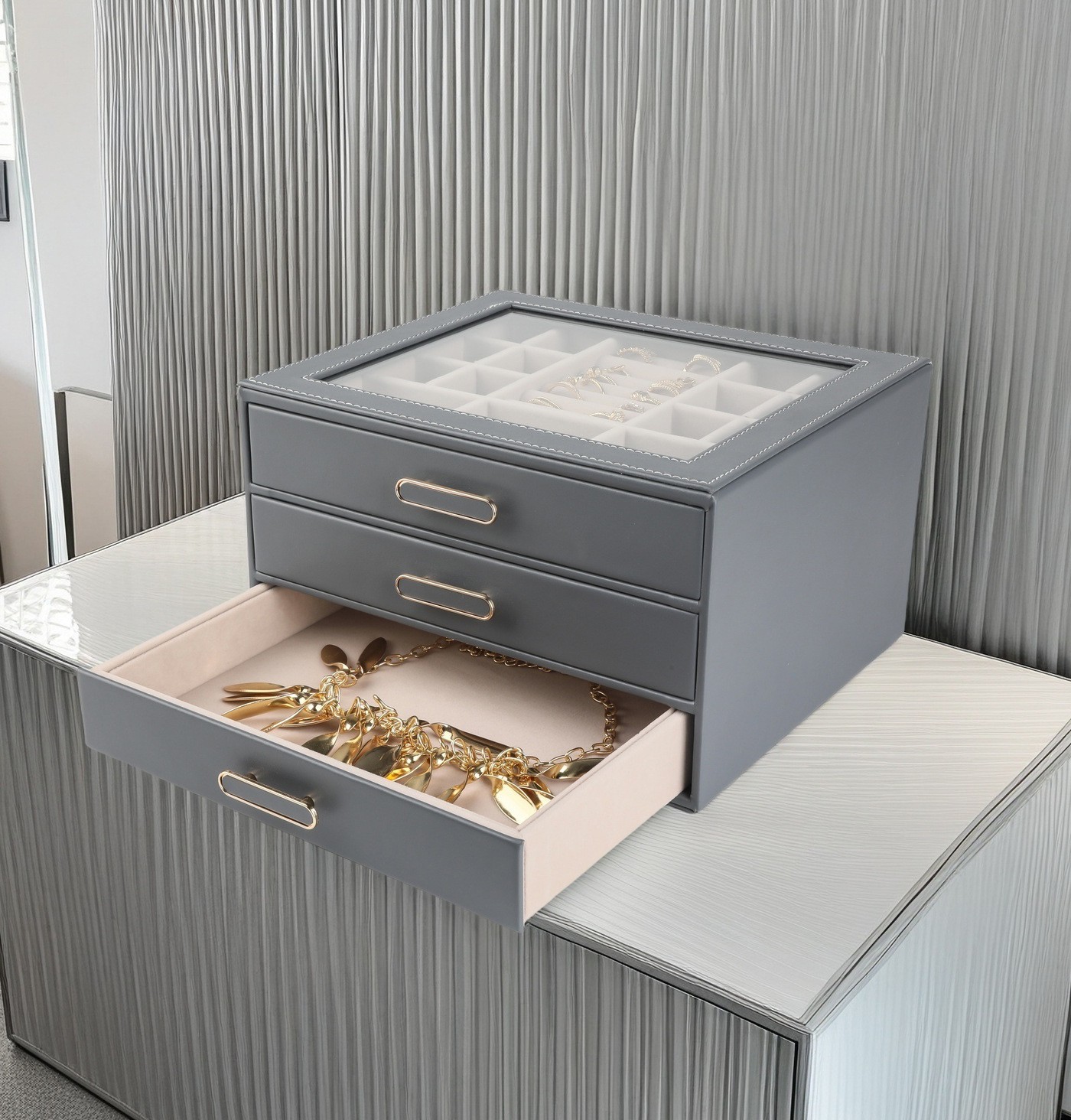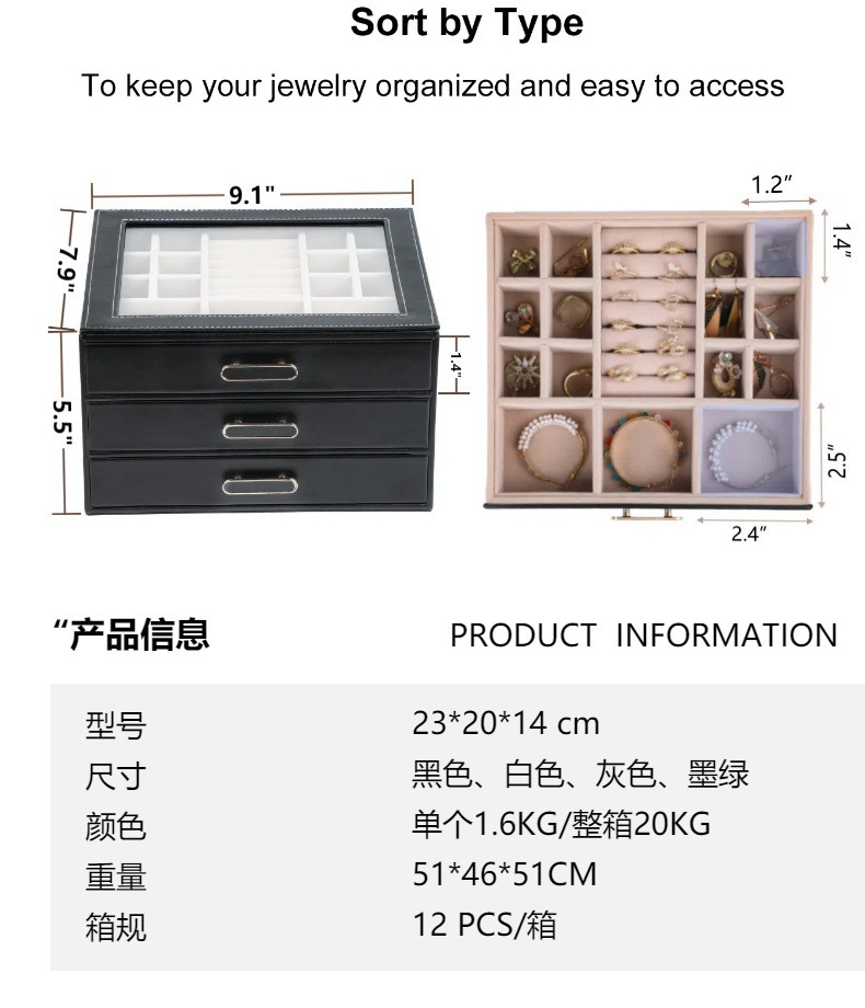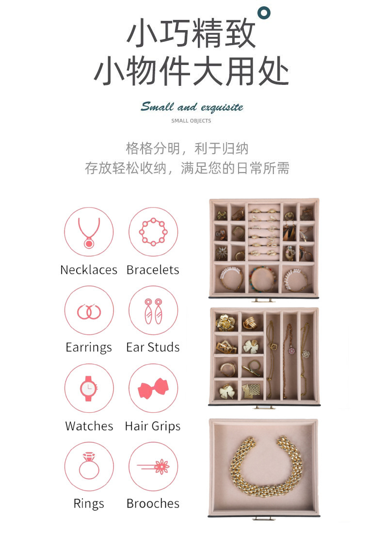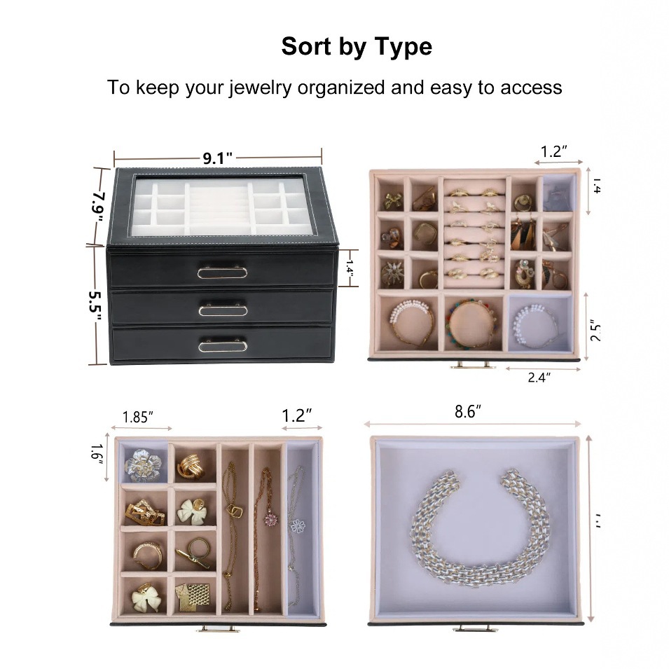 大容量三层首饰盒收纳盒透视款百宝耳环收纳饰品盒子PU材质戒指盒