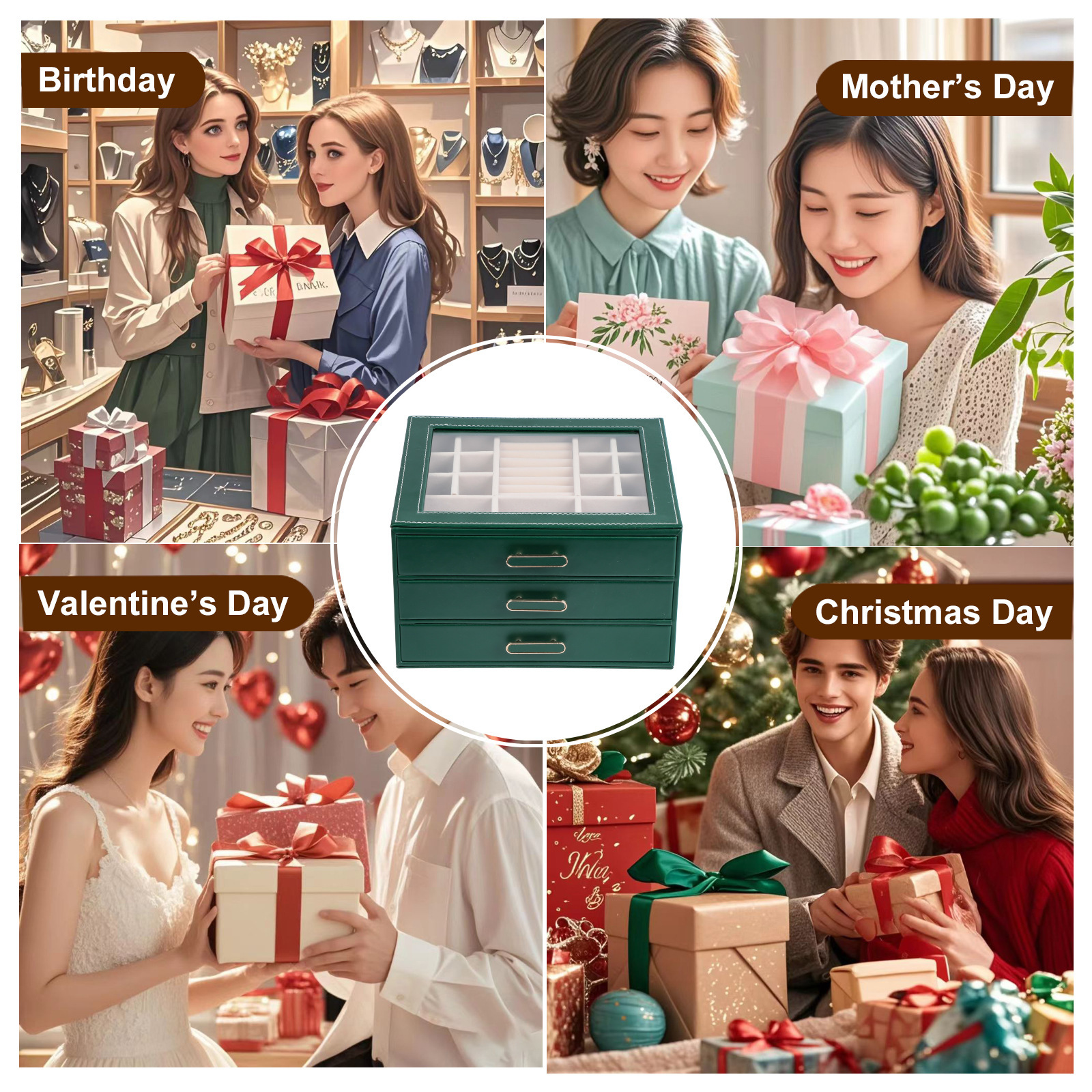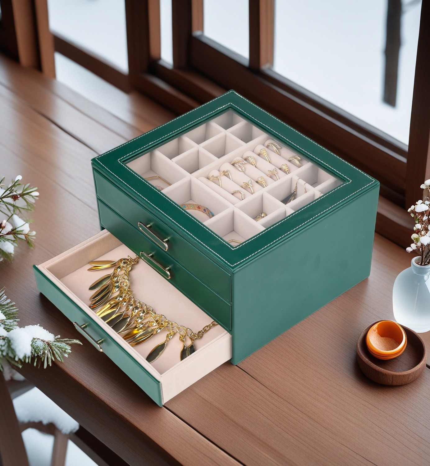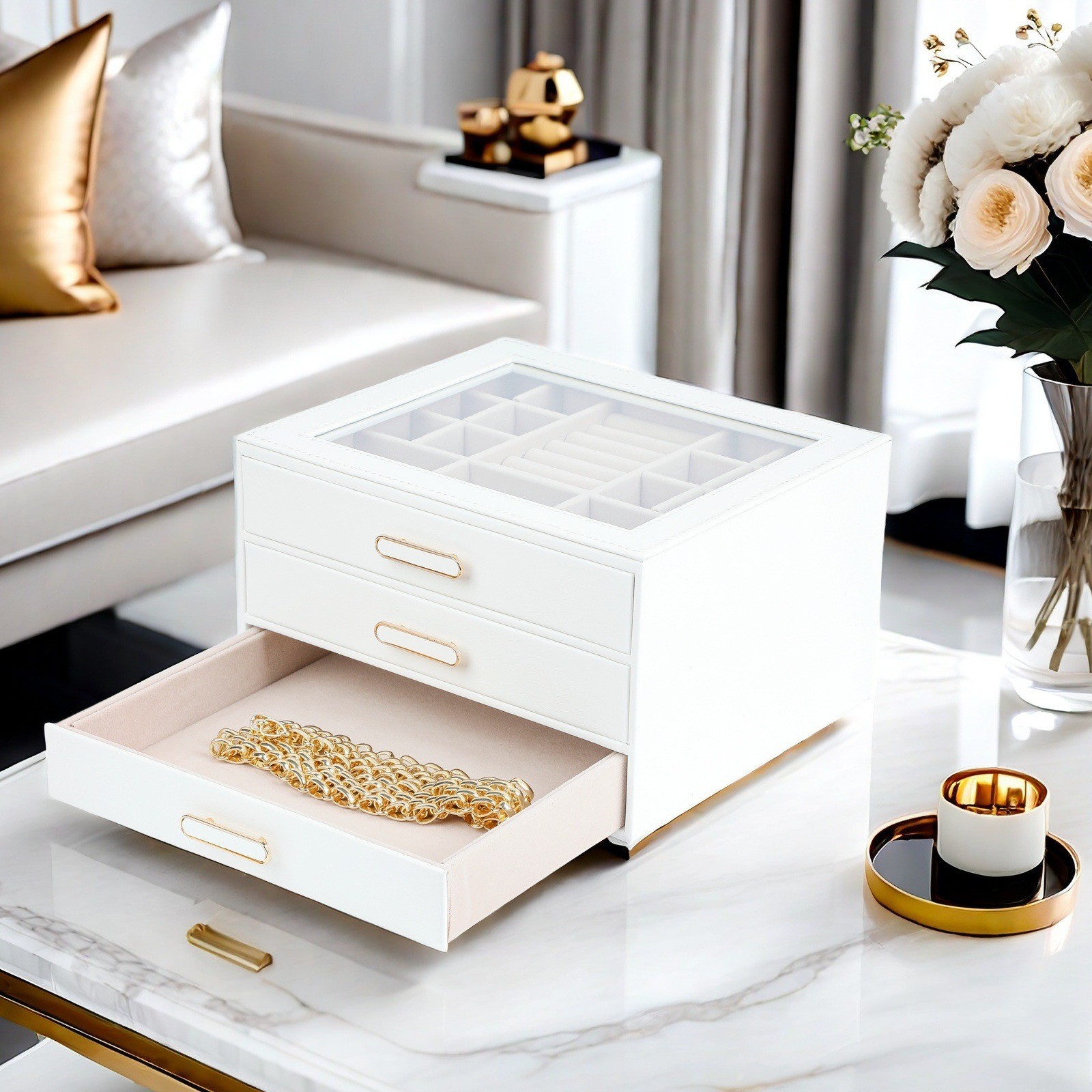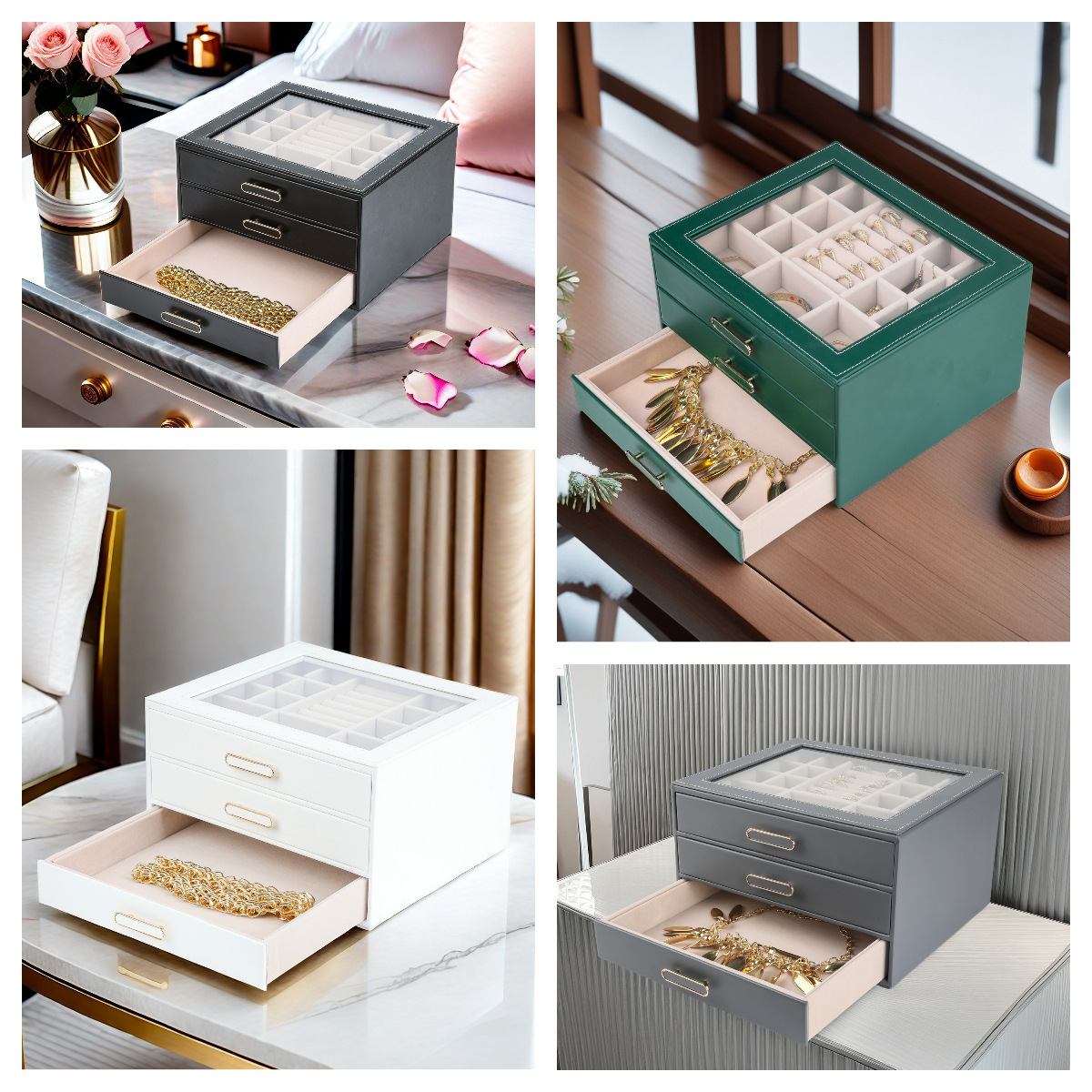 大容量三层首饰盒收纳盒透视款百宝耳环收纳饰品盒子PU材质戒指盒