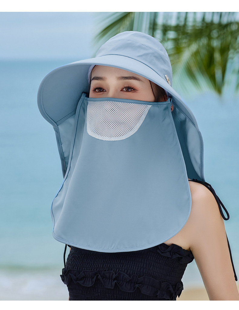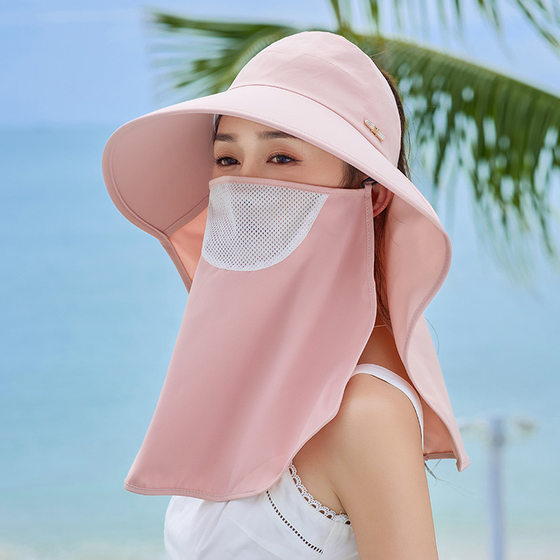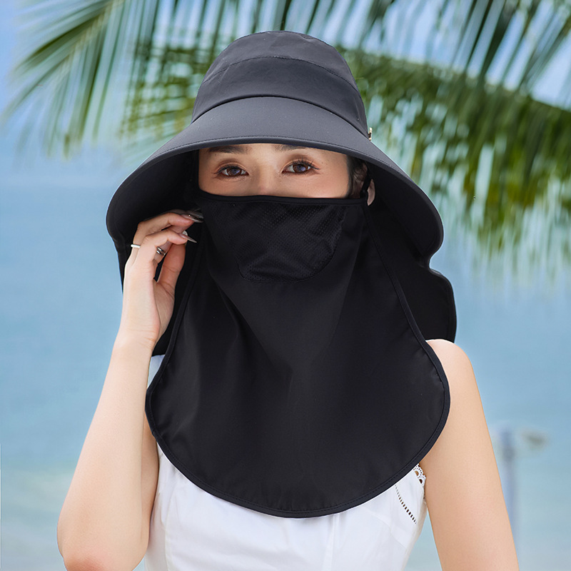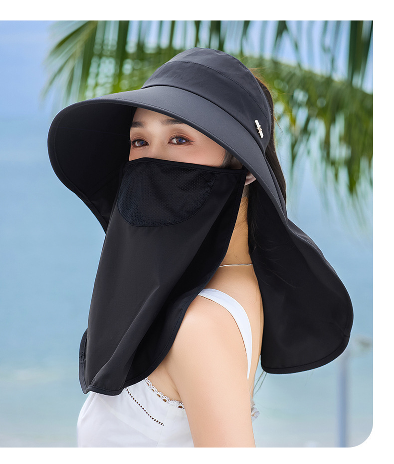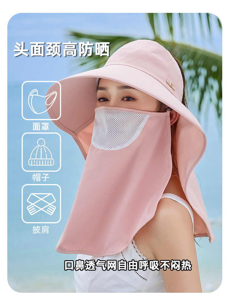 夏季防晒帽透气遮脸面罩护脖一体户外出行防紫外线骑车遮阳帽子