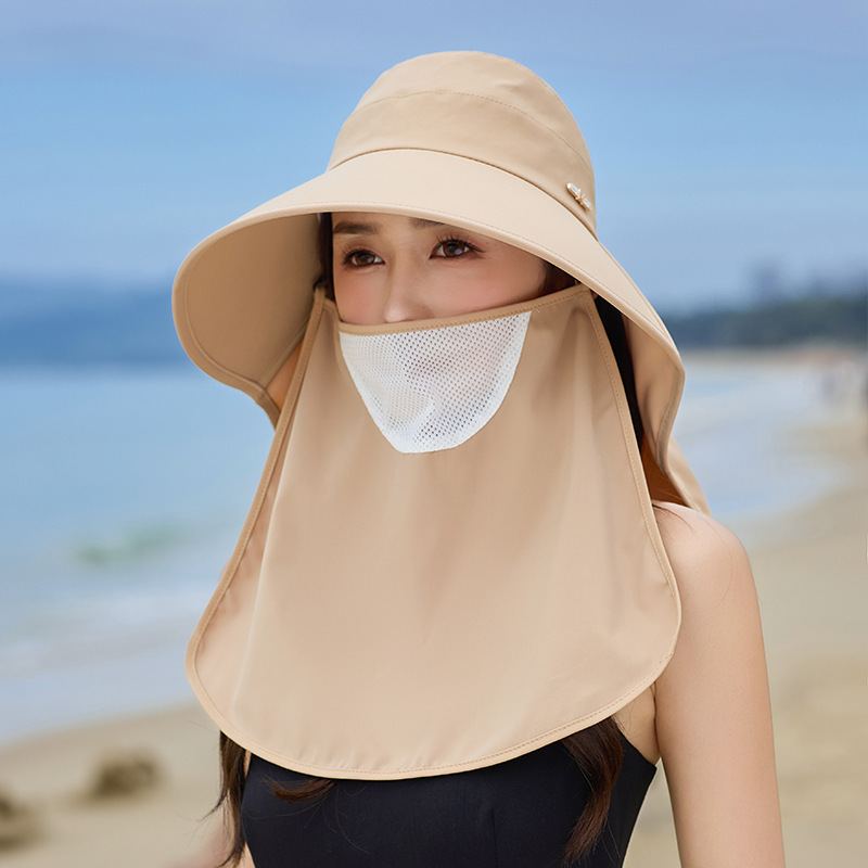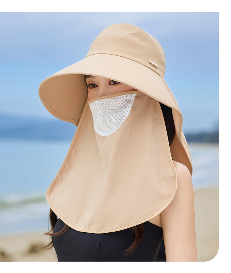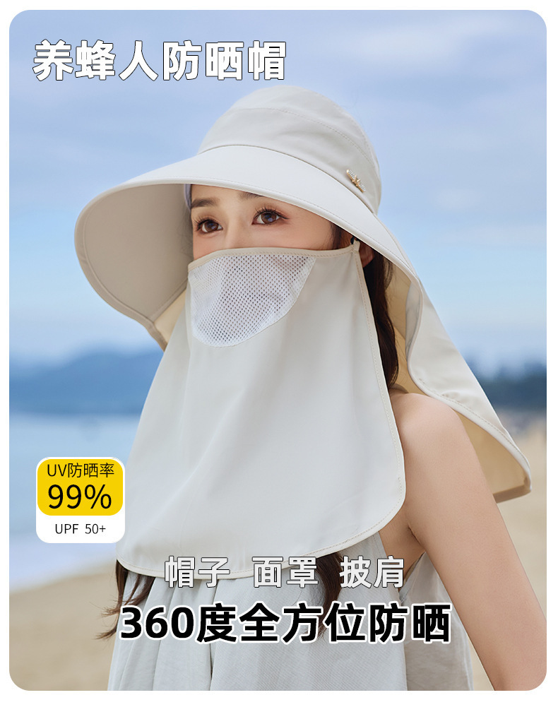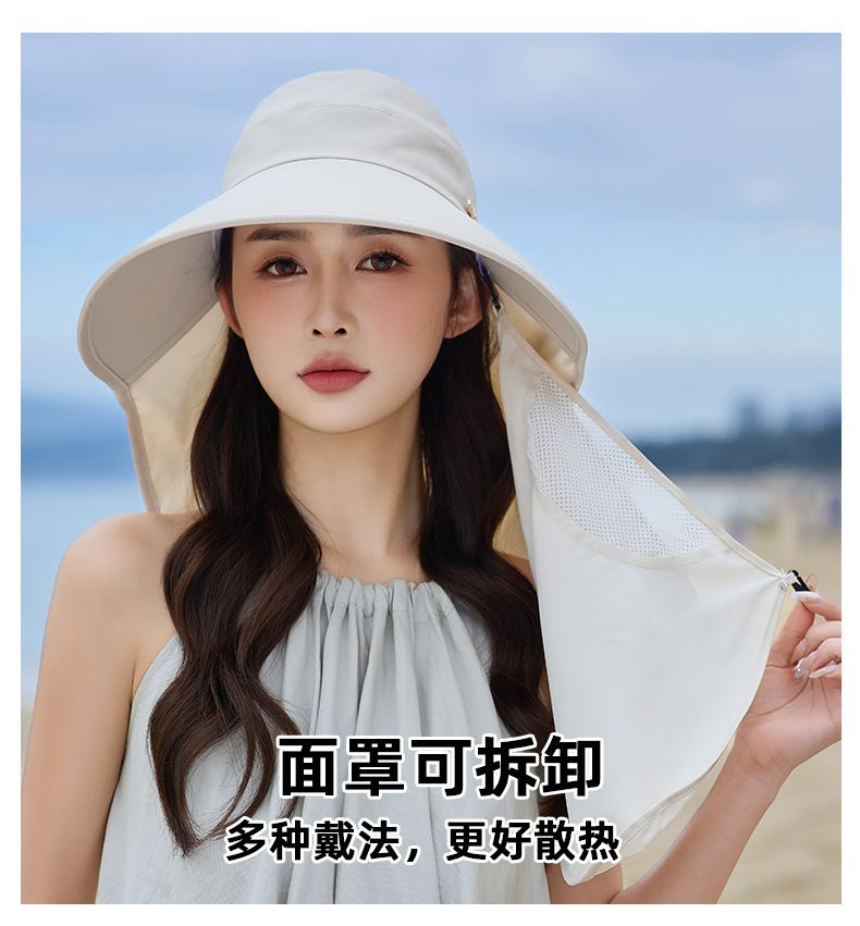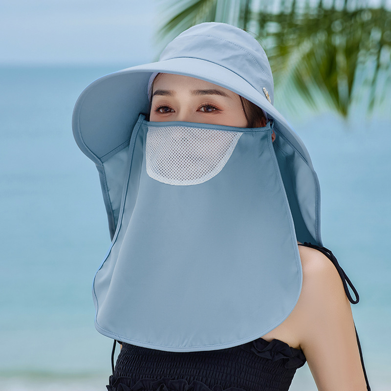 夏季防晒帽透气遮脸面罩护脖一体户外出行防紫外线骑车遮阳帽子