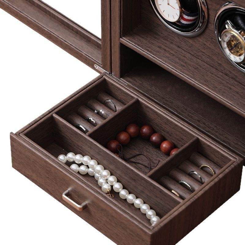 现货批发PU皮质立式双表位+首饰收纳多功能摇表器2表机械手表上链