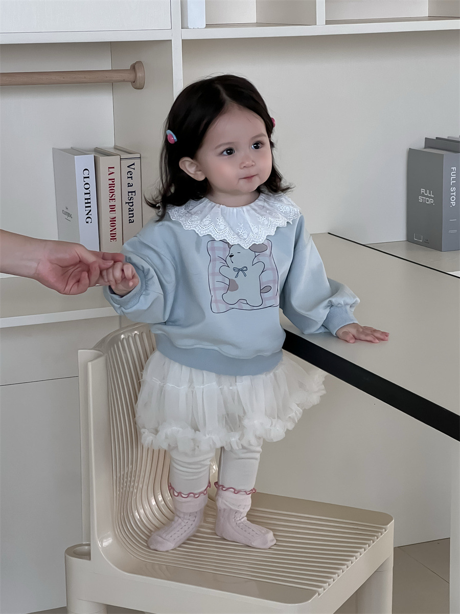女宝宝秋季衣服卫衣套装韩版童装女童秋款卡通印花纱裙两件套秋装