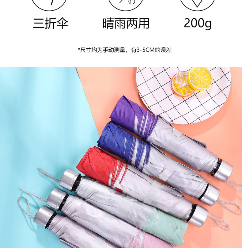 批发雨伞货源7骨三折叠手开7K银胶防晒遮阳伞折叠晴雨两用伞