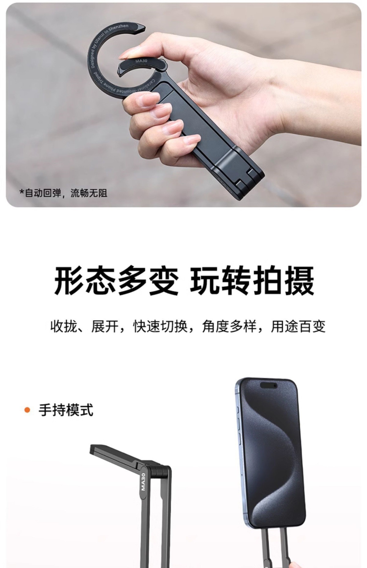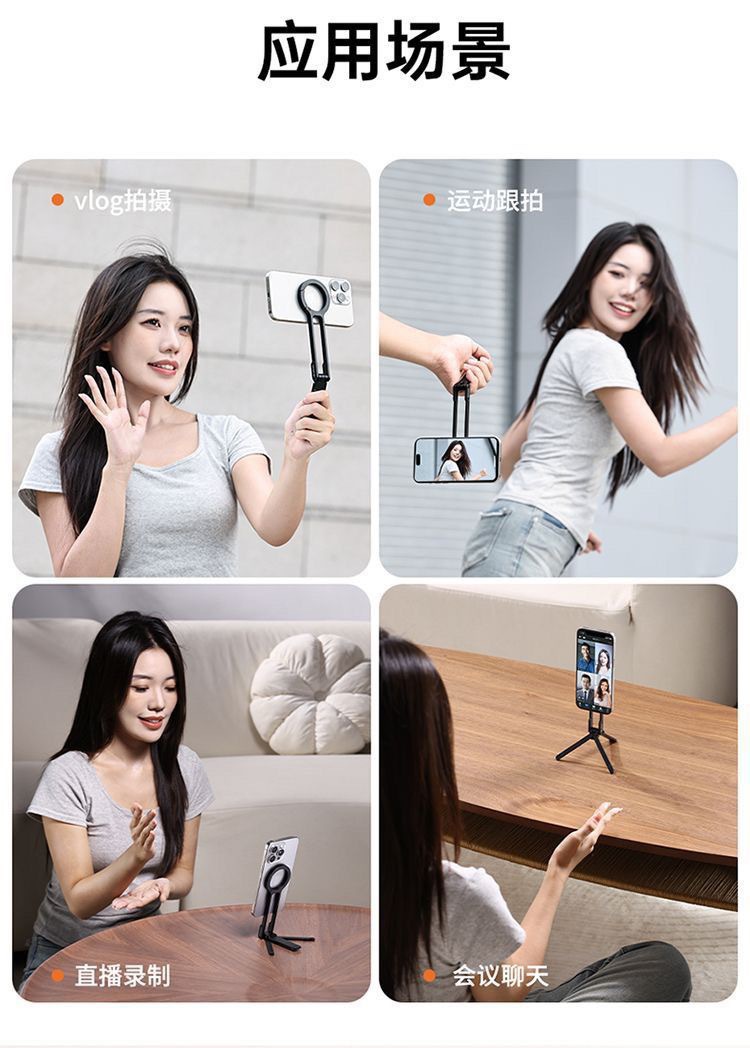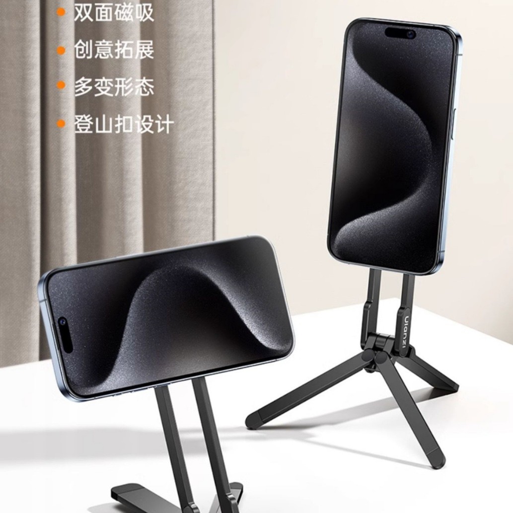 登山扣手机支架便携摄影拍照支架三脚架Magsafe旋转直播支架桌面