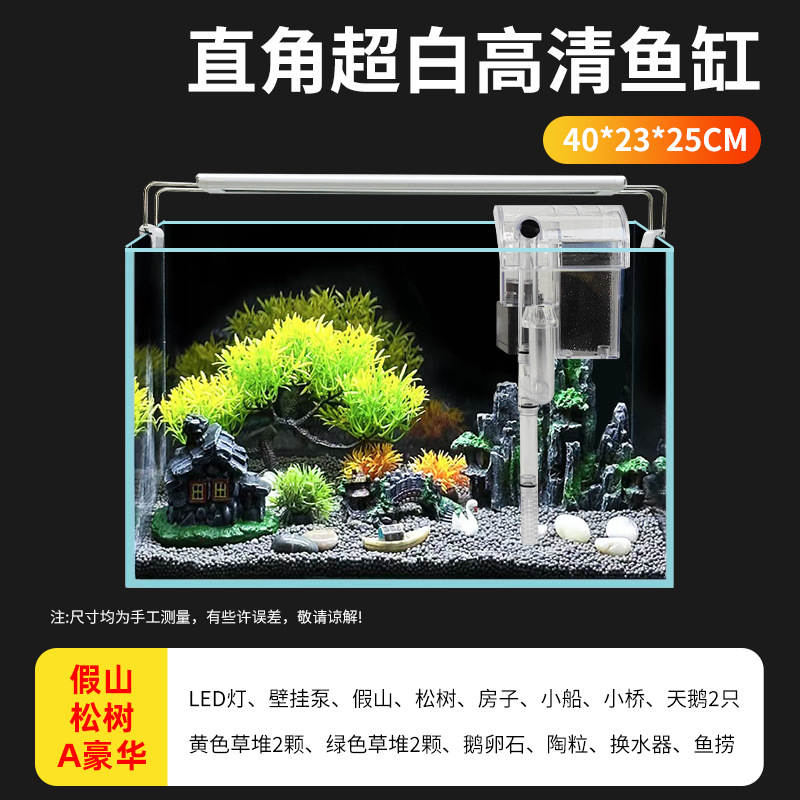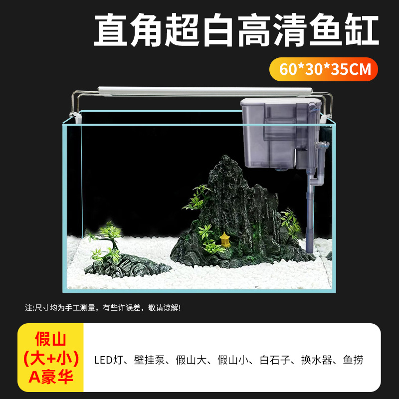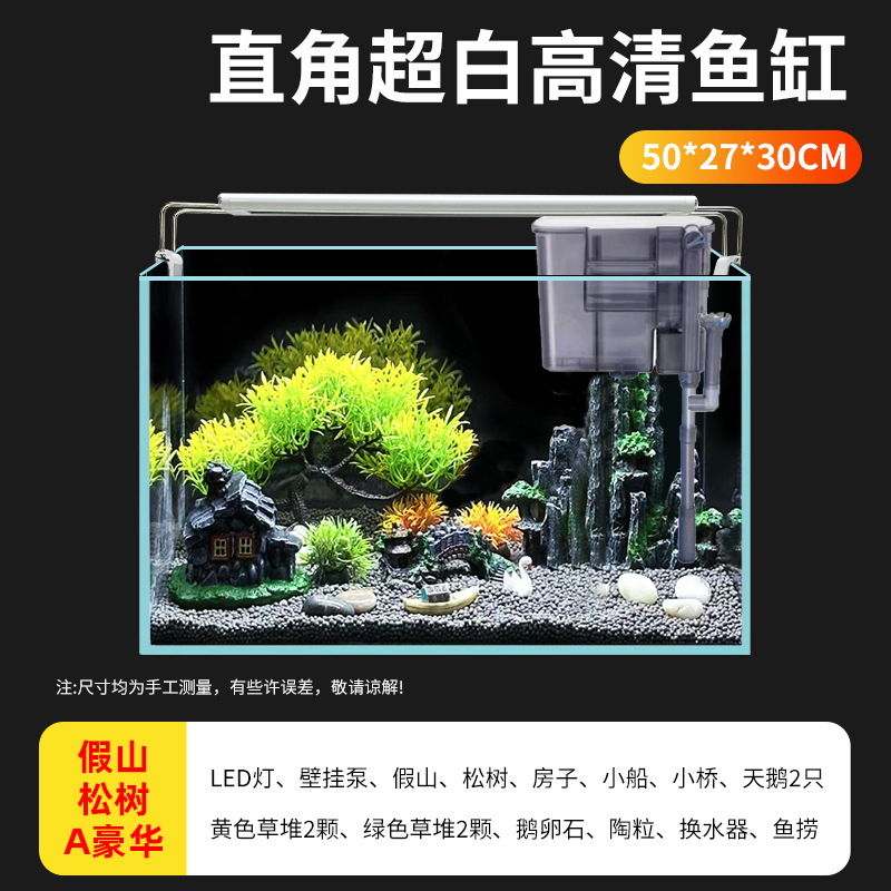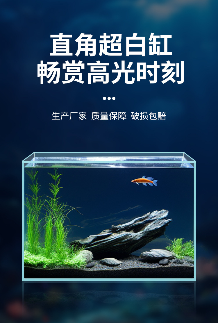 金晶超白直角玻璃鱼缸家用桌面溪流生态水草缸造景金鱼乌龟缸批发