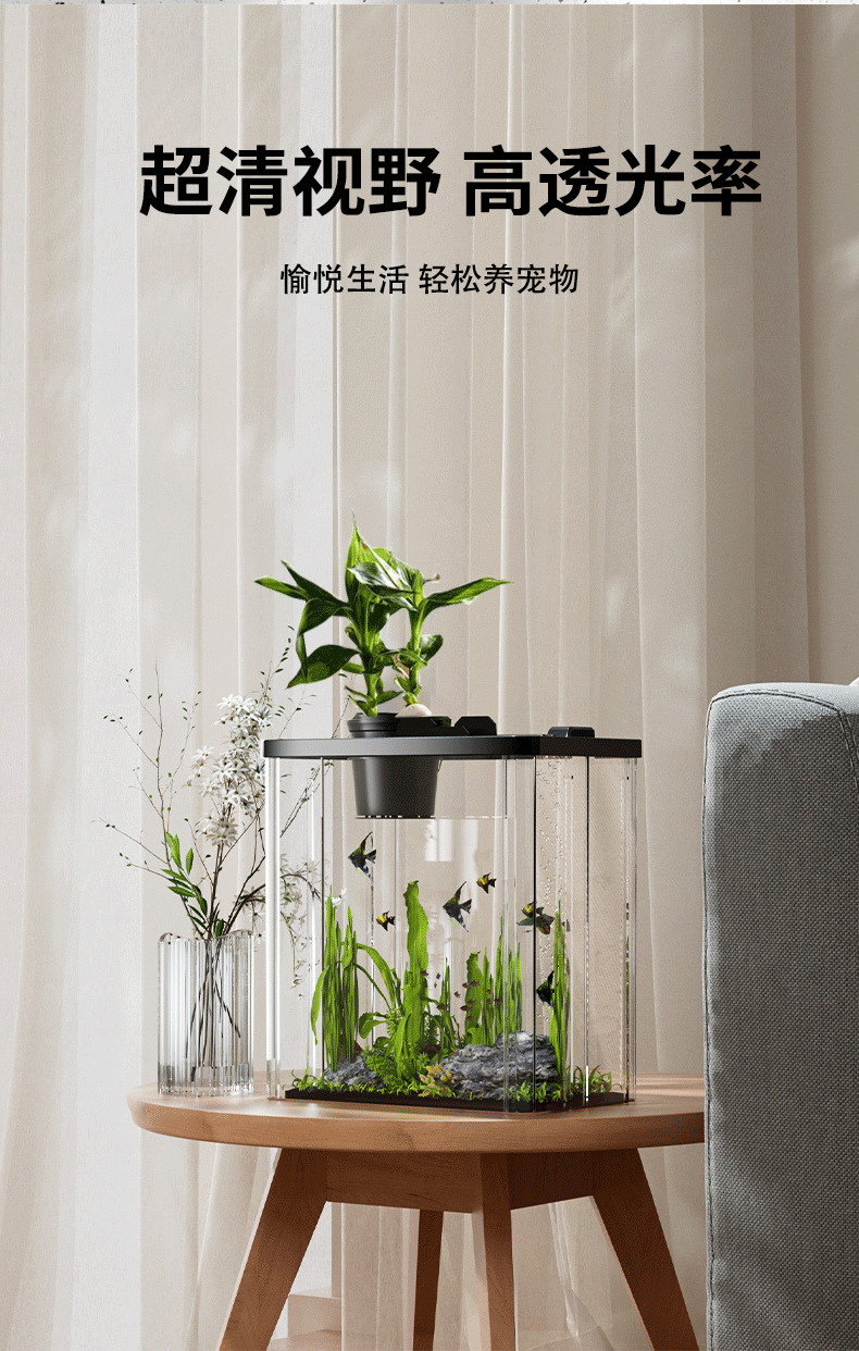 鱼缸亚克力透明缸多尺寸鱼缸透明水族箱 小型客厅家用造景生态缸