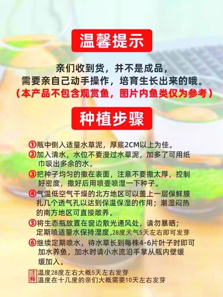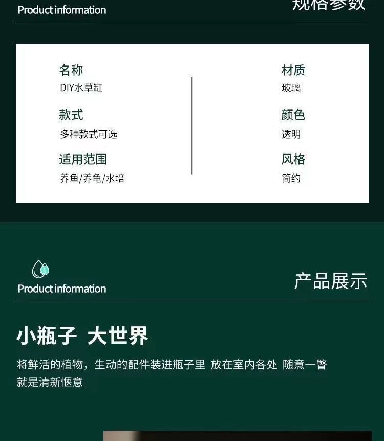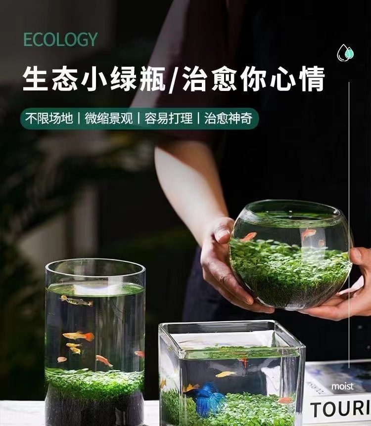 水种子水泥生态家用鱼缸玻璃瓶水培植物四季造景鱼缸小型外贸包邮