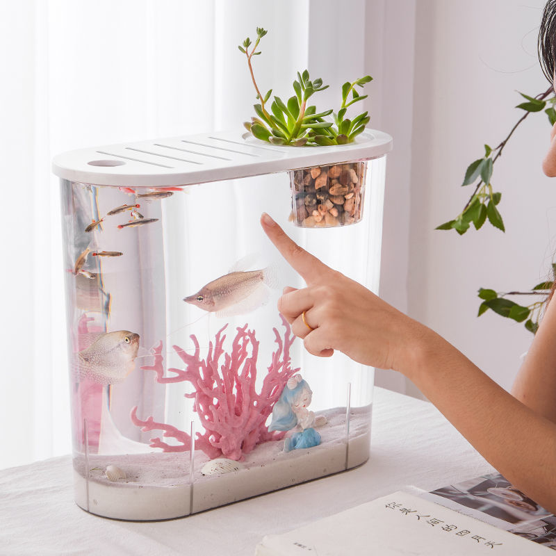 透明仿玻璃家用塑料鱼缸中小型客厅阳台造景金鱼缸水族箱养乌龟虾