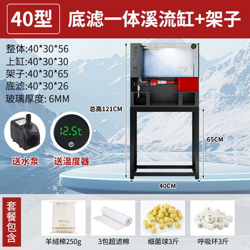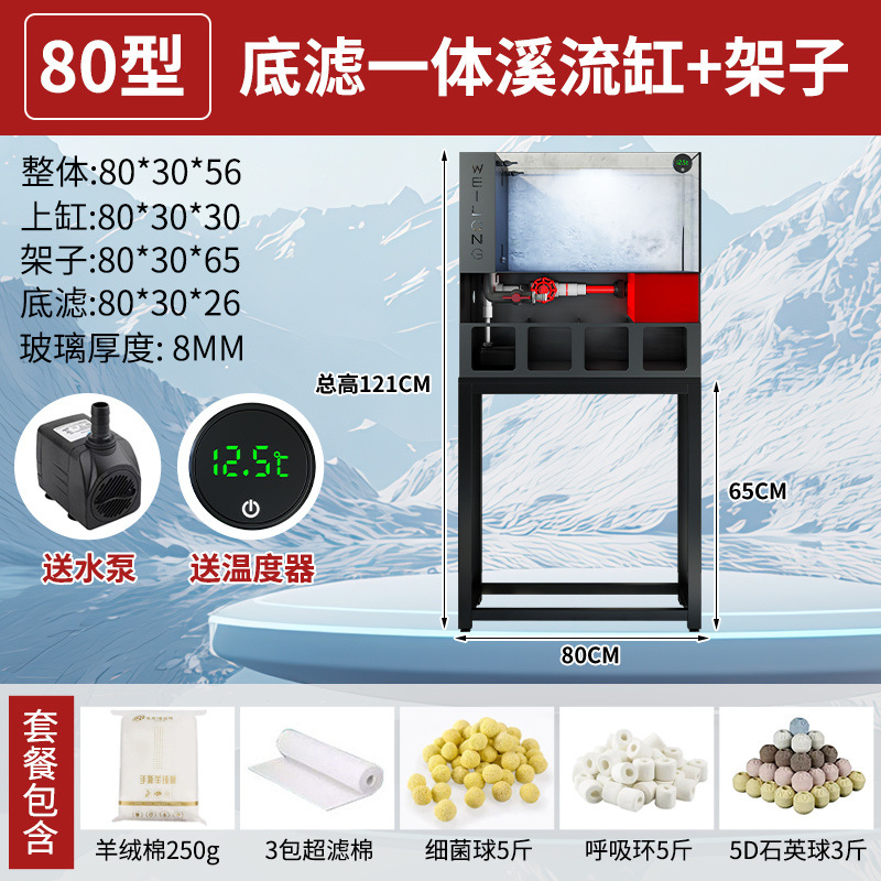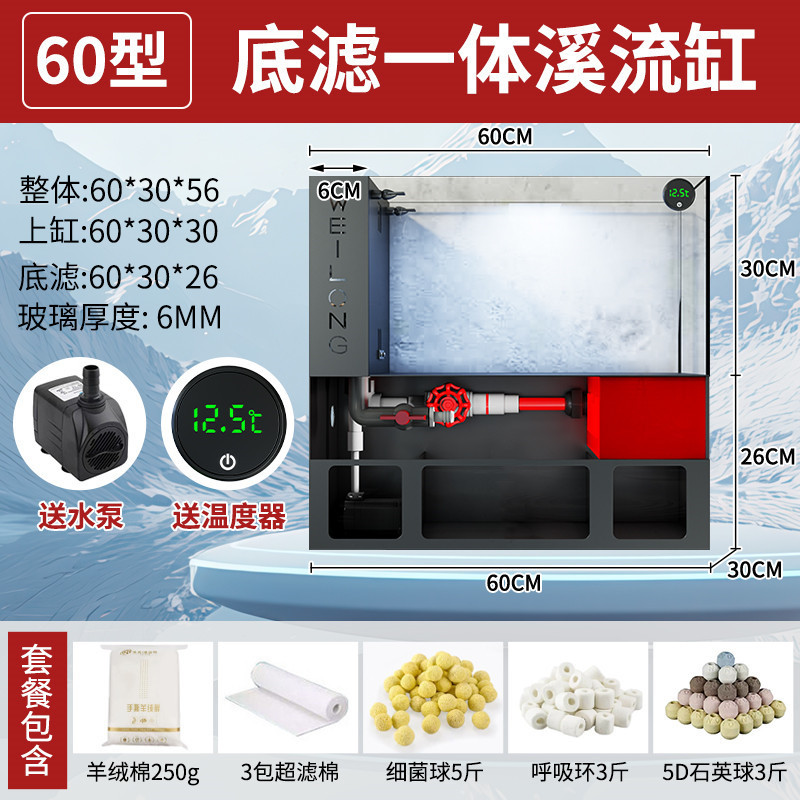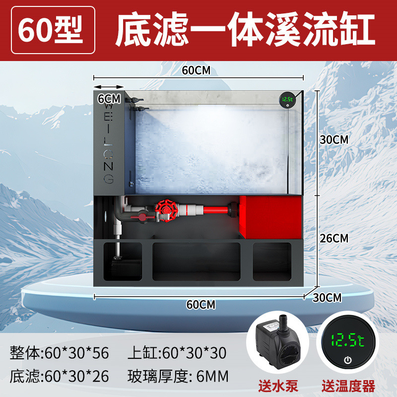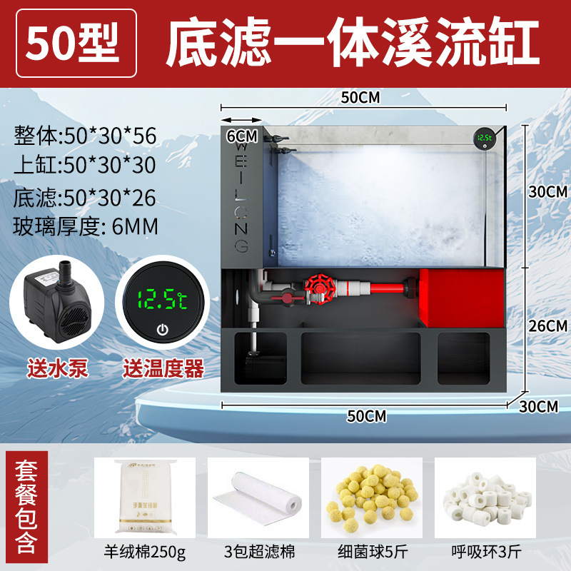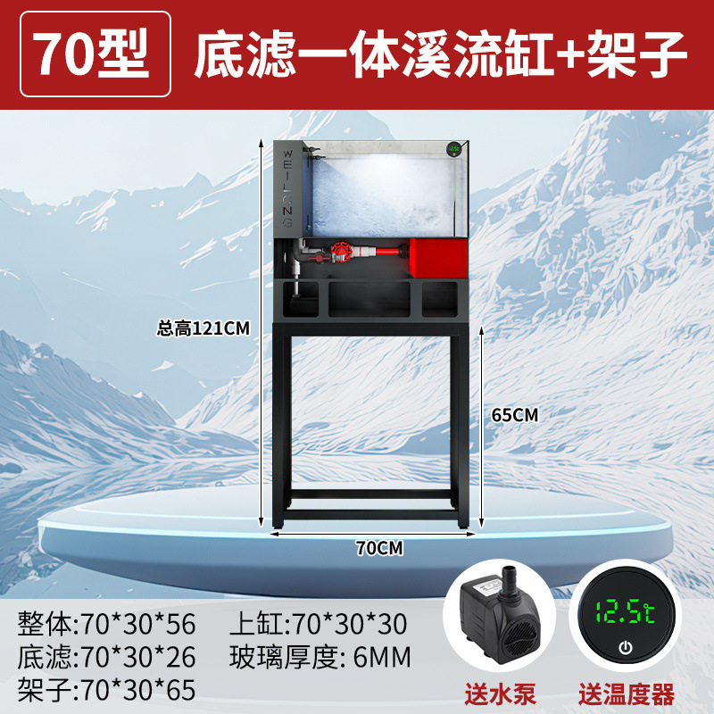 客厅小型鱼缸超白玻璃金鱼缸过滤一体水族箱桌面底滤生态溪流免换