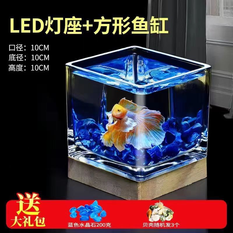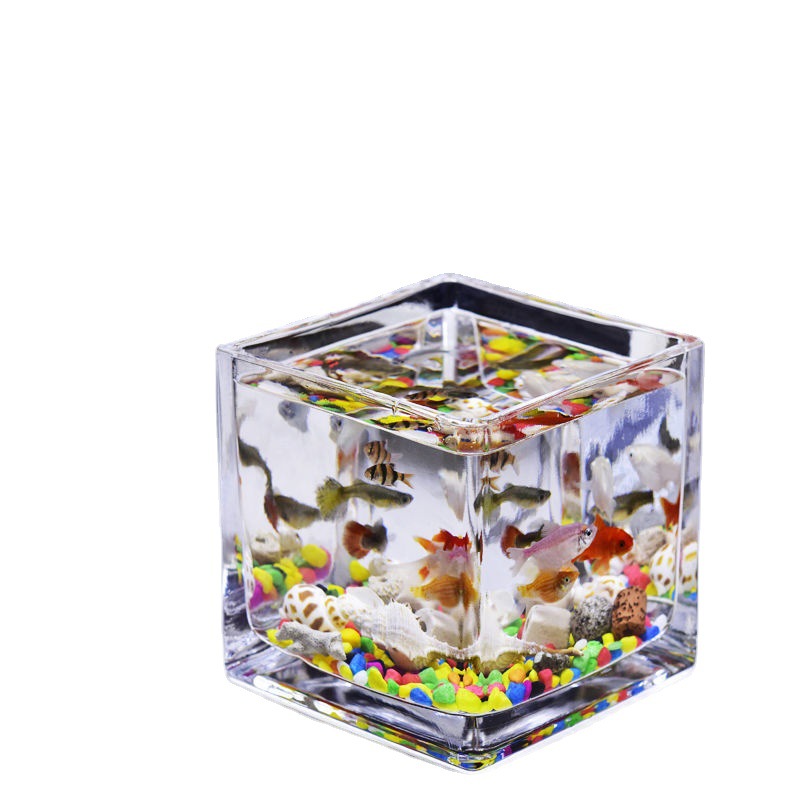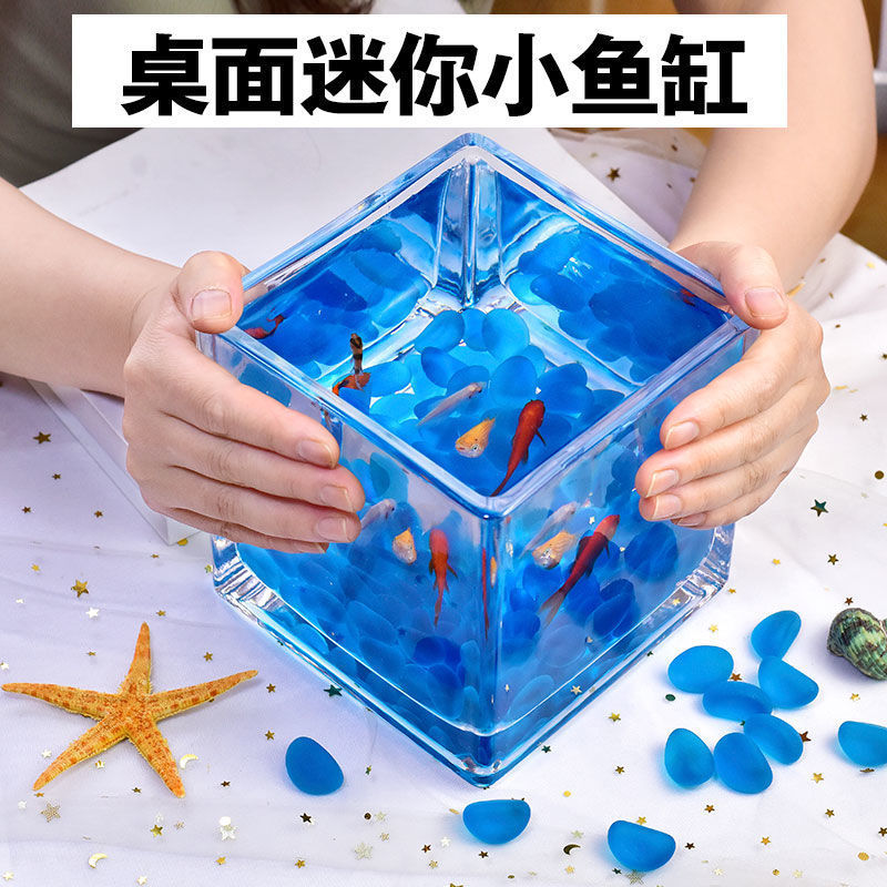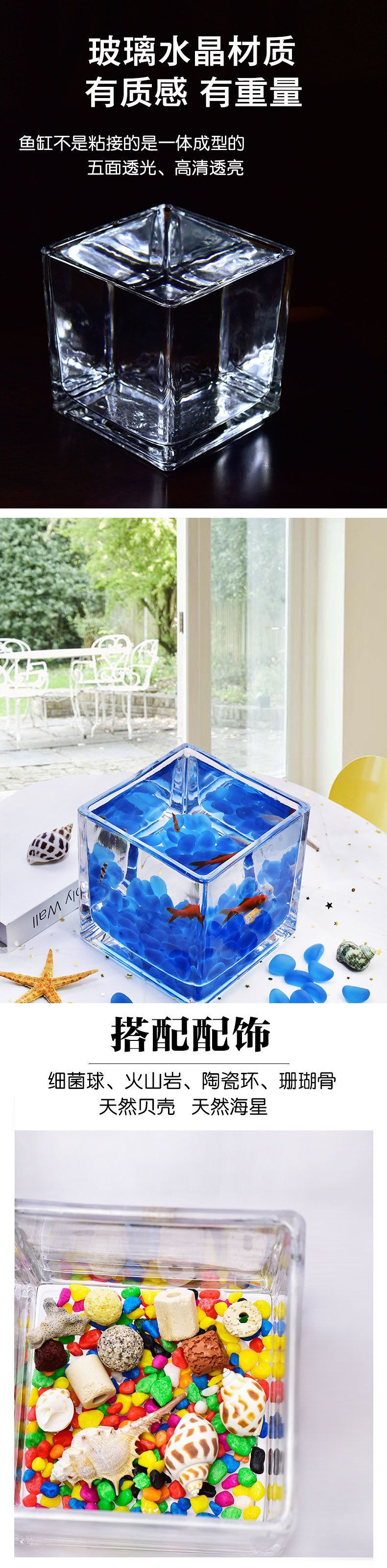 鱼缸超白玻璃方形白小鱼缸造景约水培缸家用办公桌斗代发