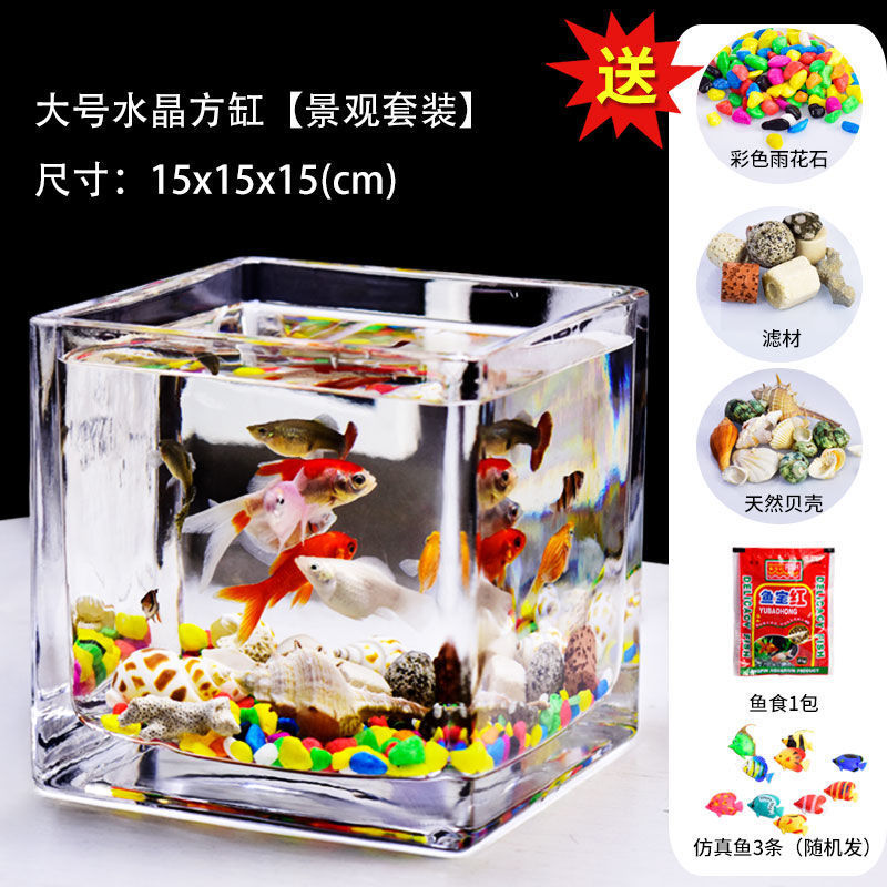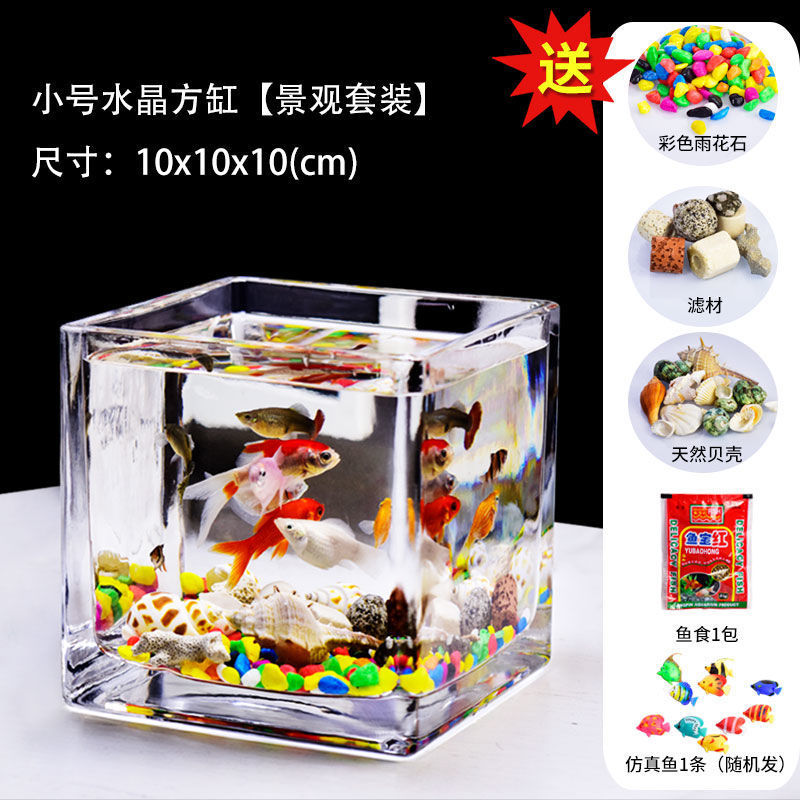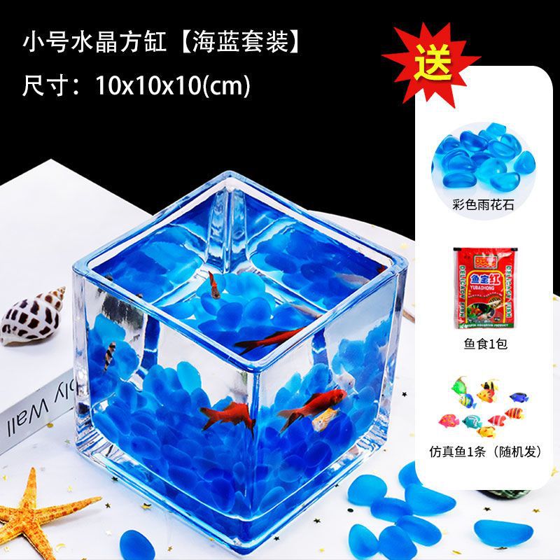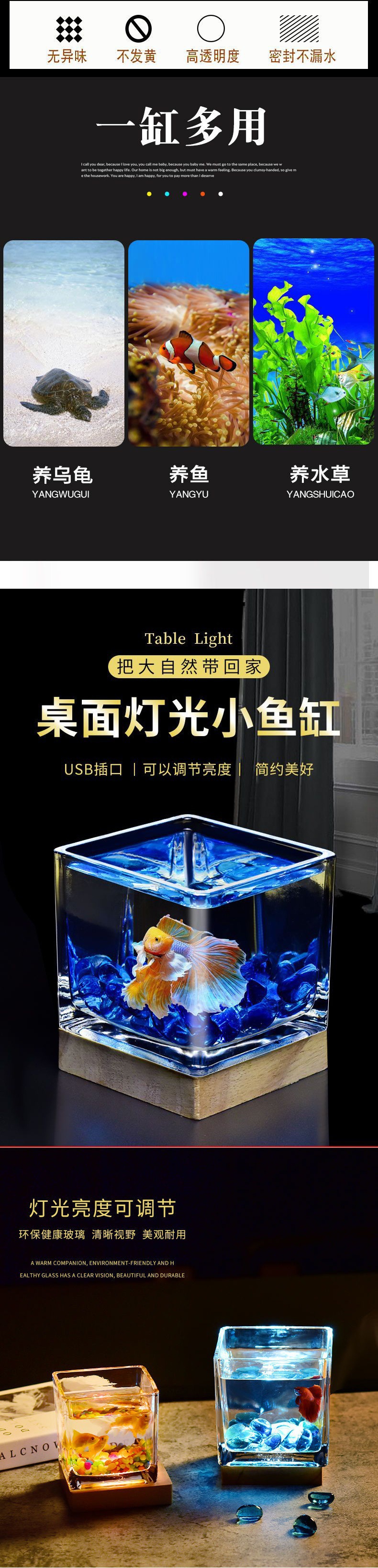 鱼缸超白玻璃方形白小鱼缸造景约水培缸家用办公桌斗代发