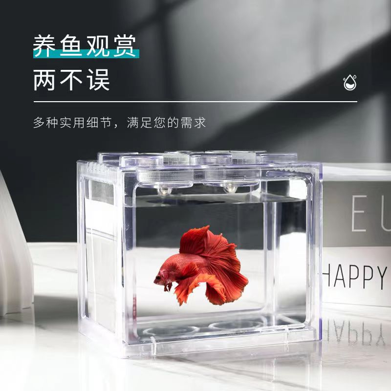 斗鱼缸整箱批发积木斗鱼盒高透斗鱼缸批发夜市摆摊专用桌面创意缸