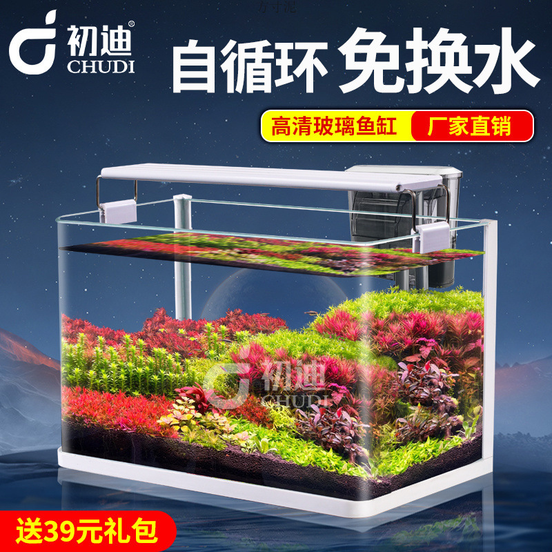 初迪玻璃鱼缸客厅桌面乌龟缸家用小型金鱼缸长方形热弯生态水族箱
