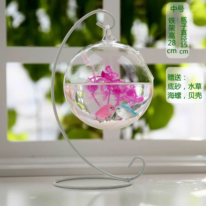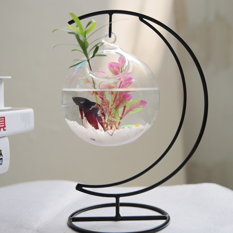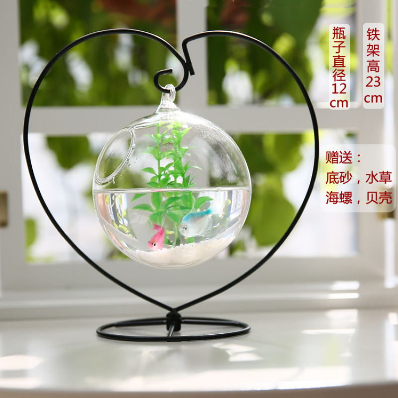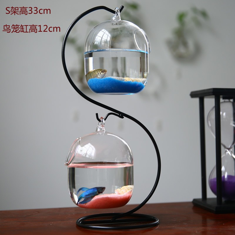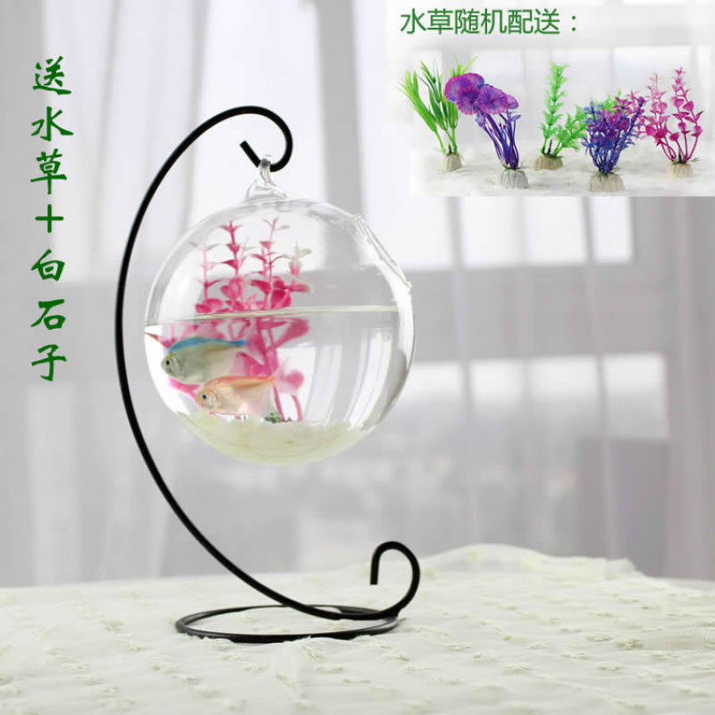 悬挂小鱼缸迷你缸办公桌面玻璃小型金鱼缸水族箱家用斗鱼缸亚马逊