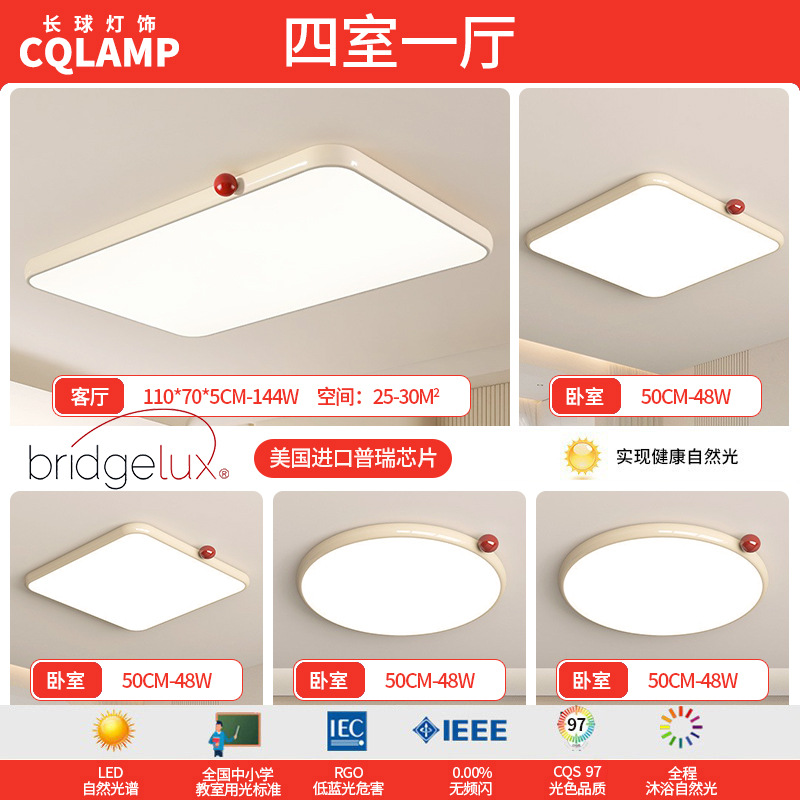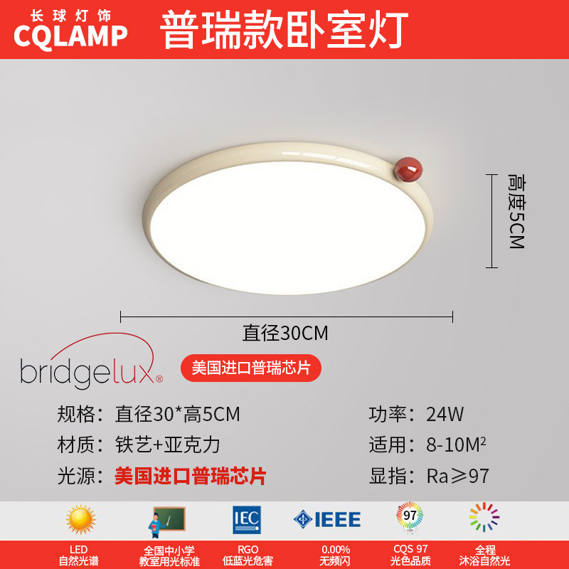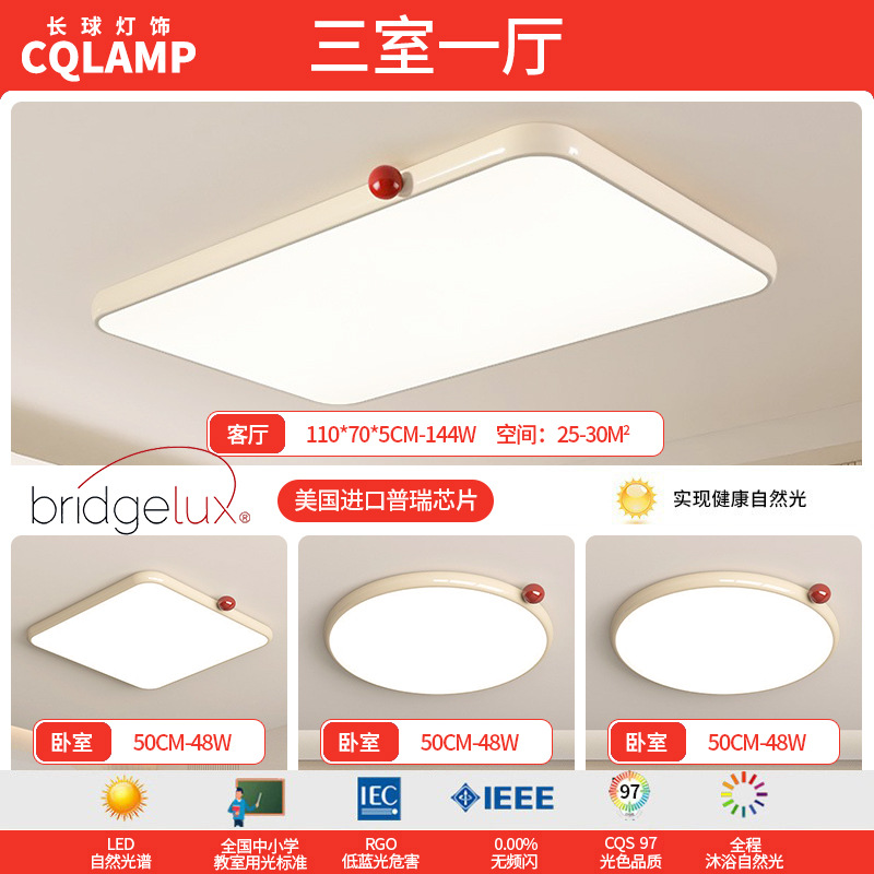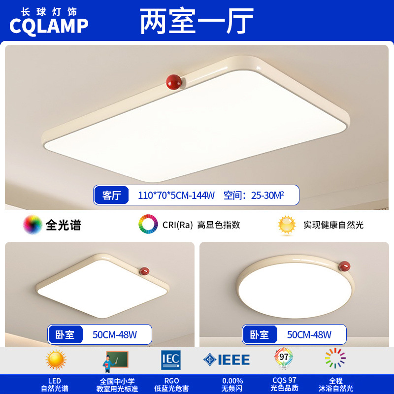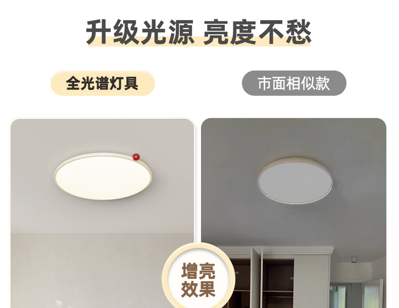 奶油风客厅灯卧室吸顶灯全光谱儿童房超薄护眼灯侘寂风极简房间
