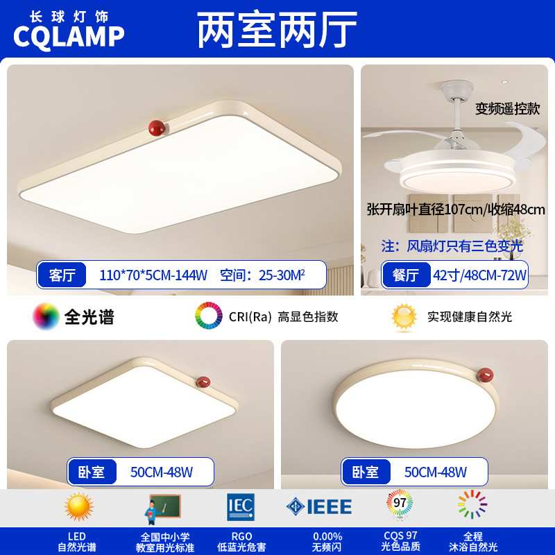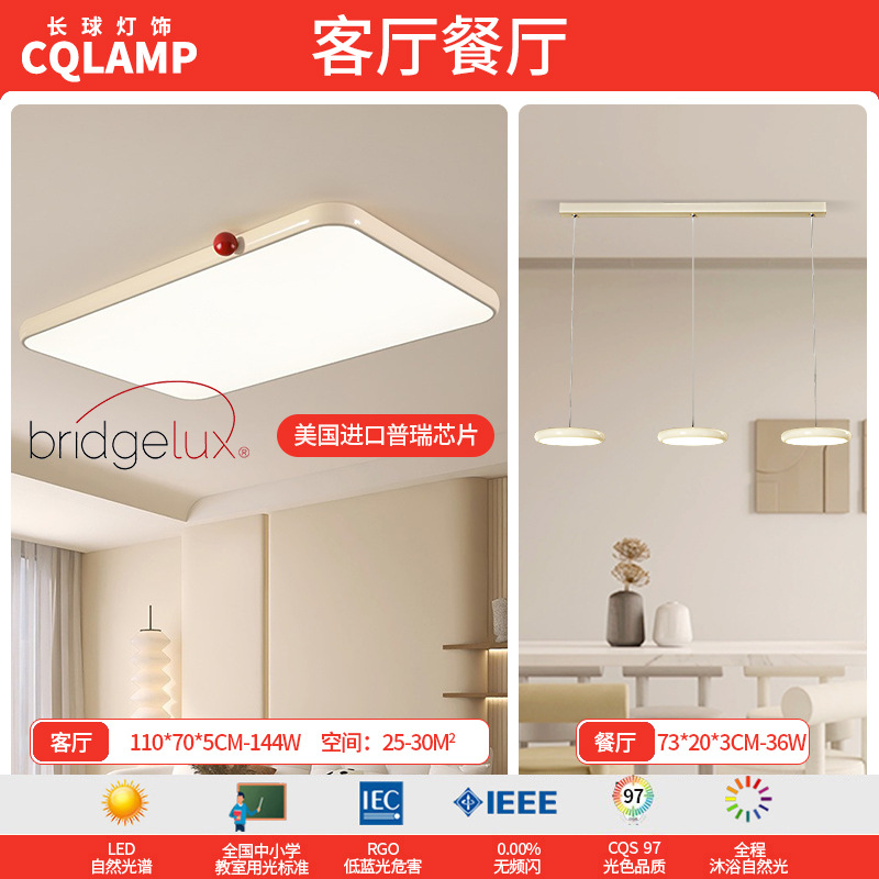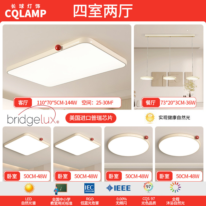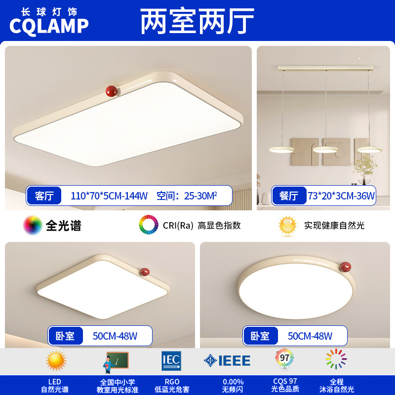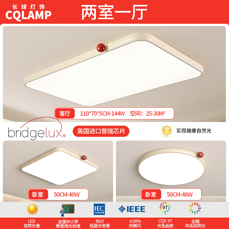 奶油风客厅灯卧室吸顶灯全光谱儿童房超薄护眼灯侘寂风极简房间