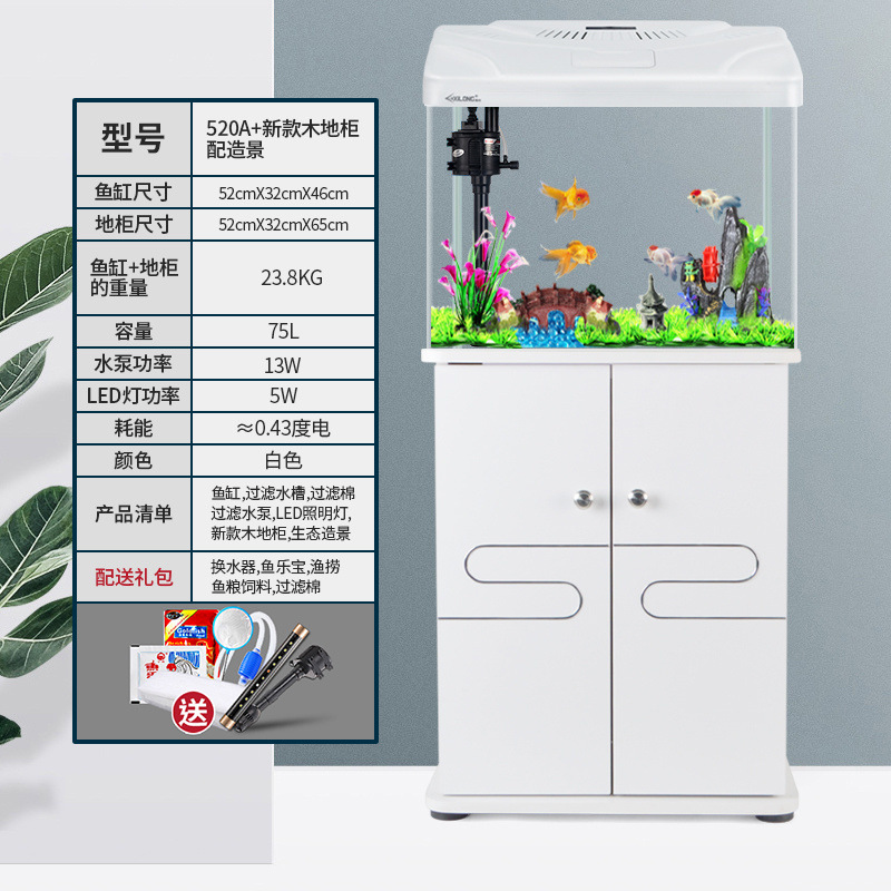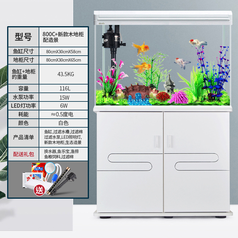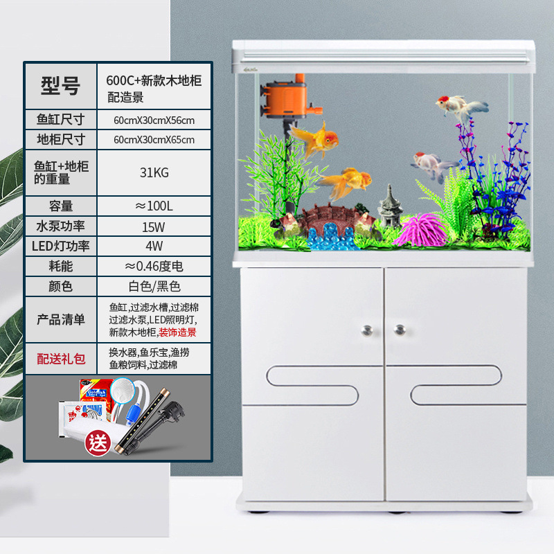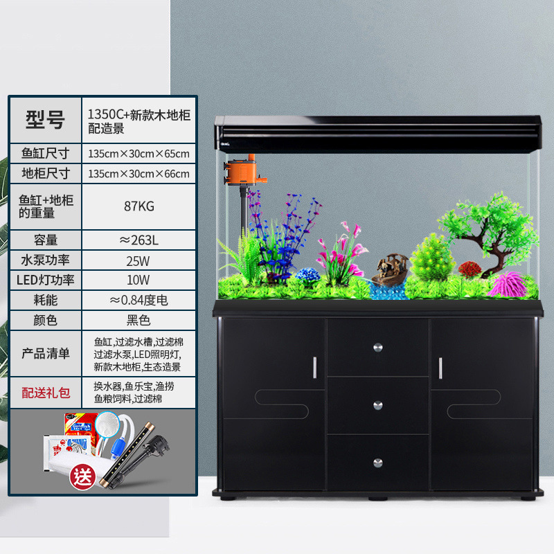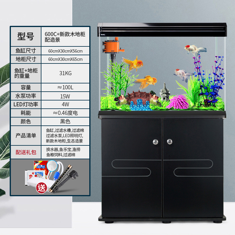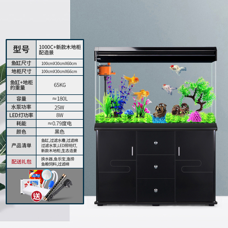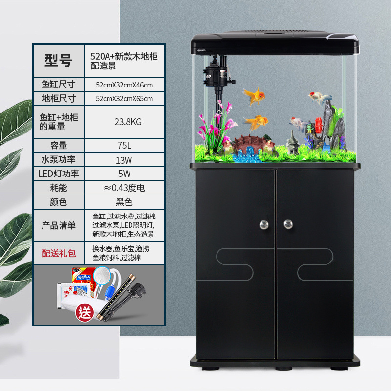 中小型入门鱼缸客厅家用懒人免换水生态大型鱼缸玻璃金鱼缸带柜