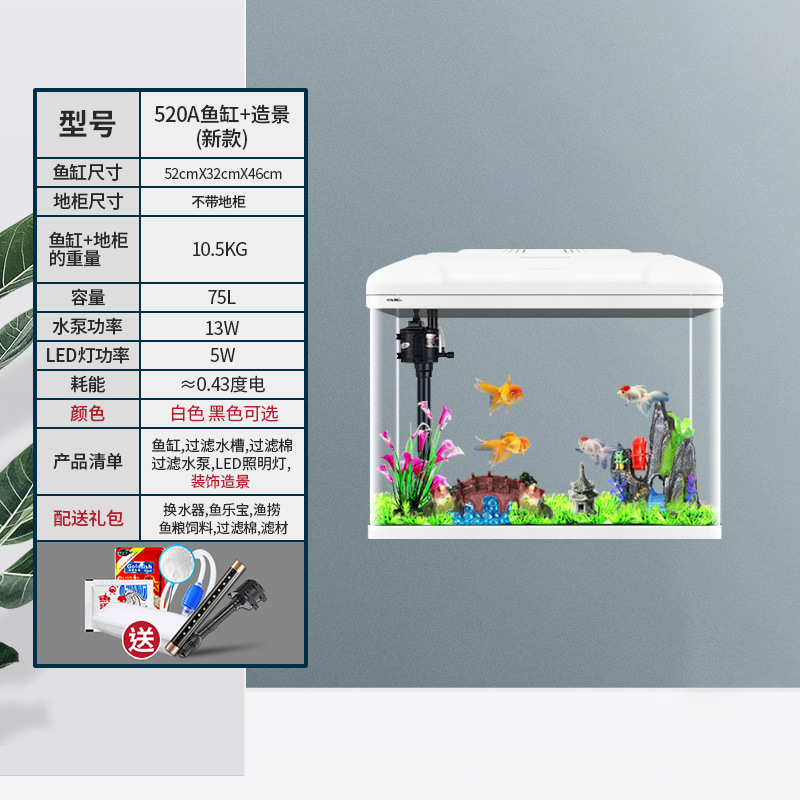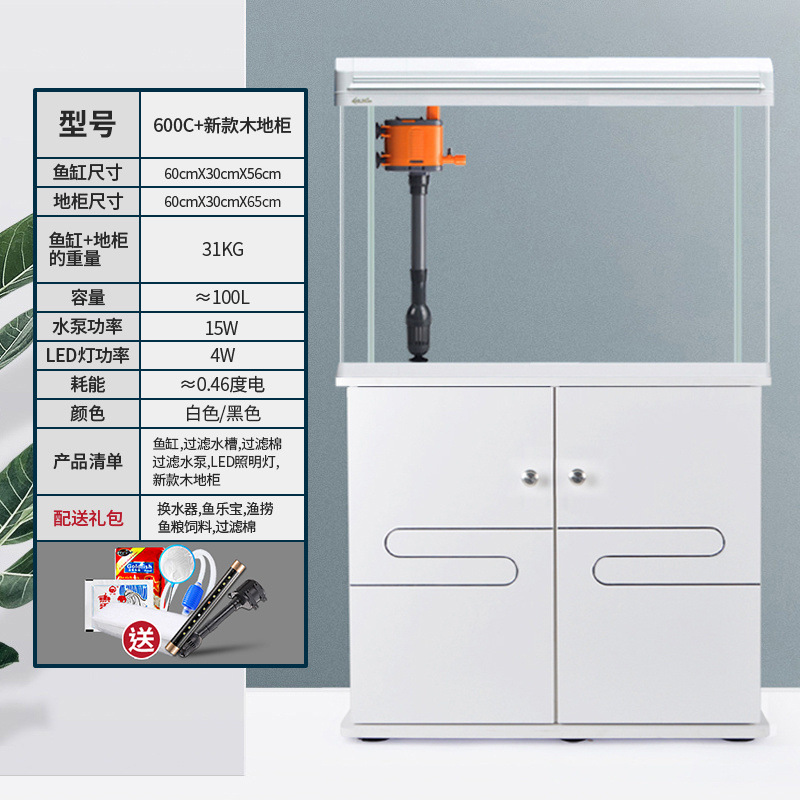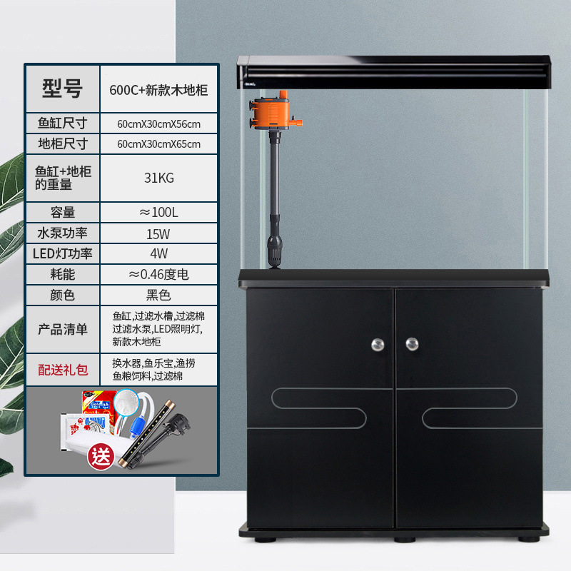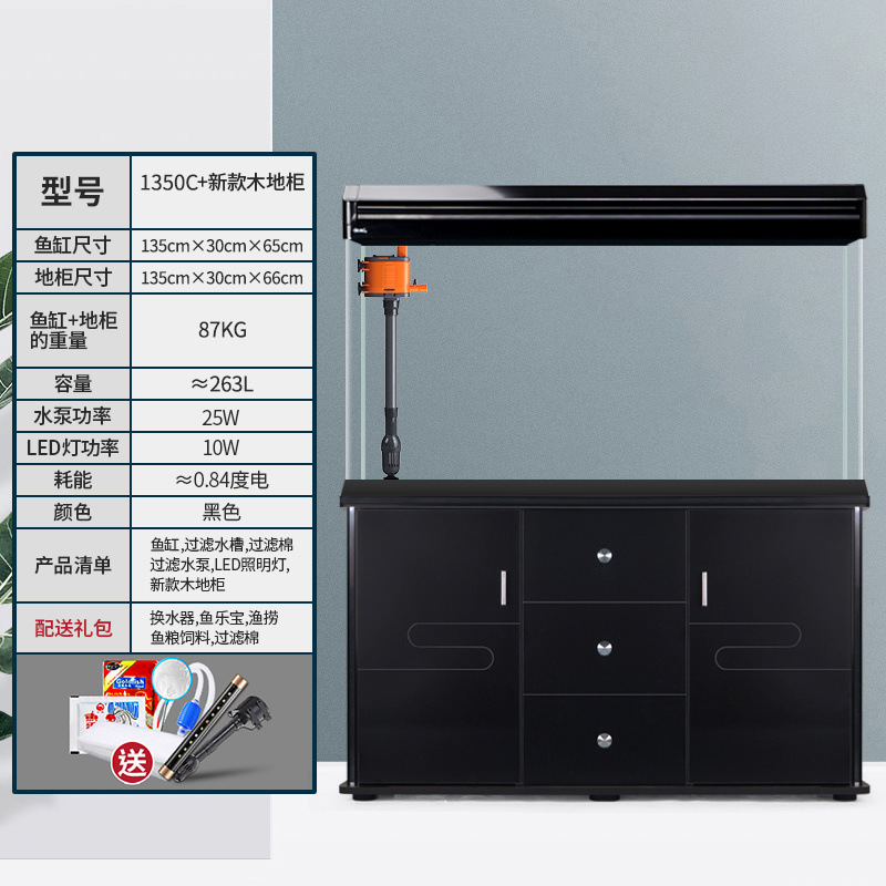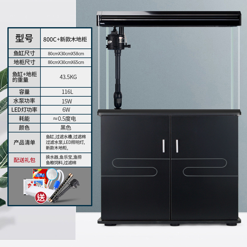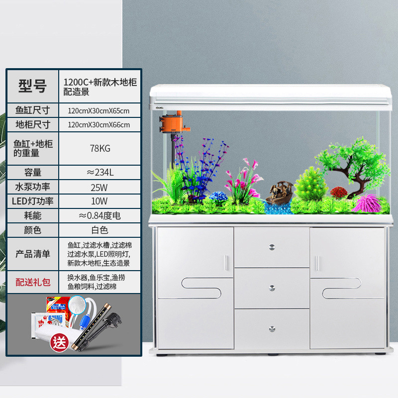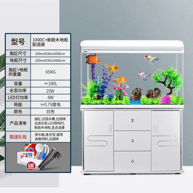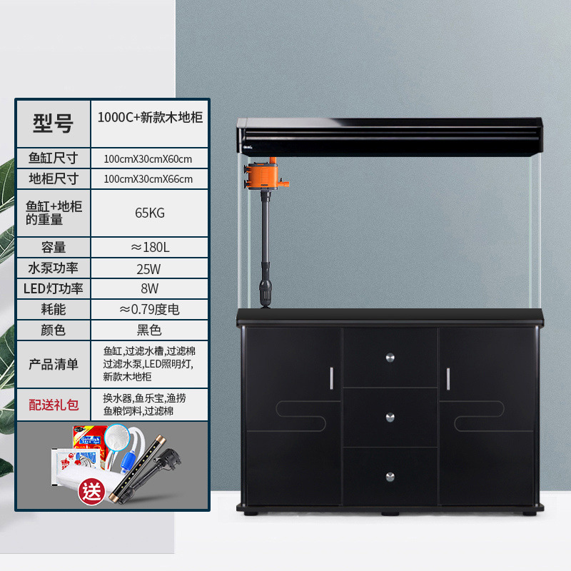 中小型入门鱼缸客厅家用懒人免换水生态大型鱼缸玻璃金鱼缸带柜