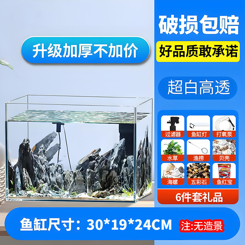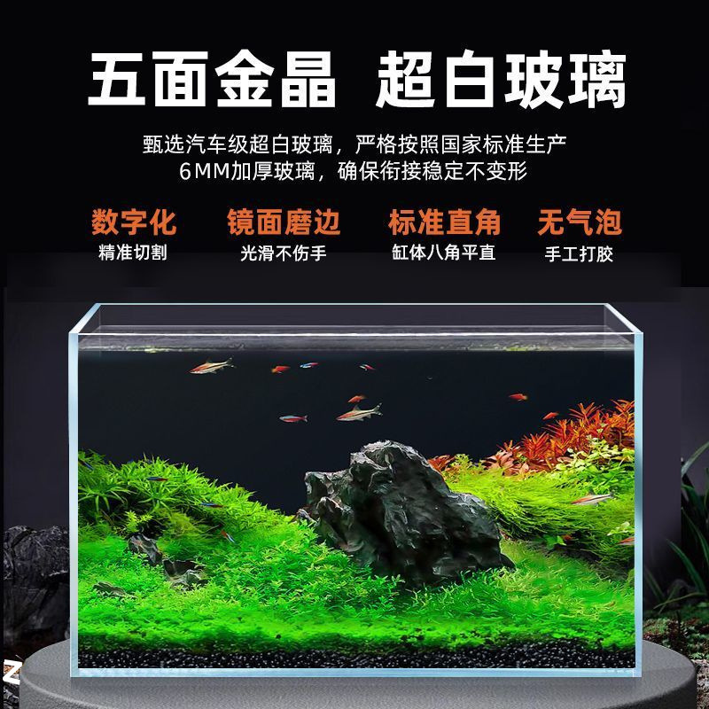 超白鱼缸客厅小型桌面生态溪流造景真水草玻璃懒人养鱼金鱼乌龟缸