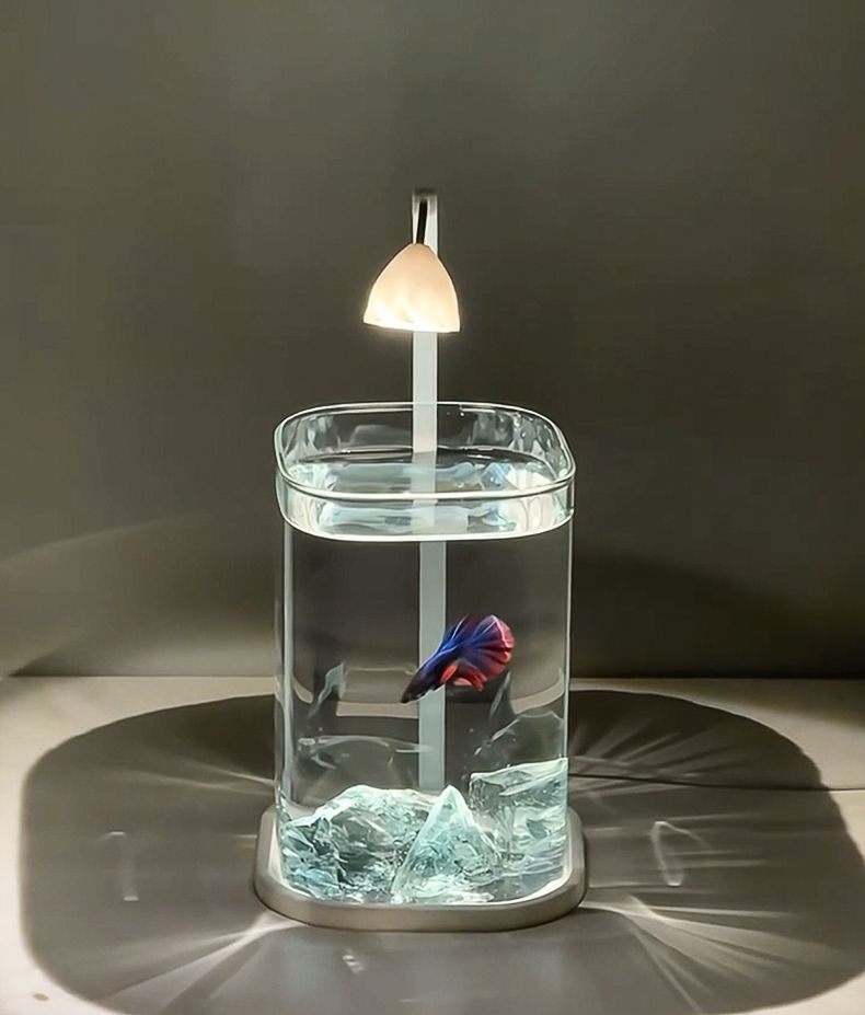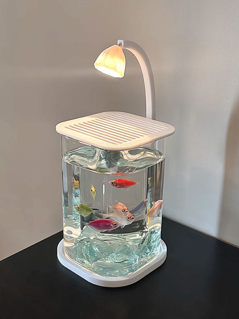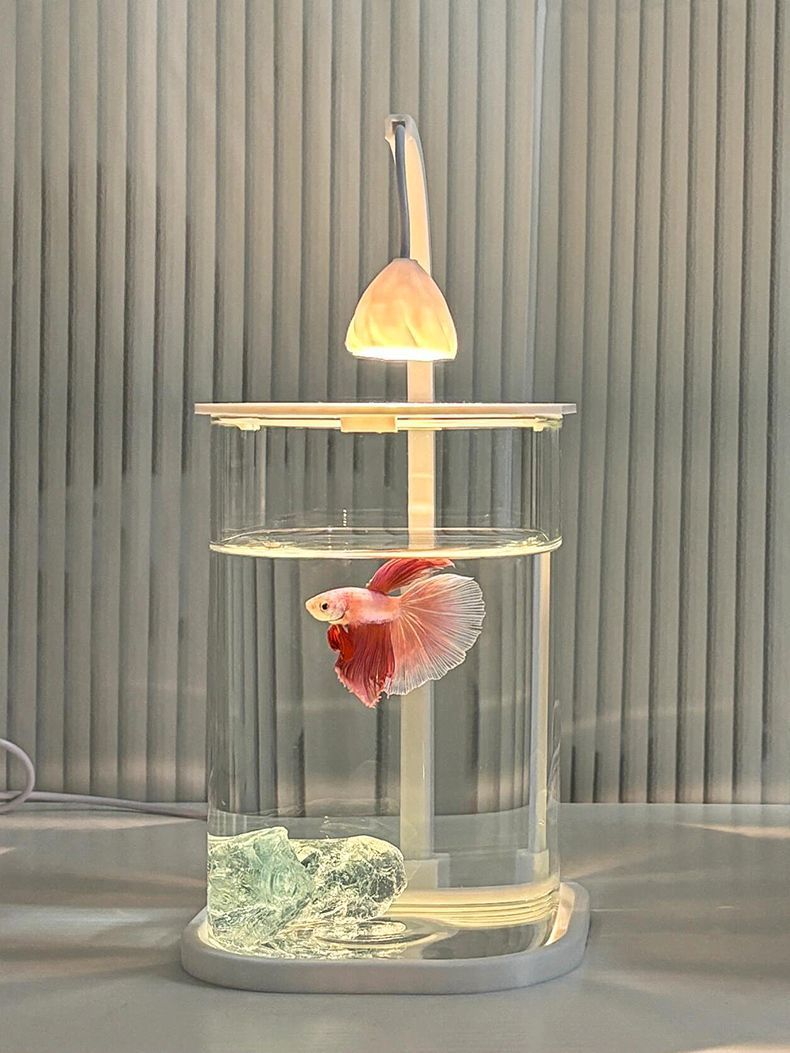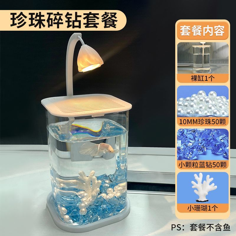 玻璃小鱼缸冰晶石桌面创意生态斗鱼缸珍珠碎钻景观缸装饰造景全套