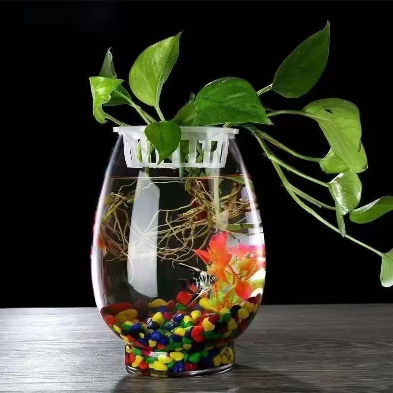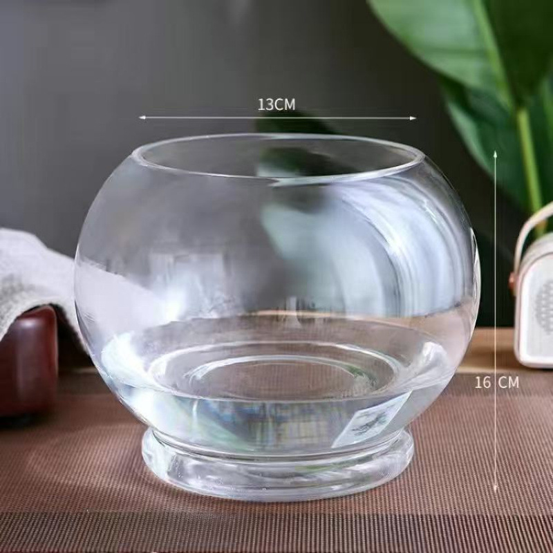 玻璃睡莲盆鱼缸小型家用水莲花水养透明玻璃盆水仙碗莲盆亚马逊