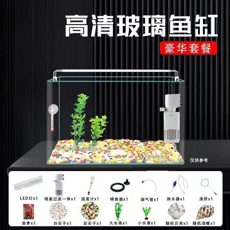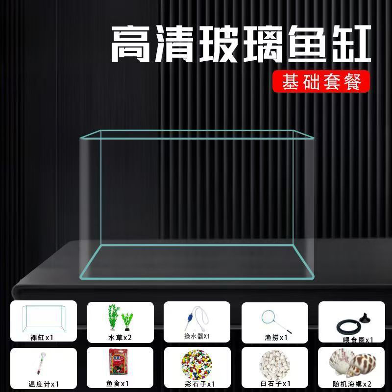 热弯高清玻璃鱼缸家用桌面办公室造景热带鱼金鱼缸一体成型玻璃缸
