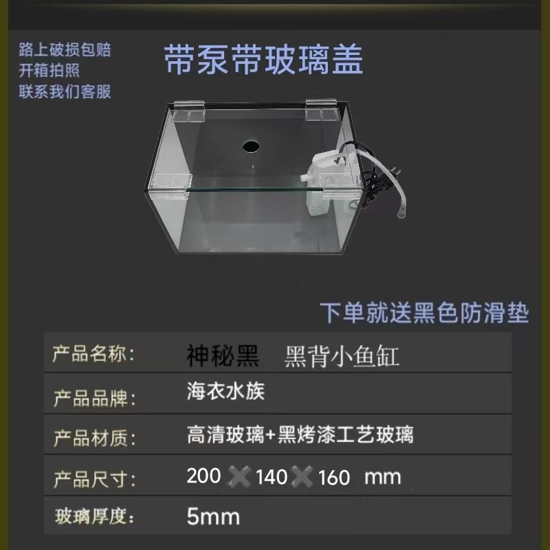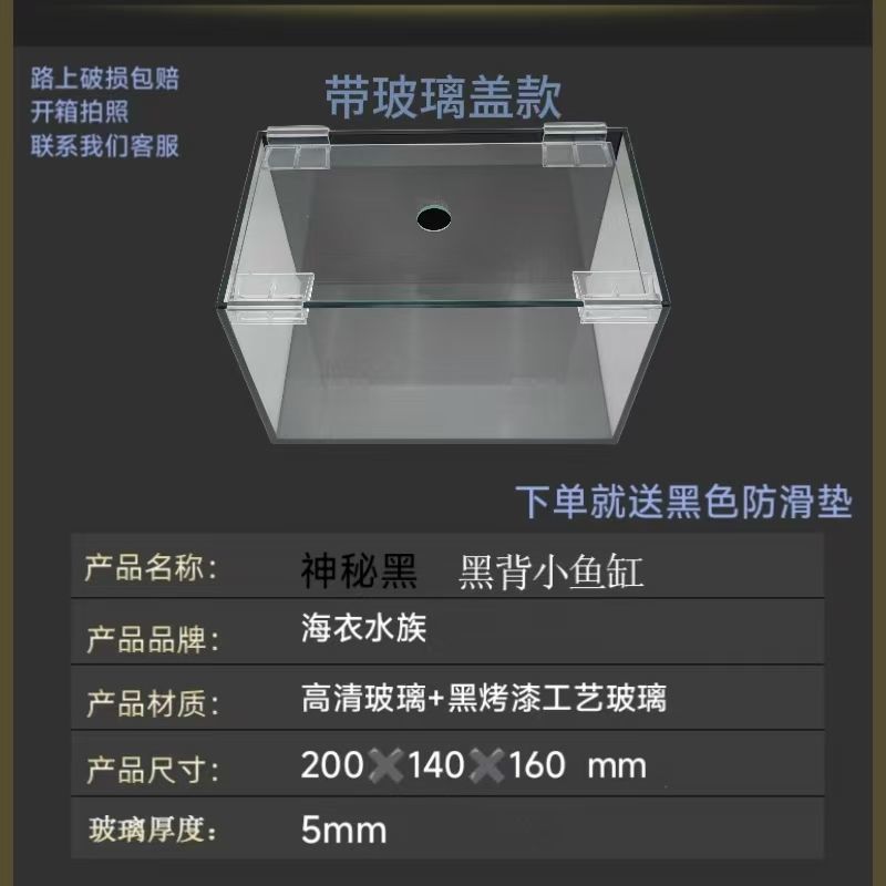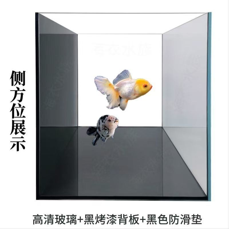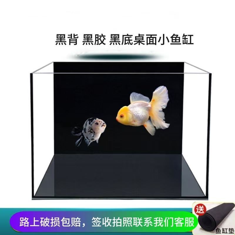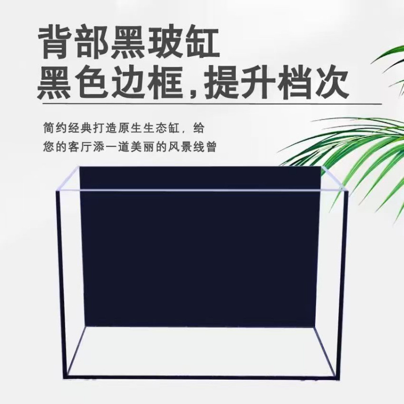 黑背黑胶鱼缸客厅小型家用直角黑玻缸桌面水族箱养鱼缸带盖有盖