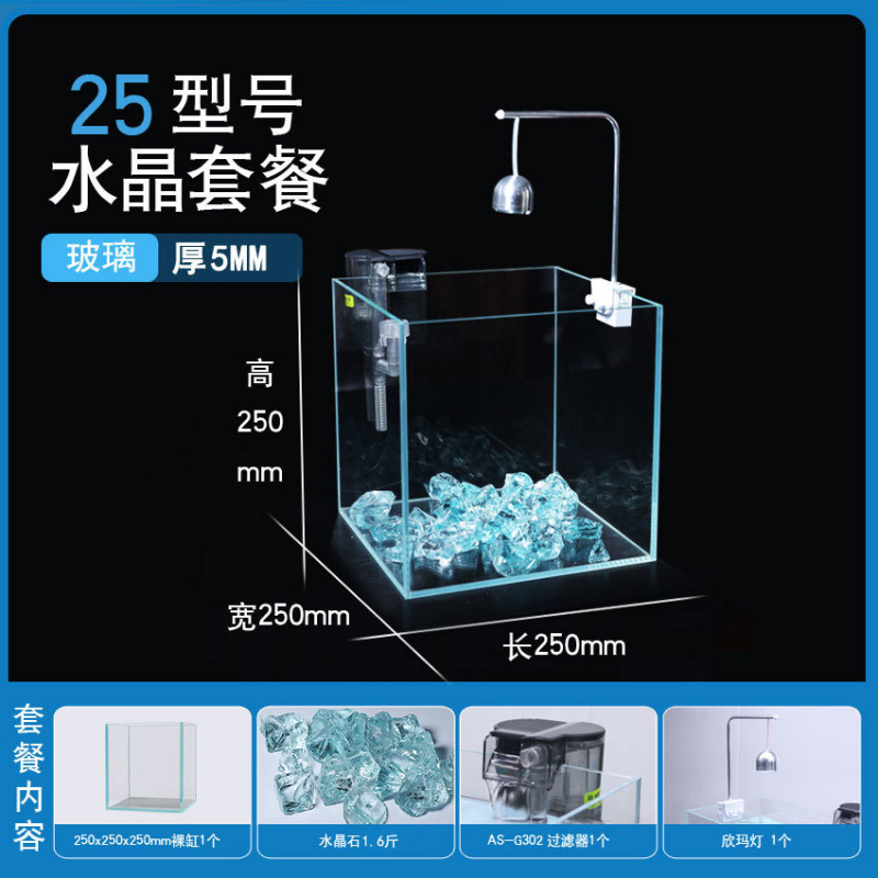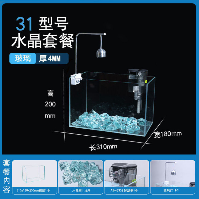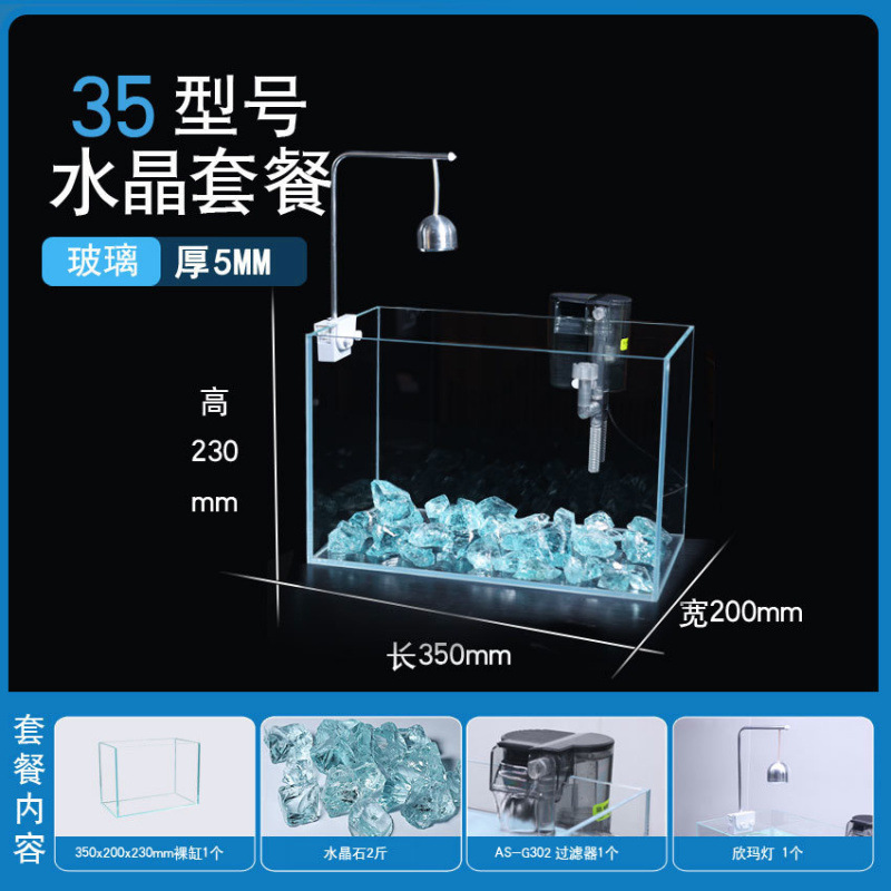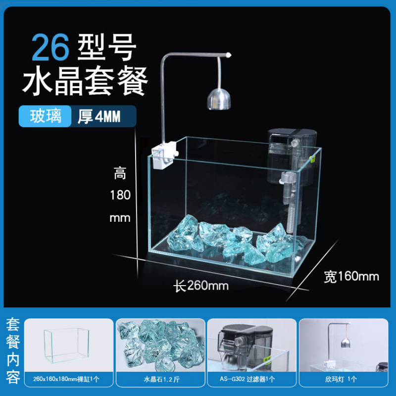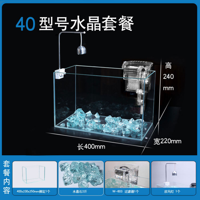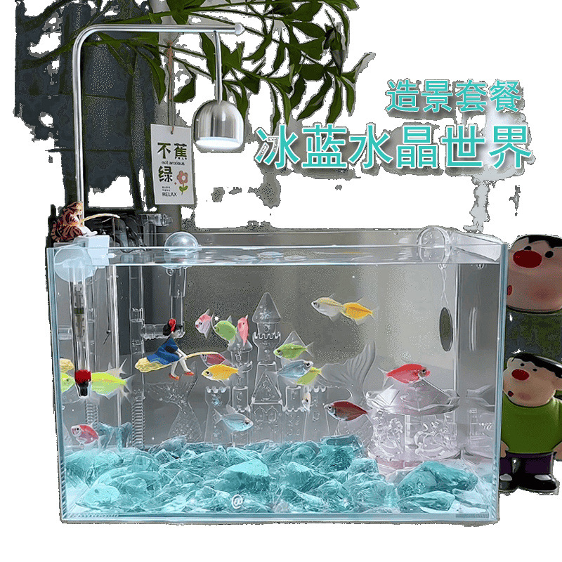 超白玻璃鱼缸桌面小型简约观赏缸桌面懒人水晶碎石养鱼造景饲养缸