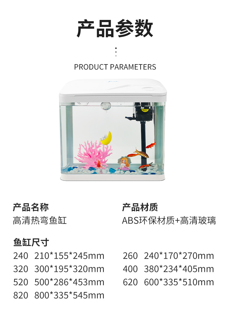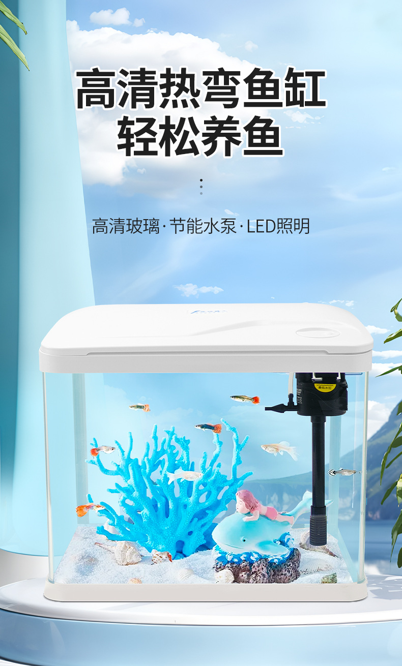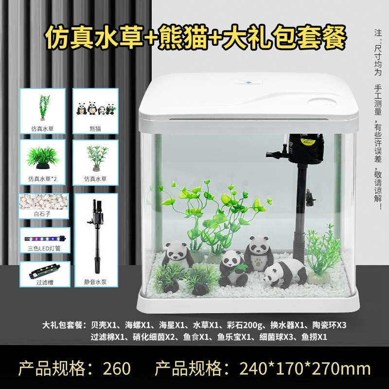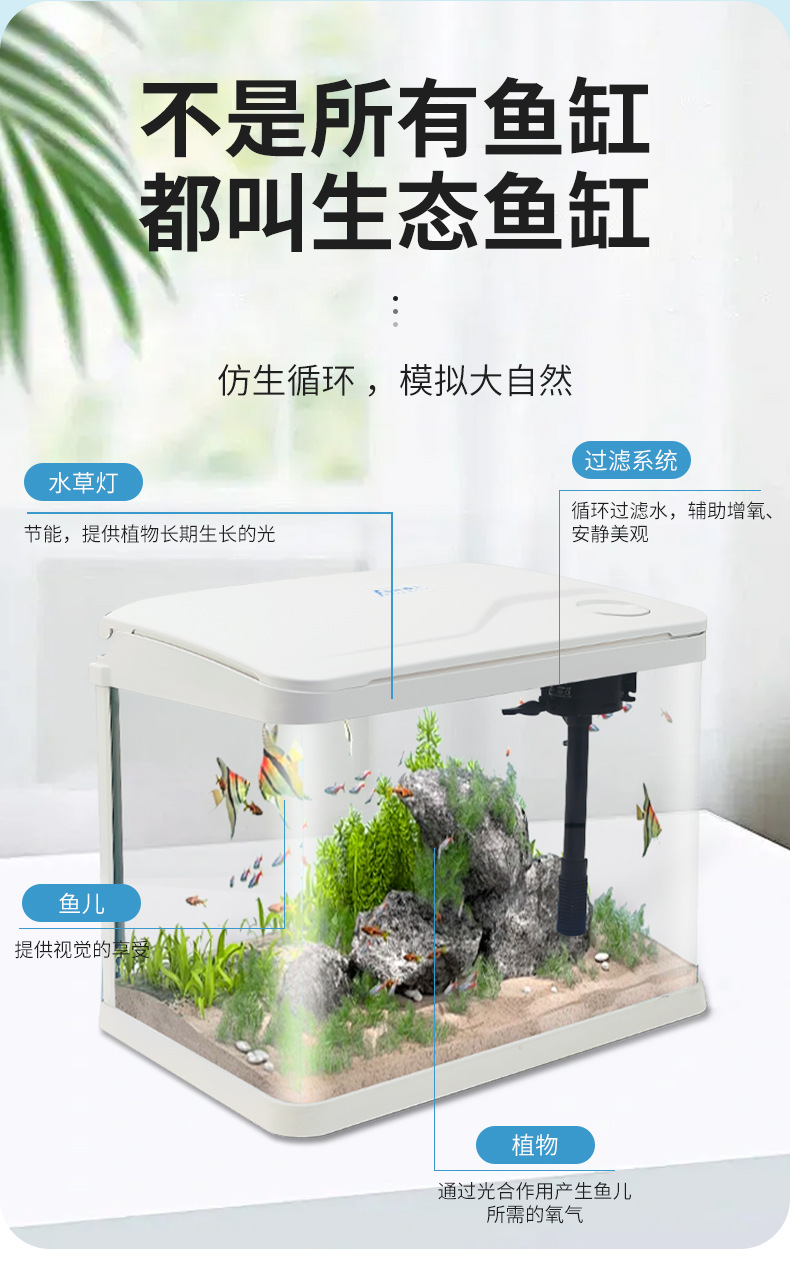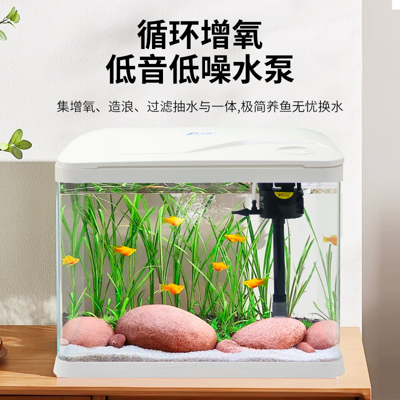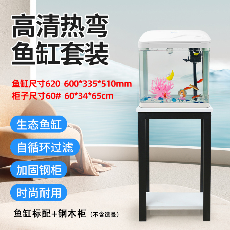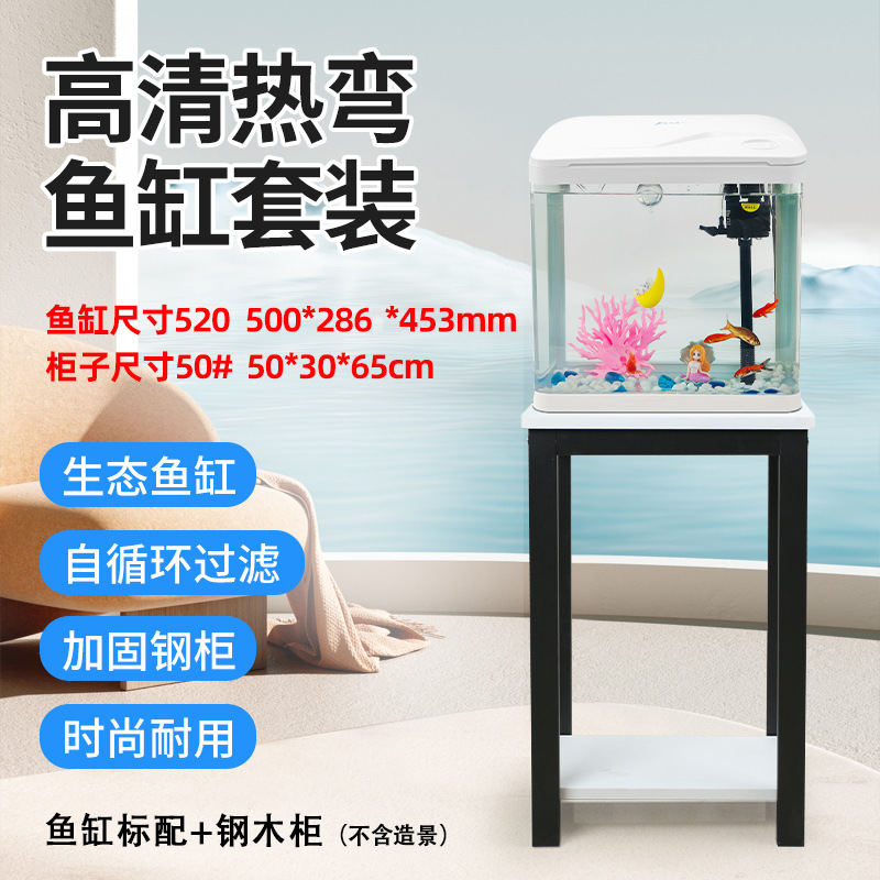 热弯高清玻璃鱼缸客厅小型家用桌面免换水循环生态造景水族箱批发