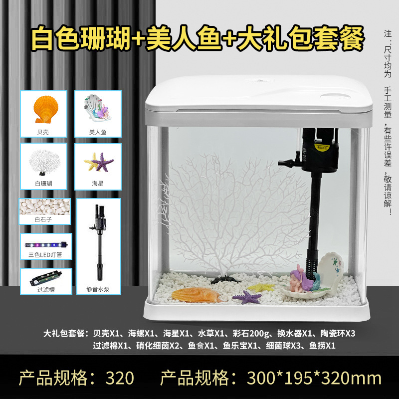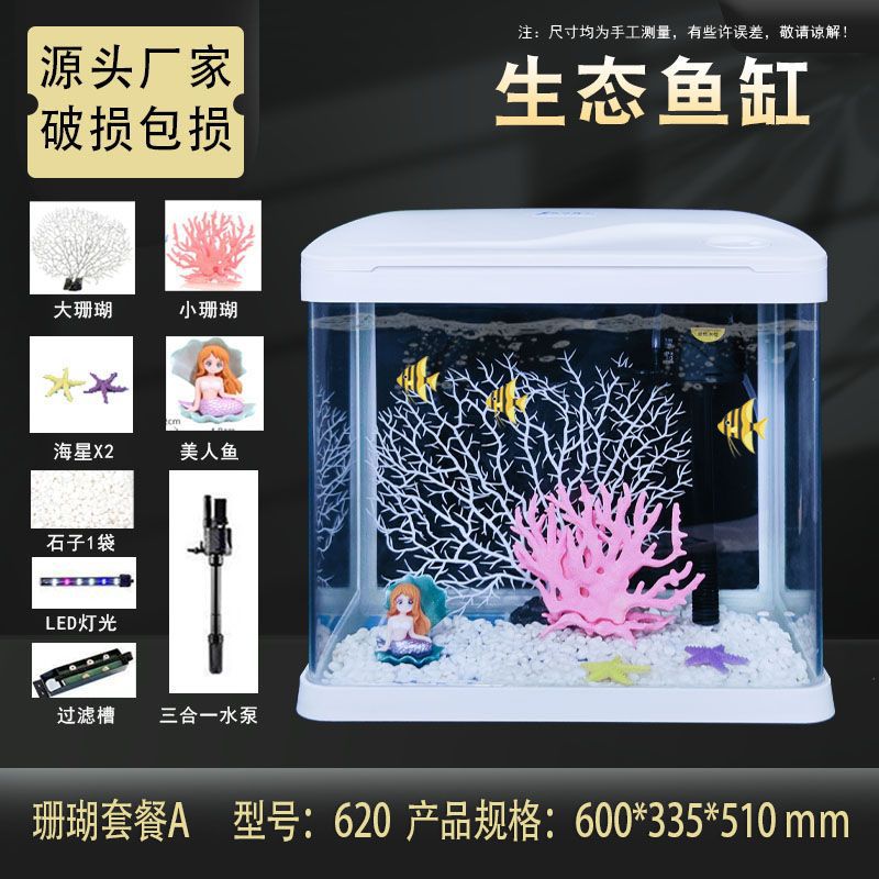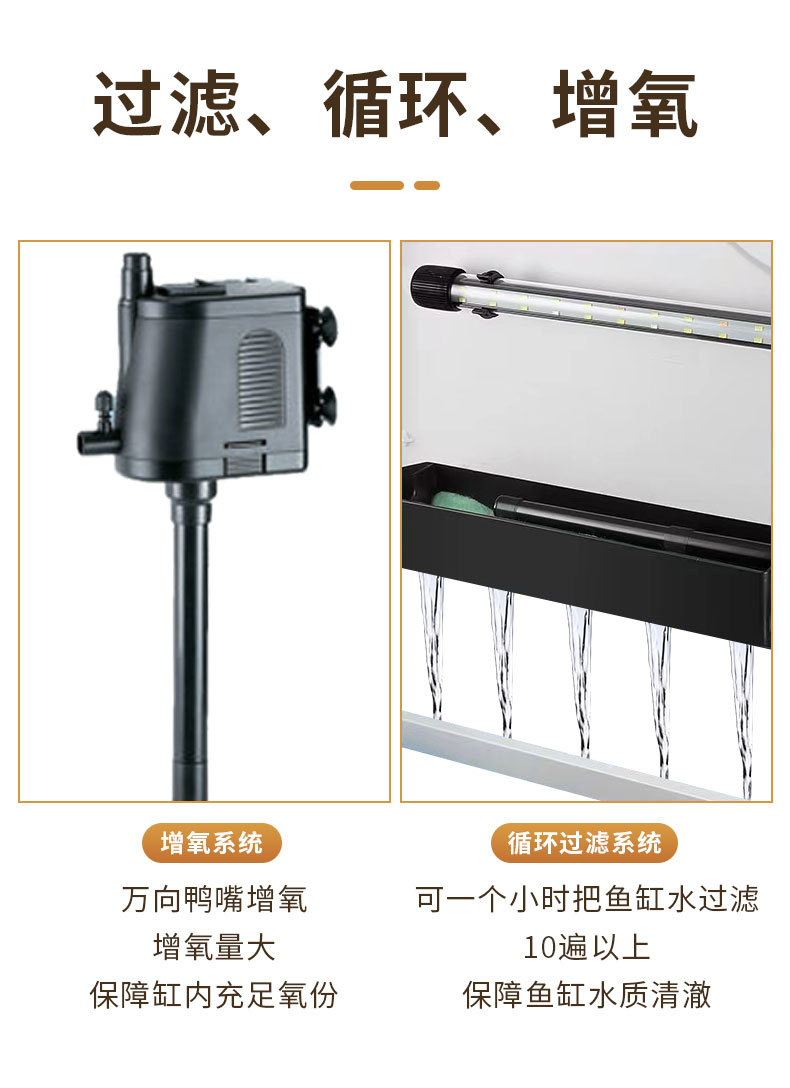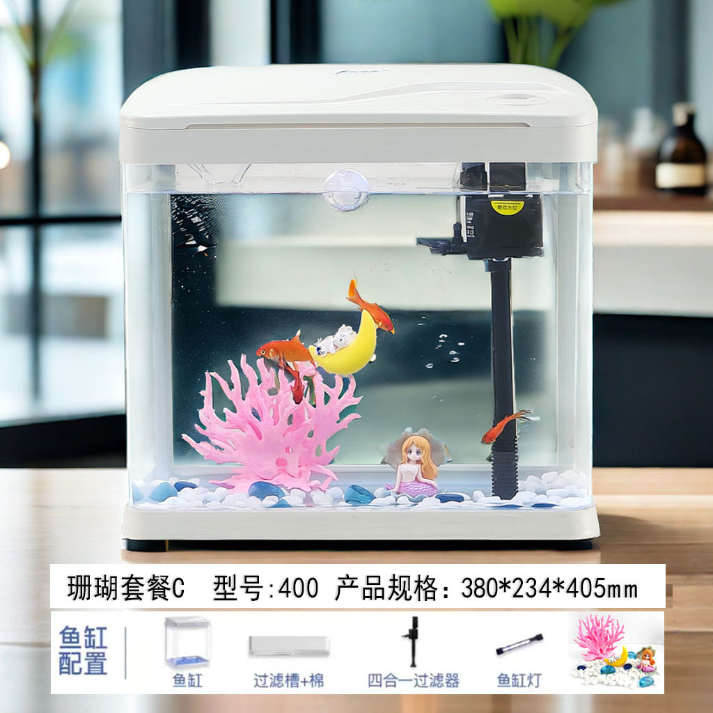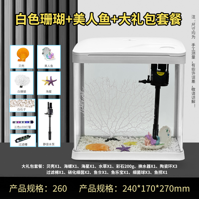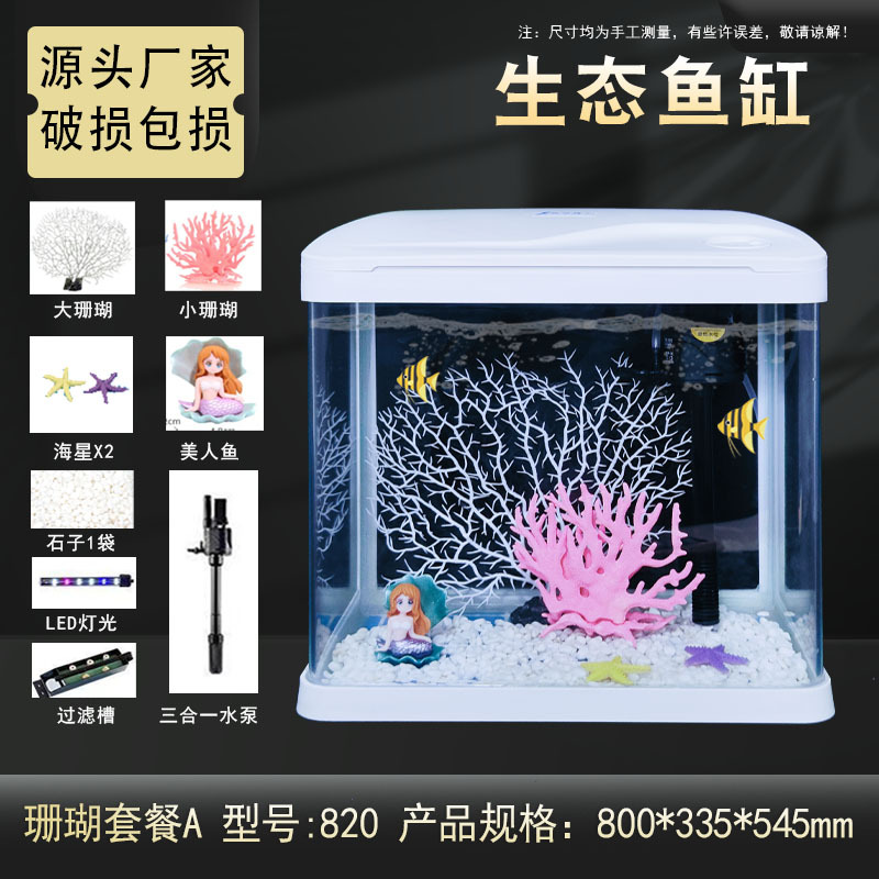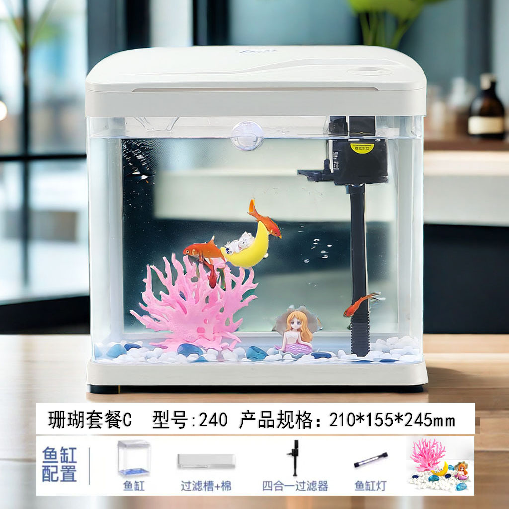 热弯高清玻璃鱼缸客厅小型家用桌面免换水循环生态造景水族箱批发
