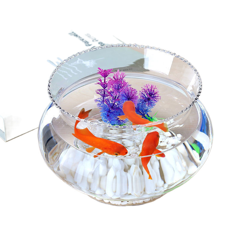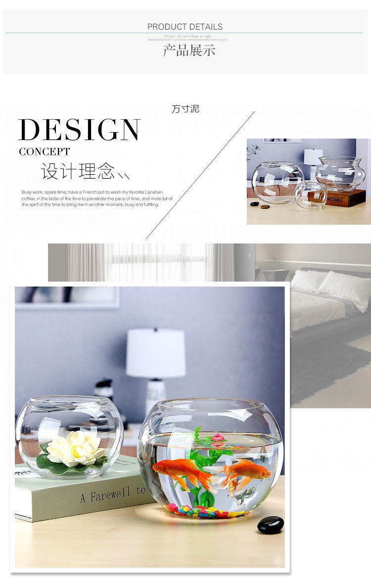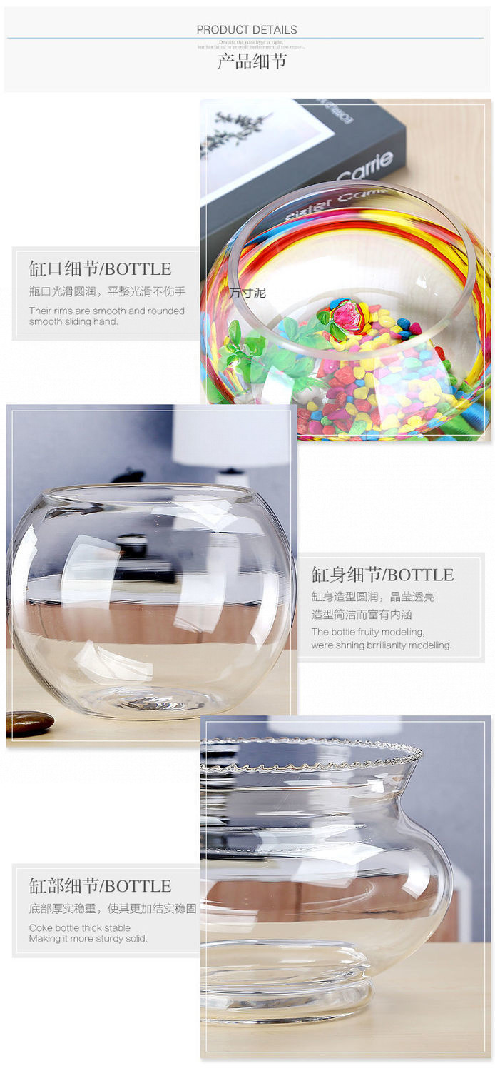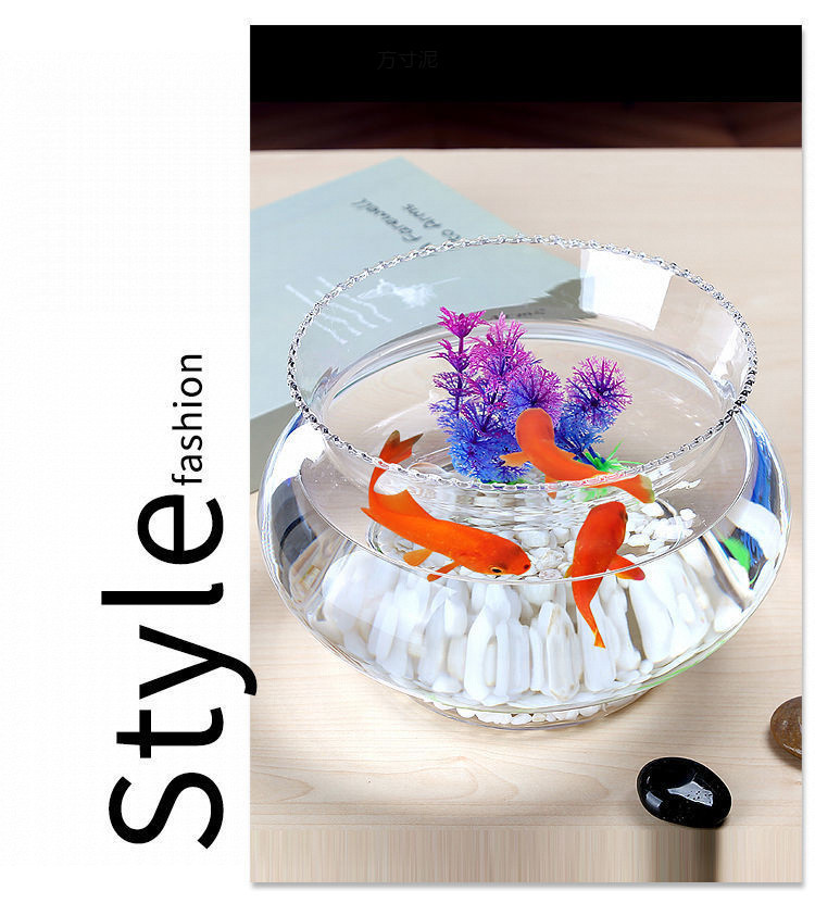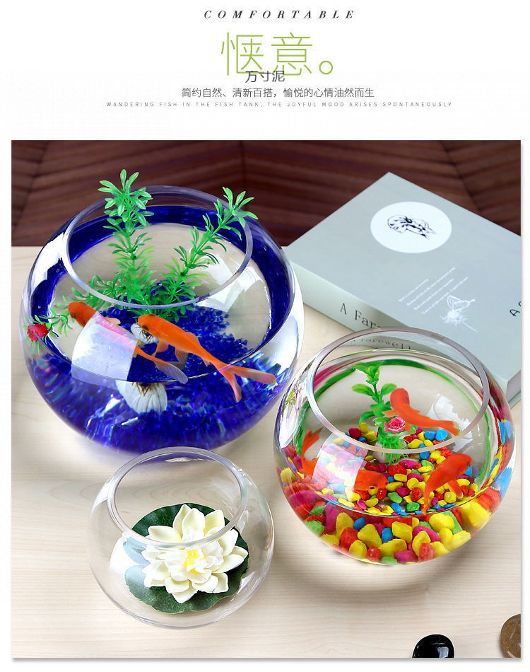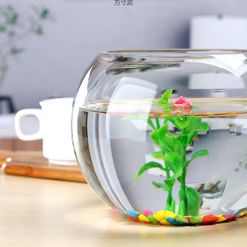 高透加厚小型玻璃鱼缸微景缸家用客厅圆形金鱼缸办公桌迷你乌龟缸