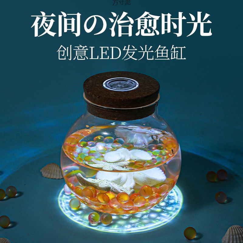 发光生态瓶微景观造景水族箱办公桌面书桌客厅迷你观赏玻璃缸批发