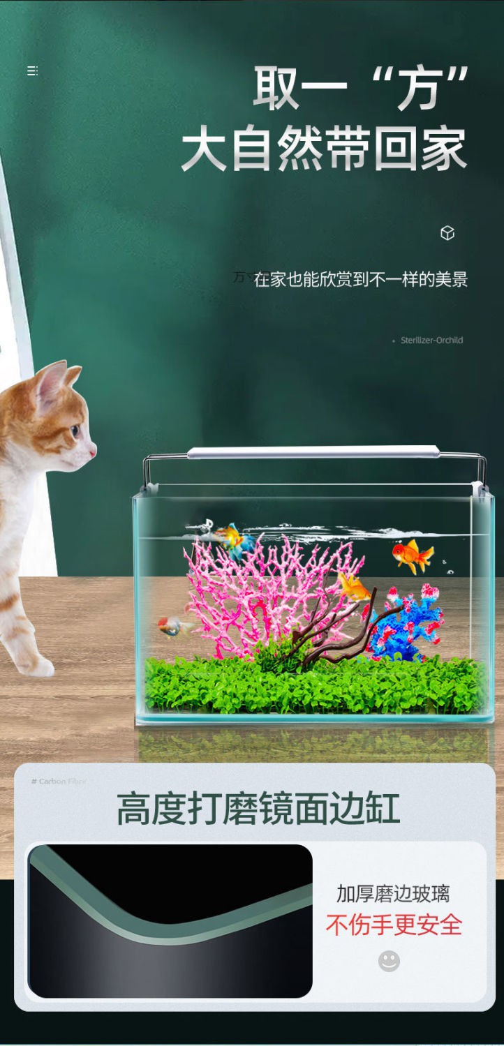 热弯玻璃鱼缸长方形小型家用客厅桌面水族箱迷你龟缸热带鱼金鱼缸