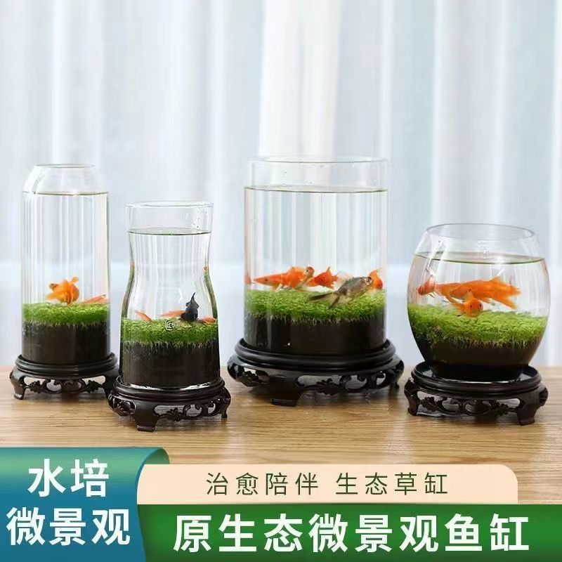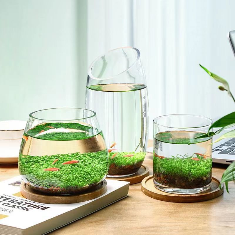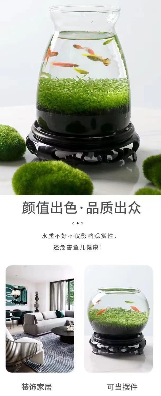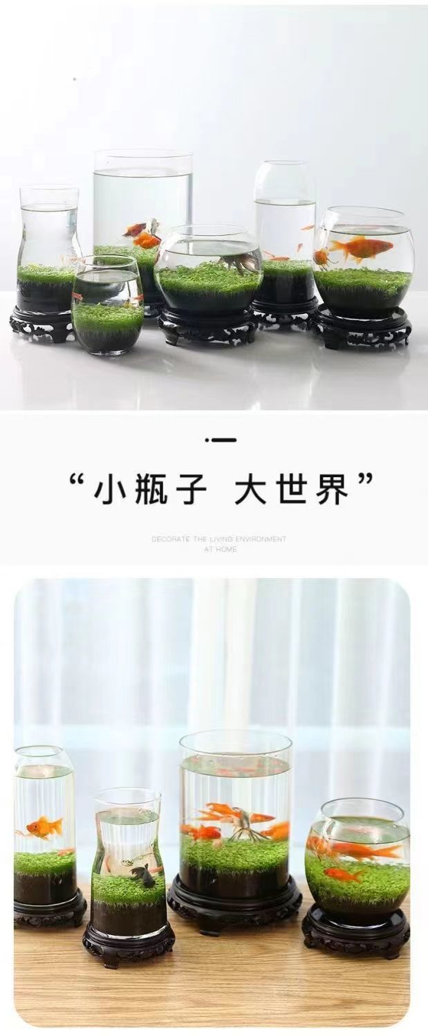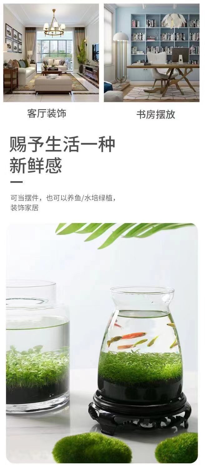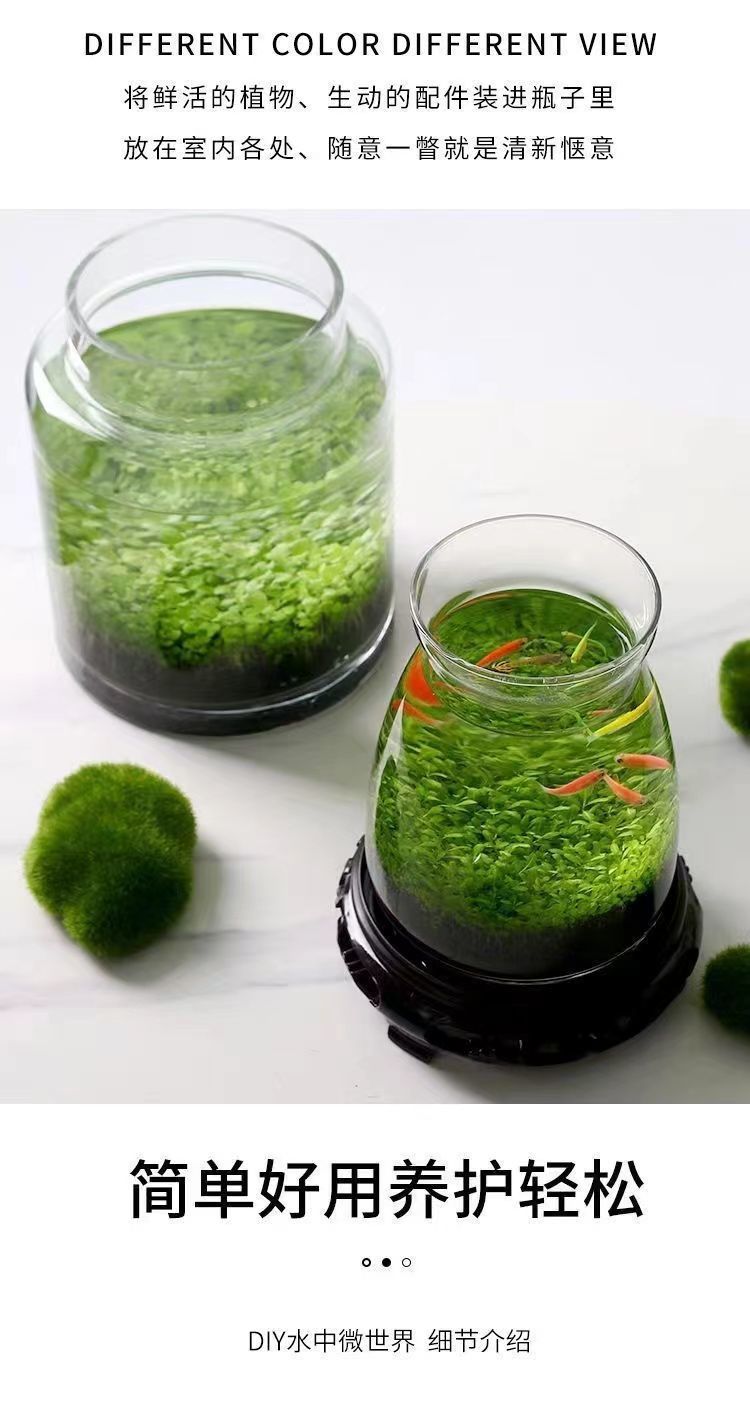 水鱼缸微景观泥创意桌面盆栽水培植物玻璃瓶水造景对叶