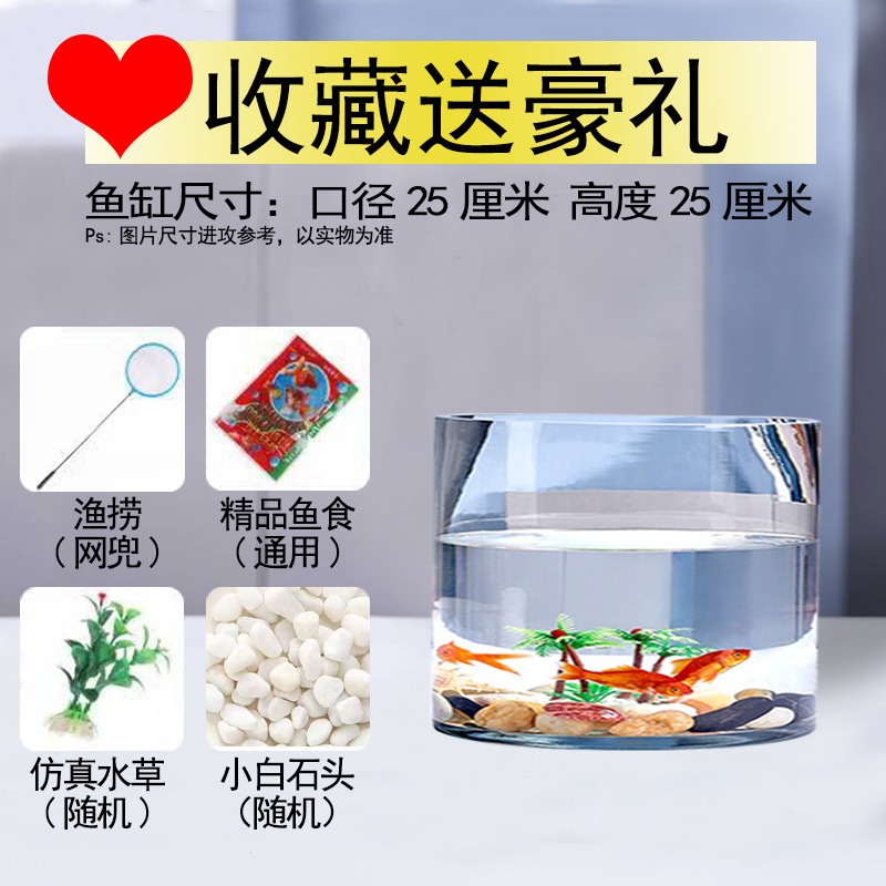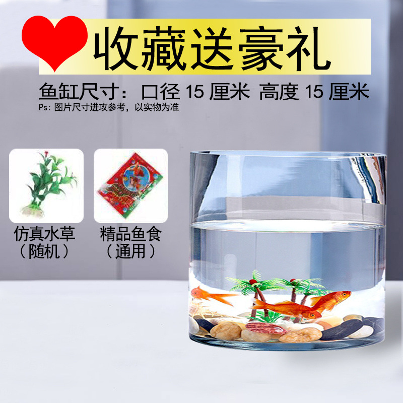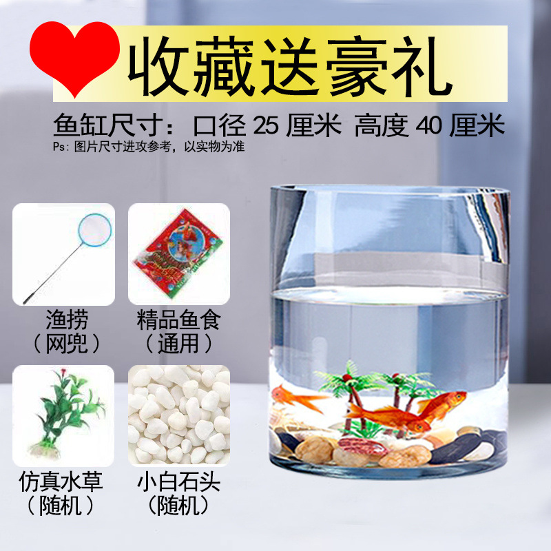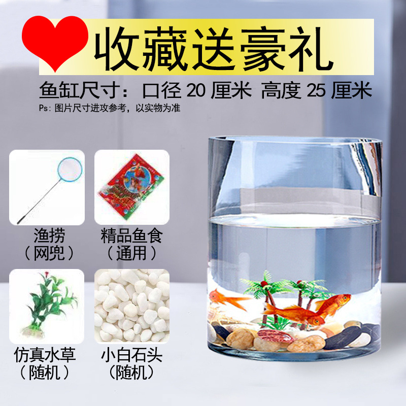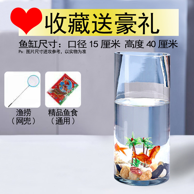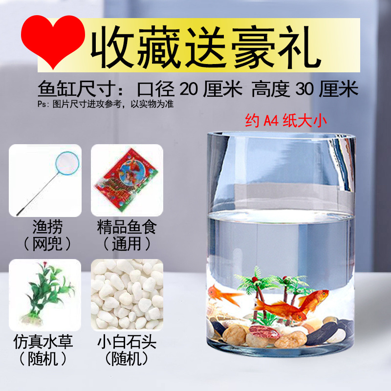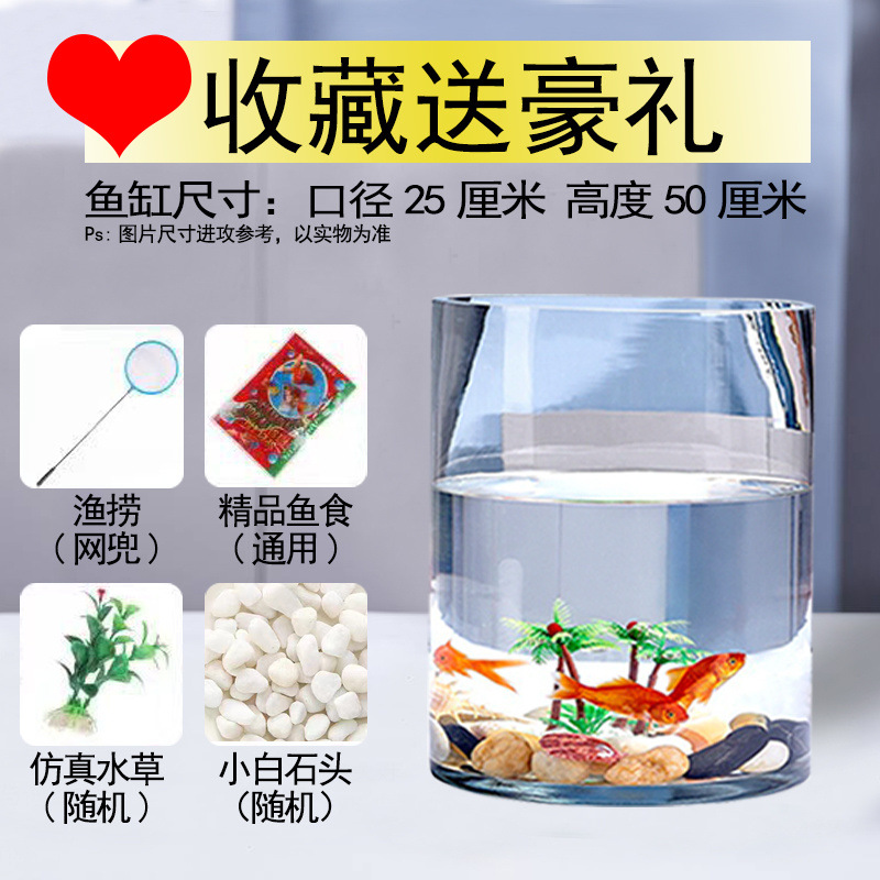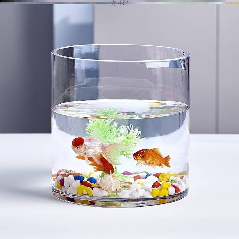直筒玻璃水族鱼缸小型圆形圆柱透明金鱼缸家用客厅办公室造景批发