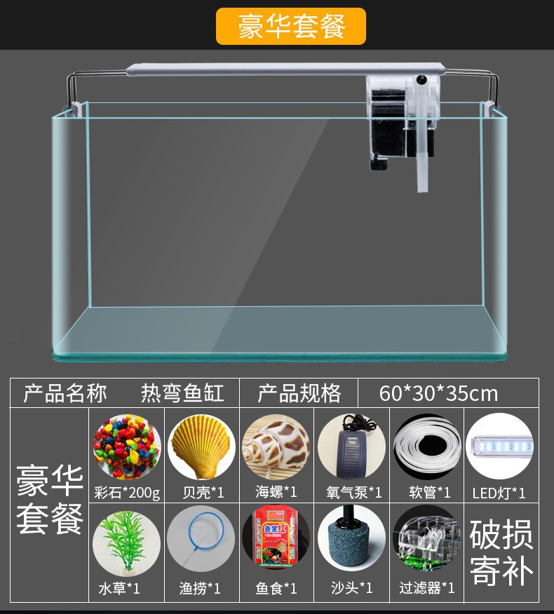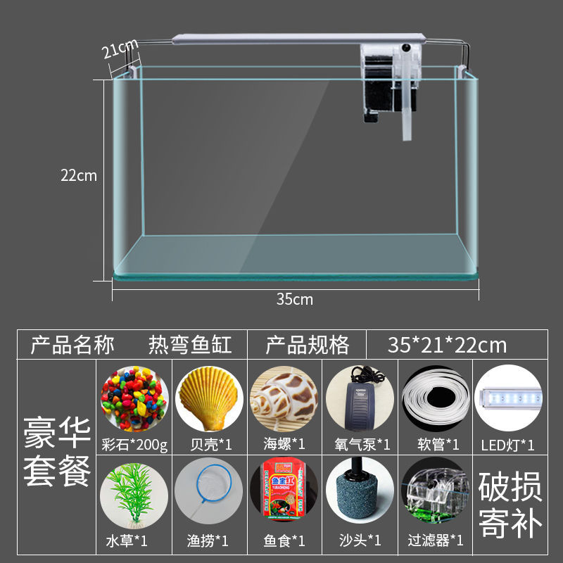 热弯鱼缸小型透明客厅阳台桌面造景水族家用金鱼斗鱼玻璃中型鱼缸