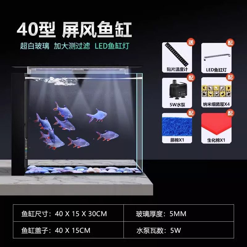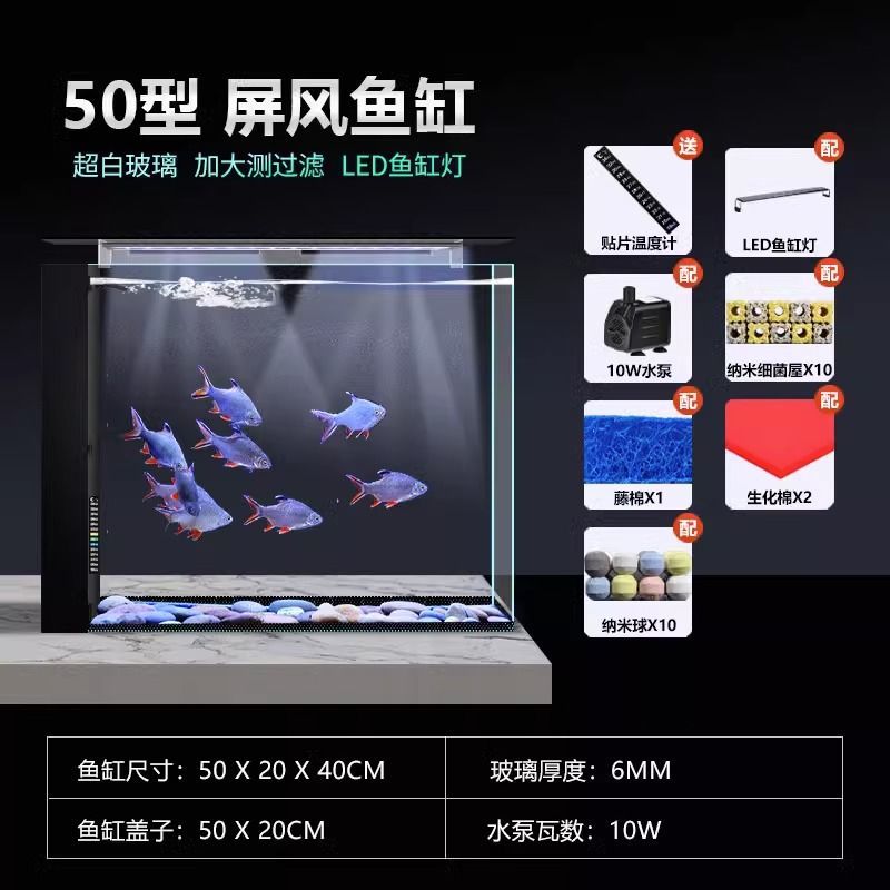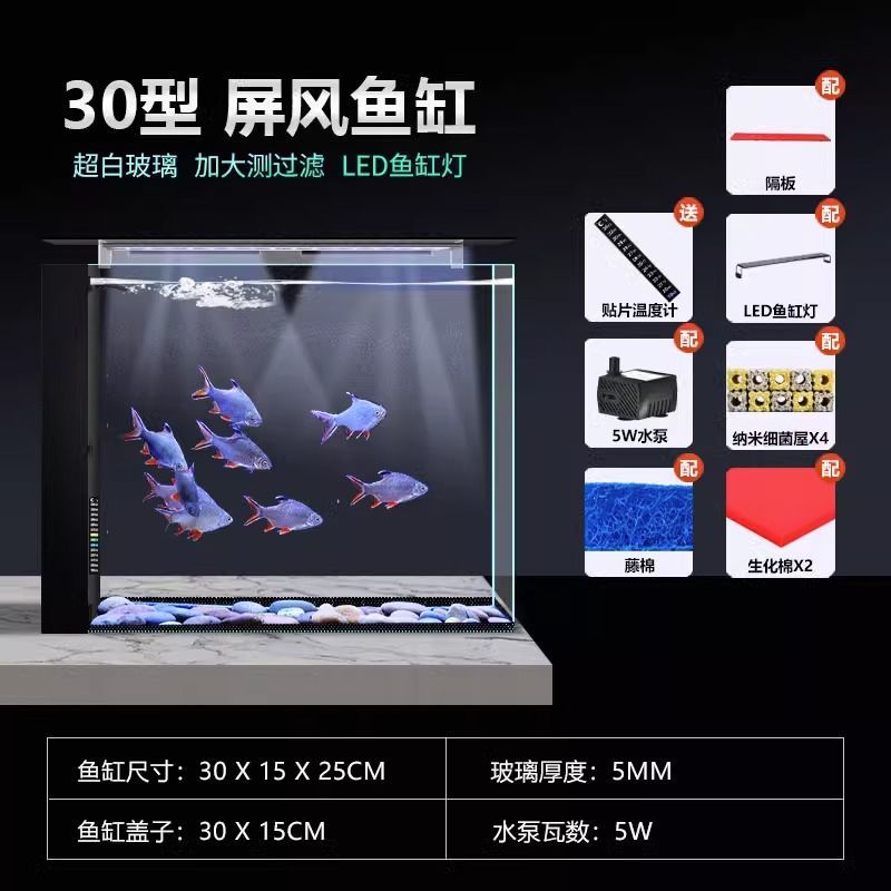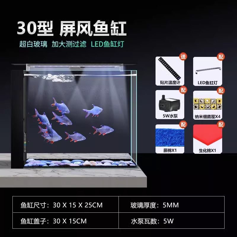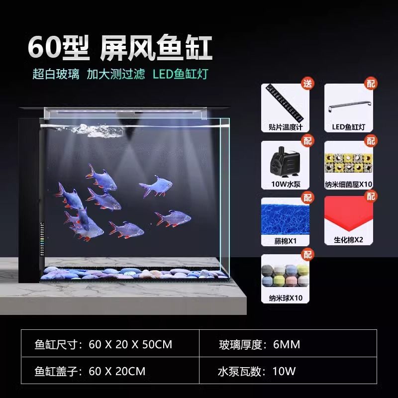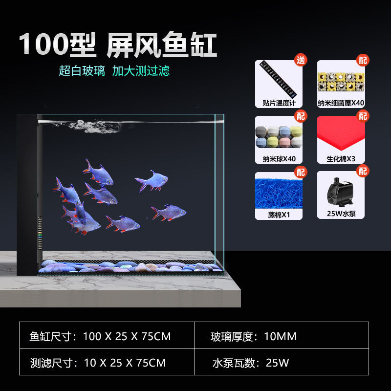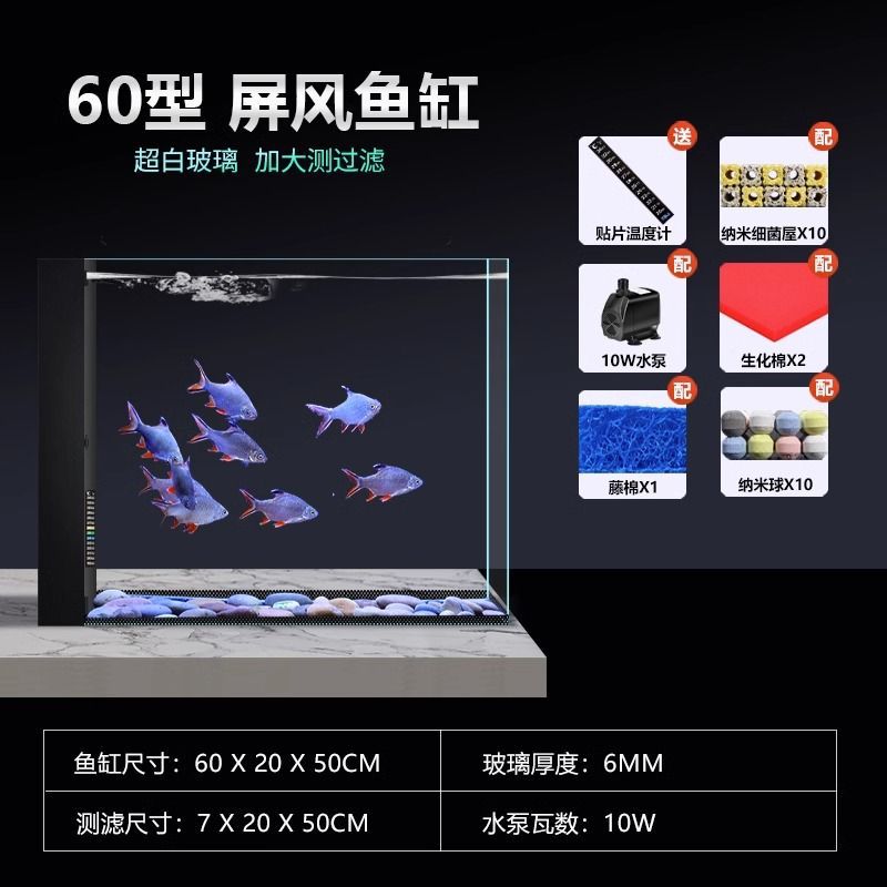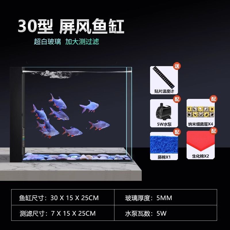 家用屏风缸客厅小型鱼缸桌面生态过滤水草缸超白玻璃侧滤热带鱼缸