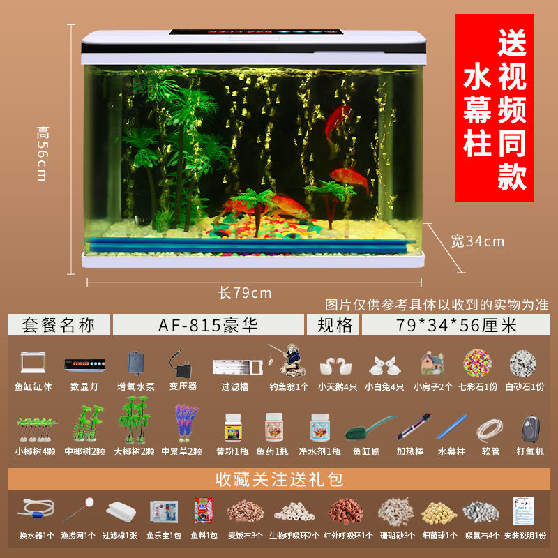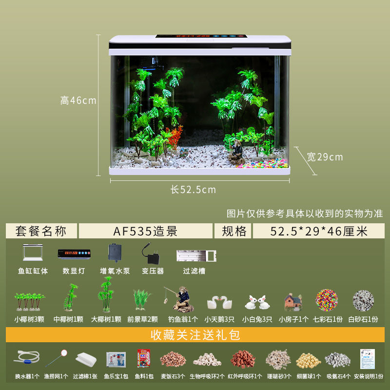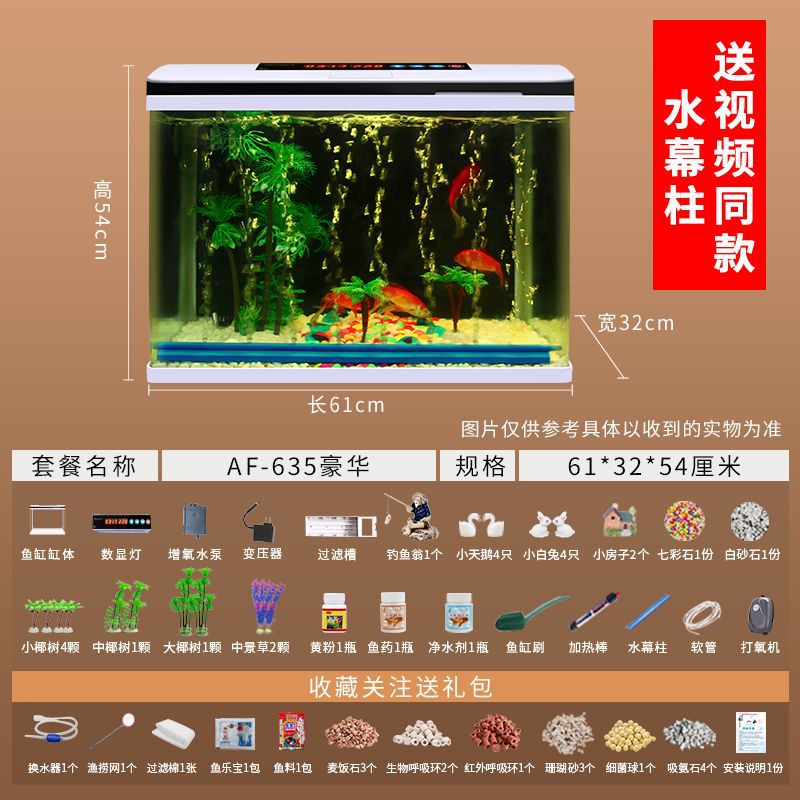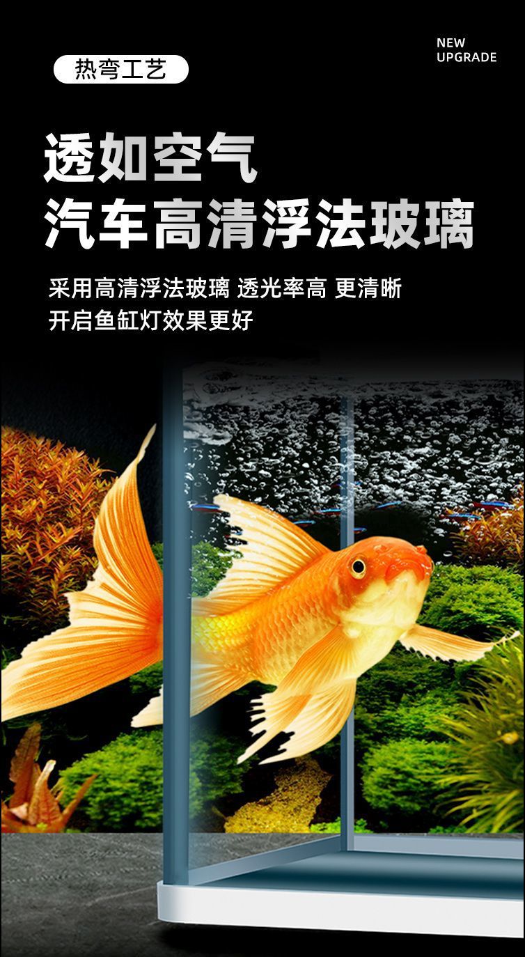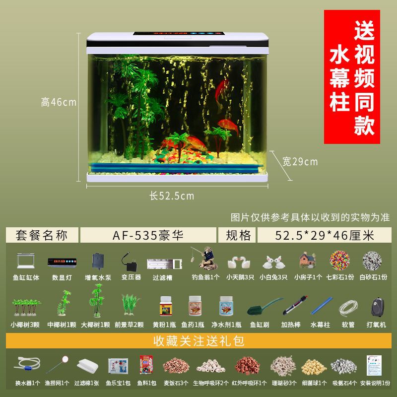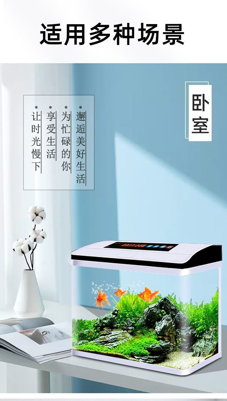 鱼缸水族箱小型桌面客厅懒人免换水家用生态缸高清玻璃热弯金鱼缸
