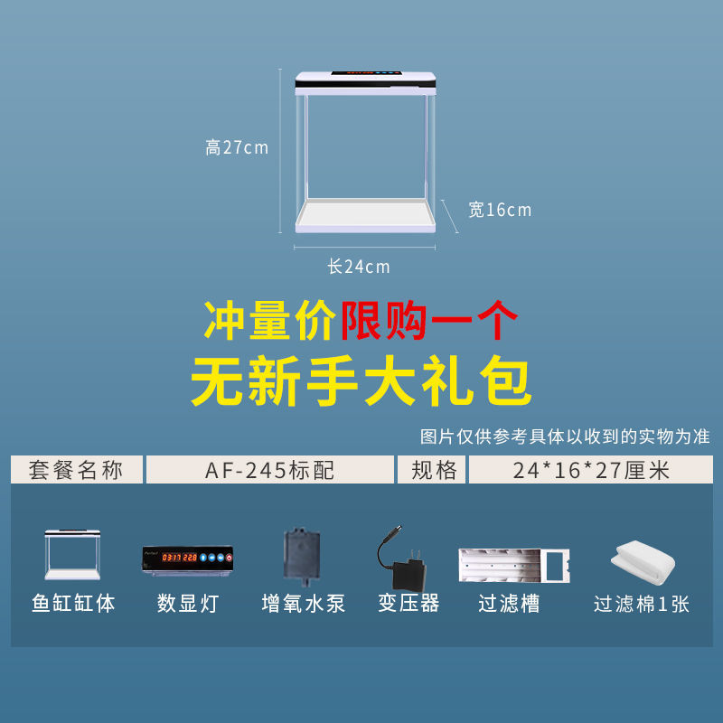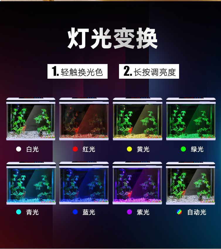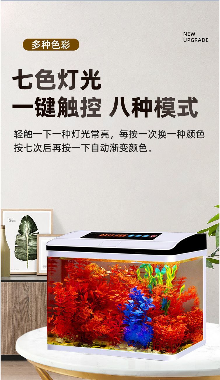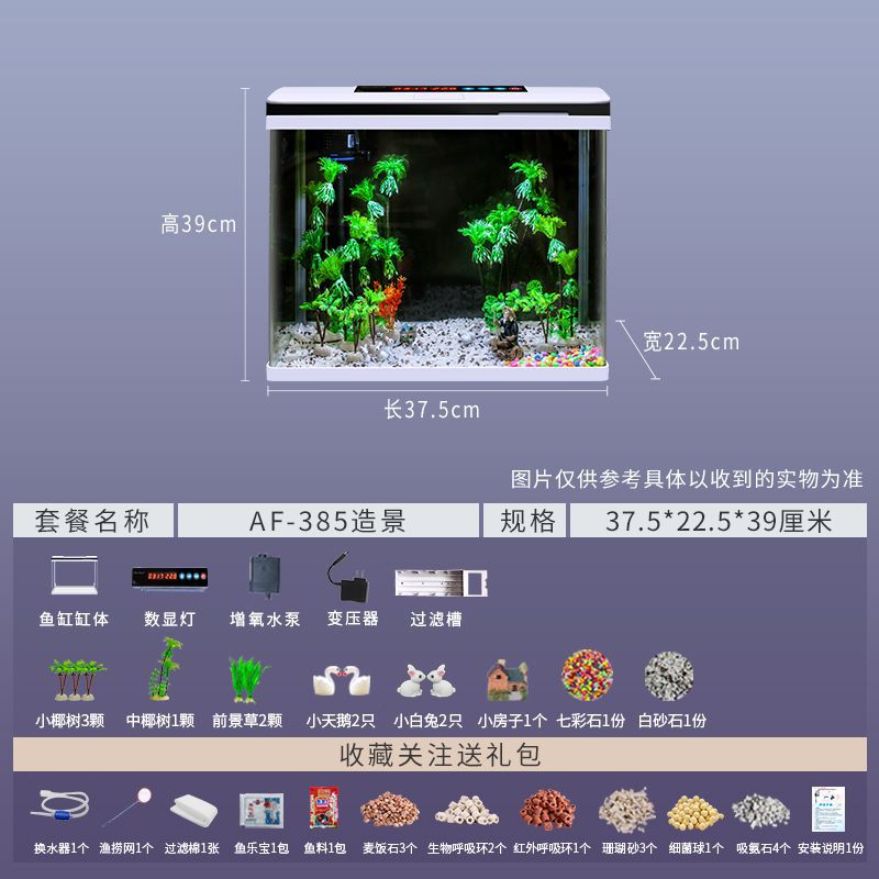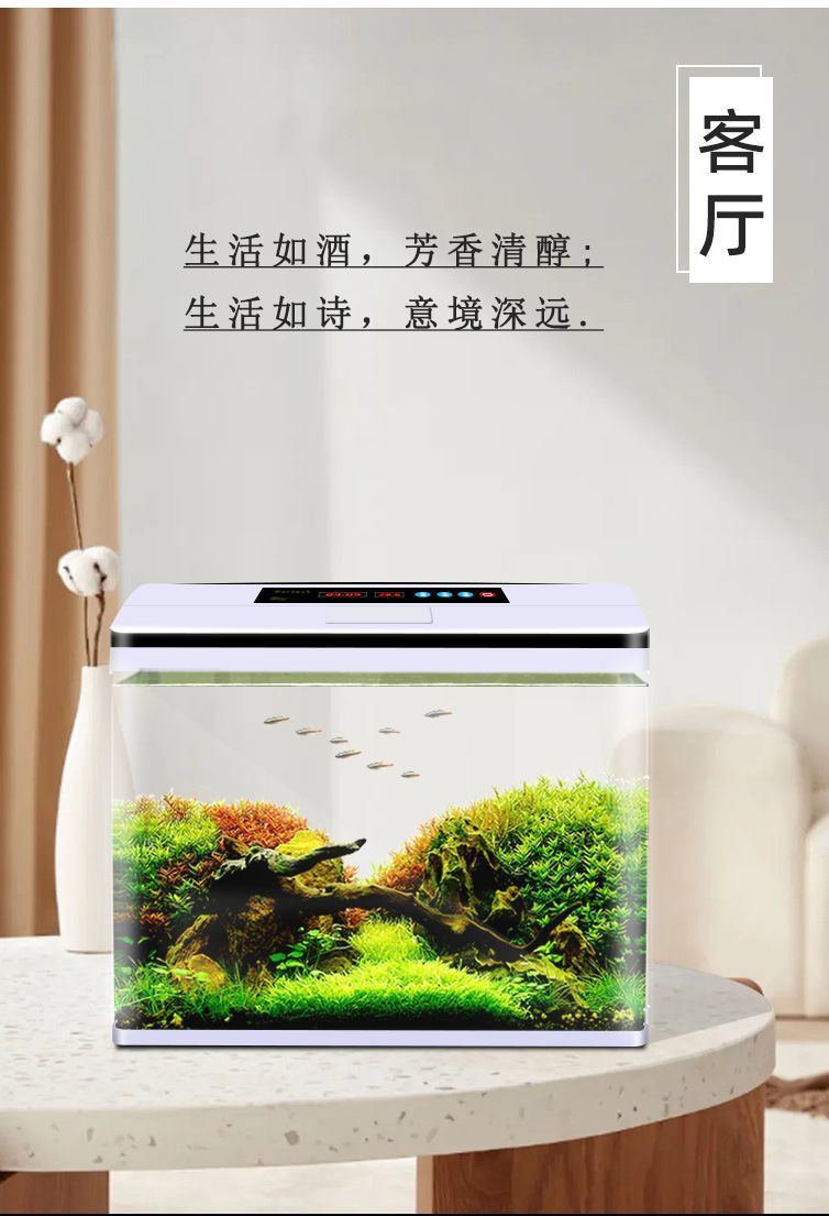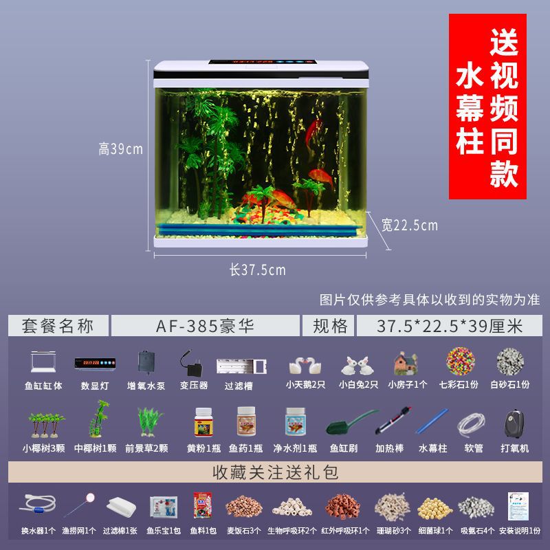 鱼缸水族箱小型桌面客厅懒人免换水家用生态缸高清玻璃热弯金鱼缸