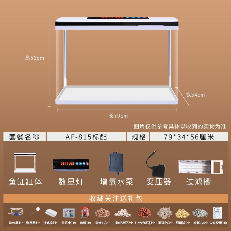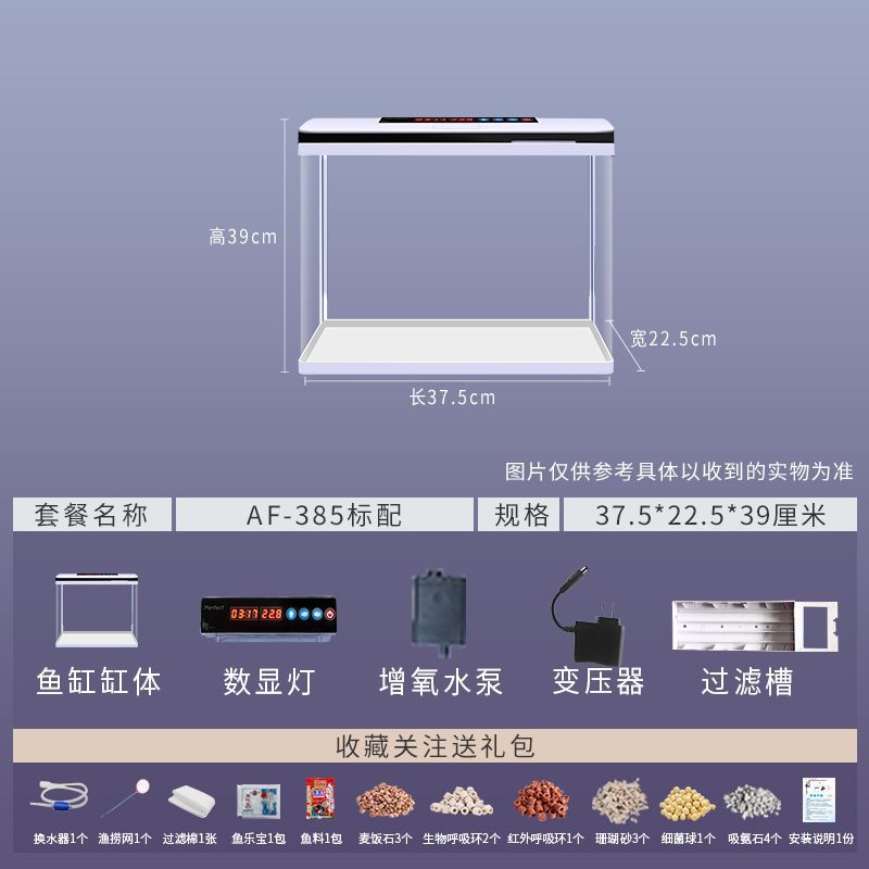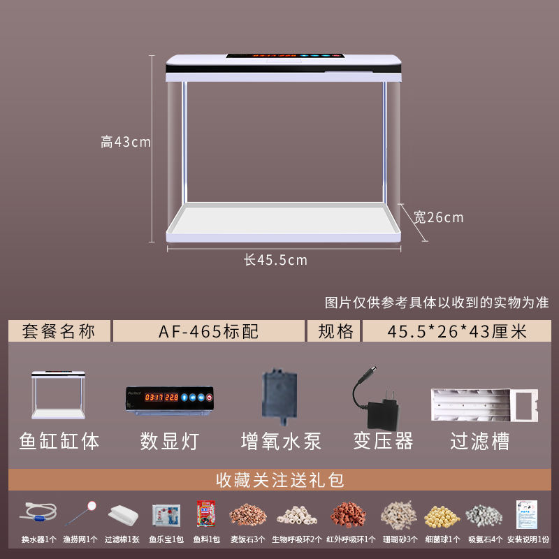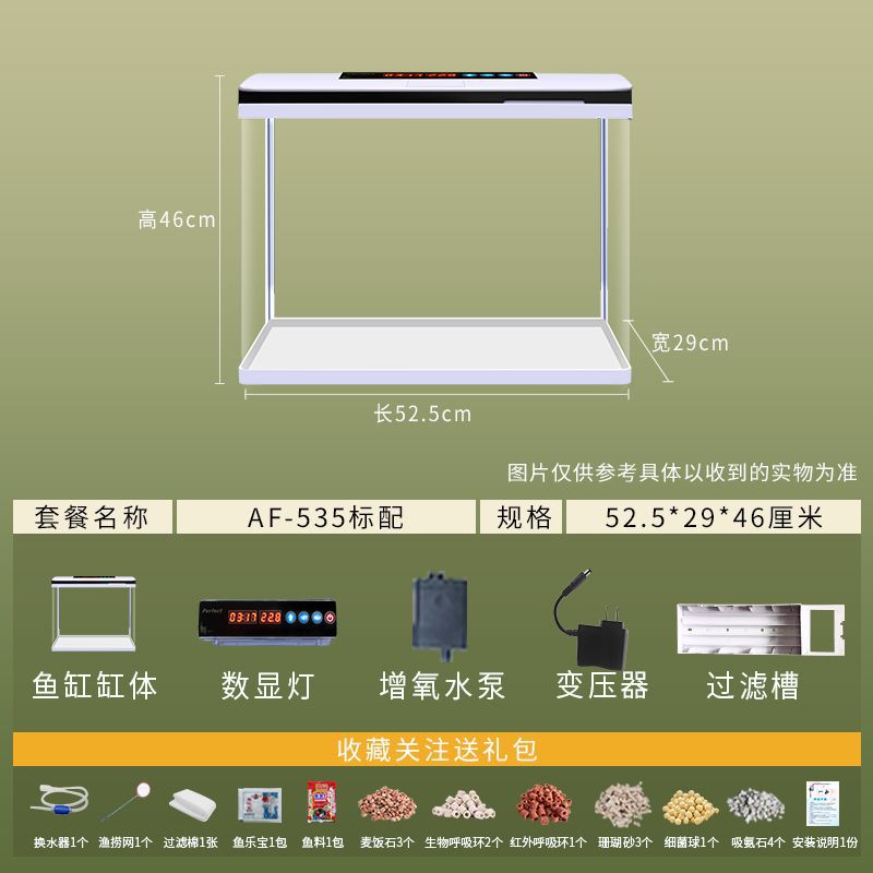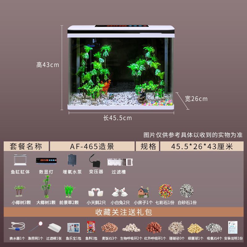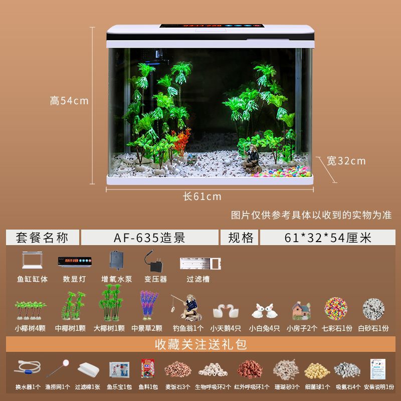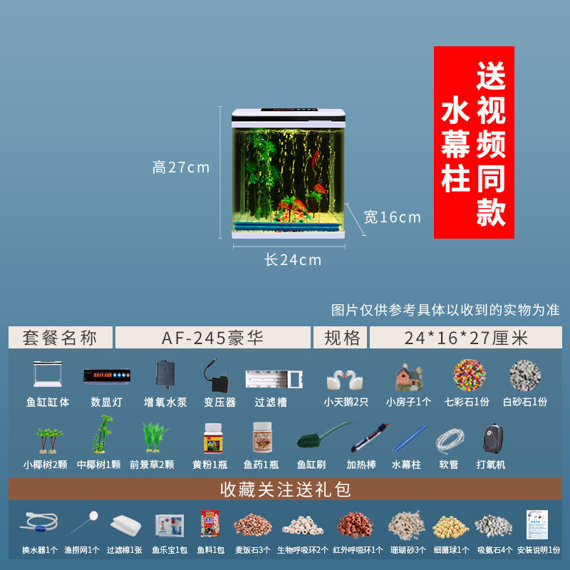 鱼缸水族箱小型桌面客厅懒人免换水家用生态缸高清玻璃热弯金鱼缸