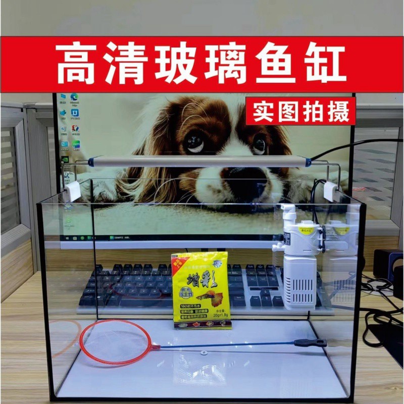 鱼缸玻璃金鱼缸客厅办公桌黑胶直角钢化生态造景懒人小仓鼠水族箱