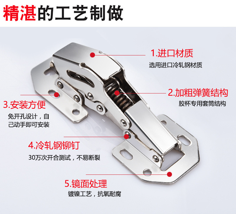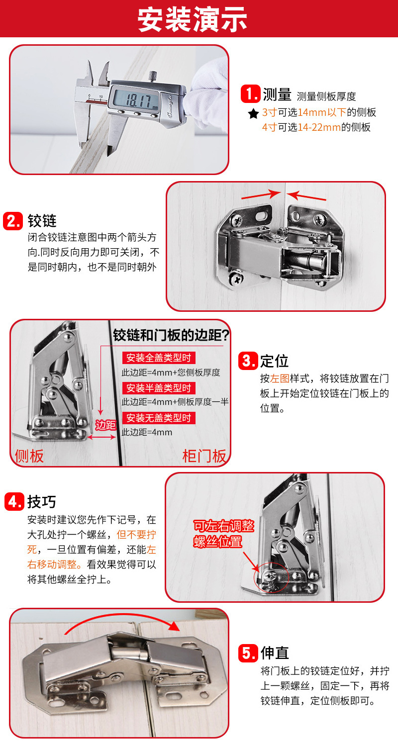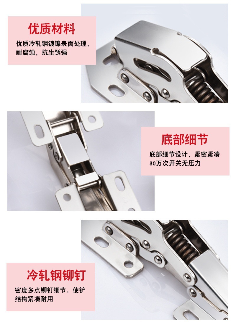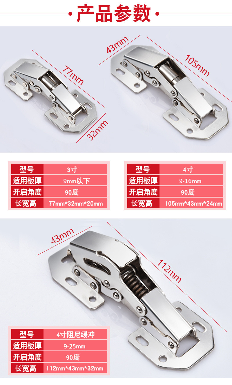 免开孔柜门铰链合页大全阻尼缓冲折叠衣柜门铰弹簧橱柜五金件配件