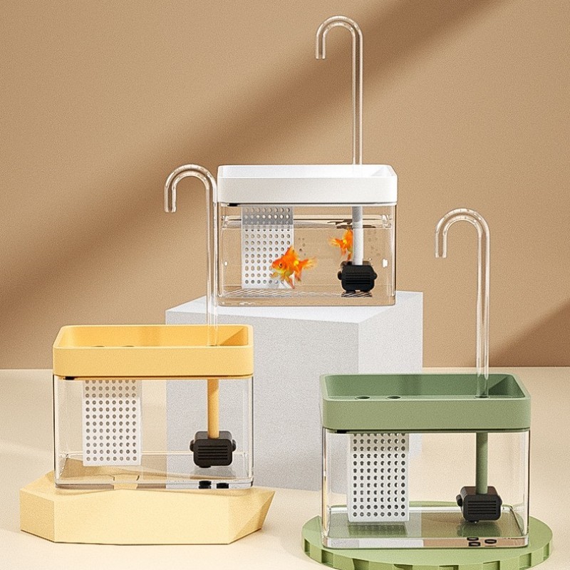 新款鱼缸小型家用方圆形防爆水族箱客厅阳台造景中小型生态桌面缸