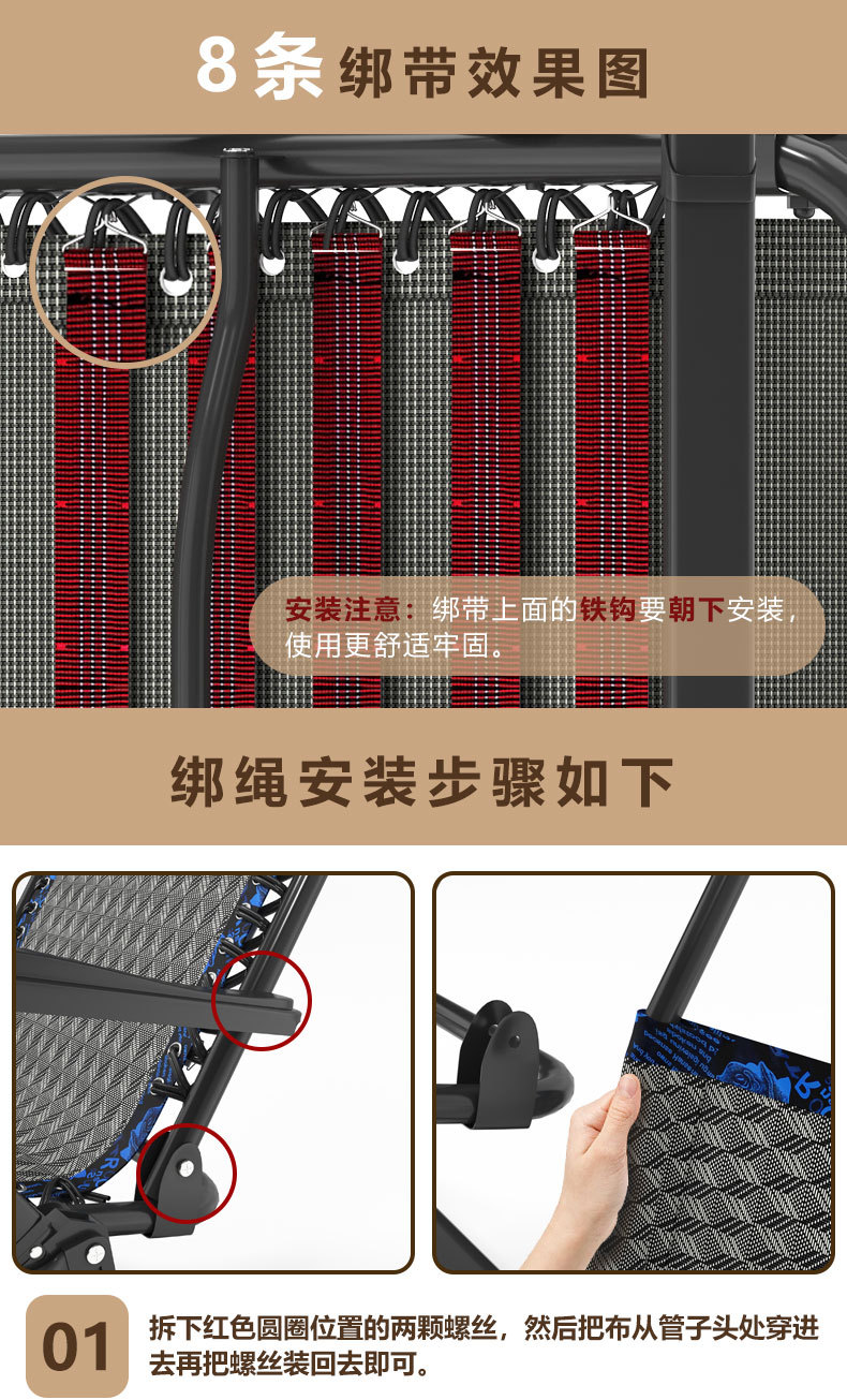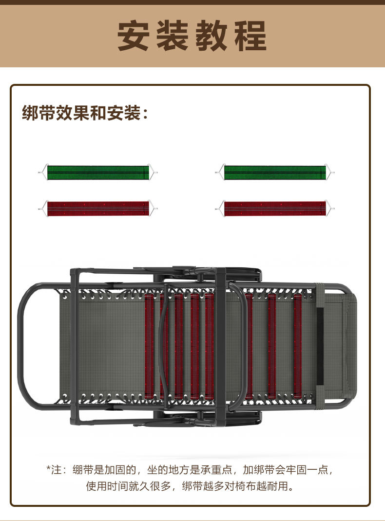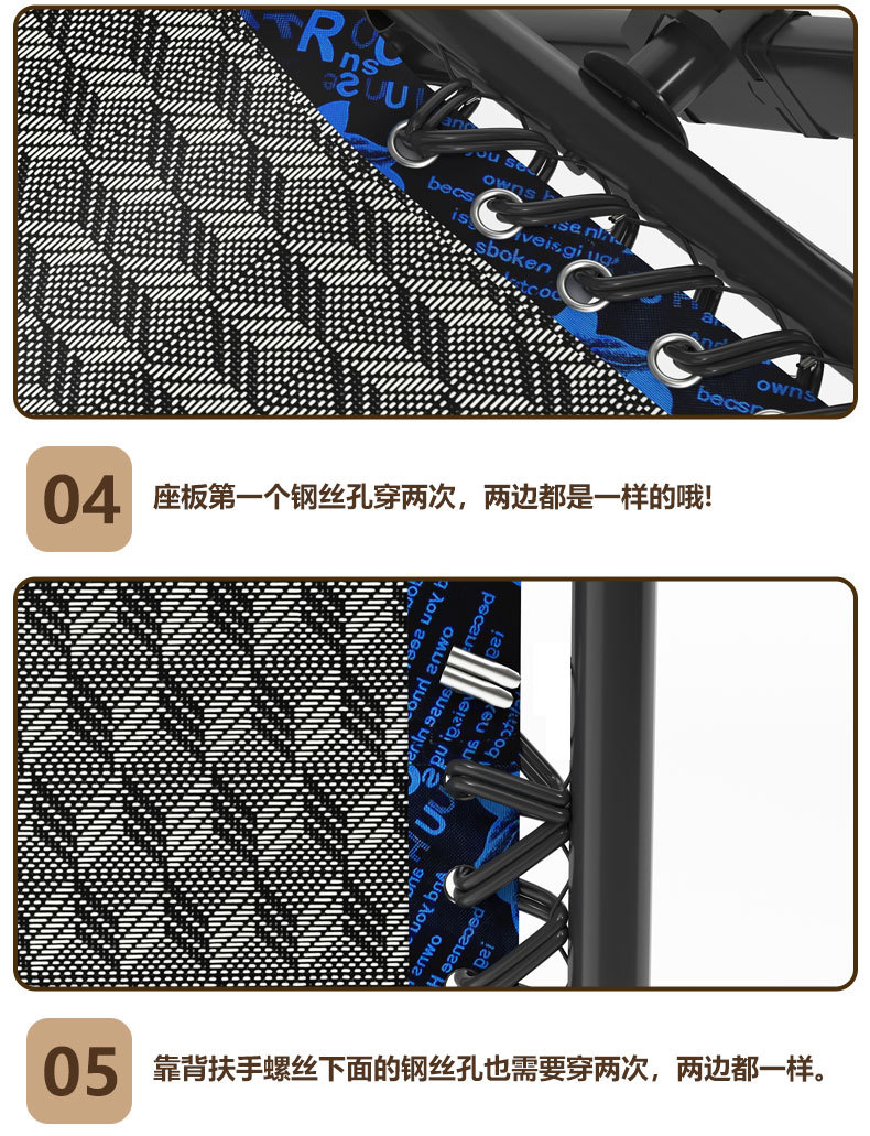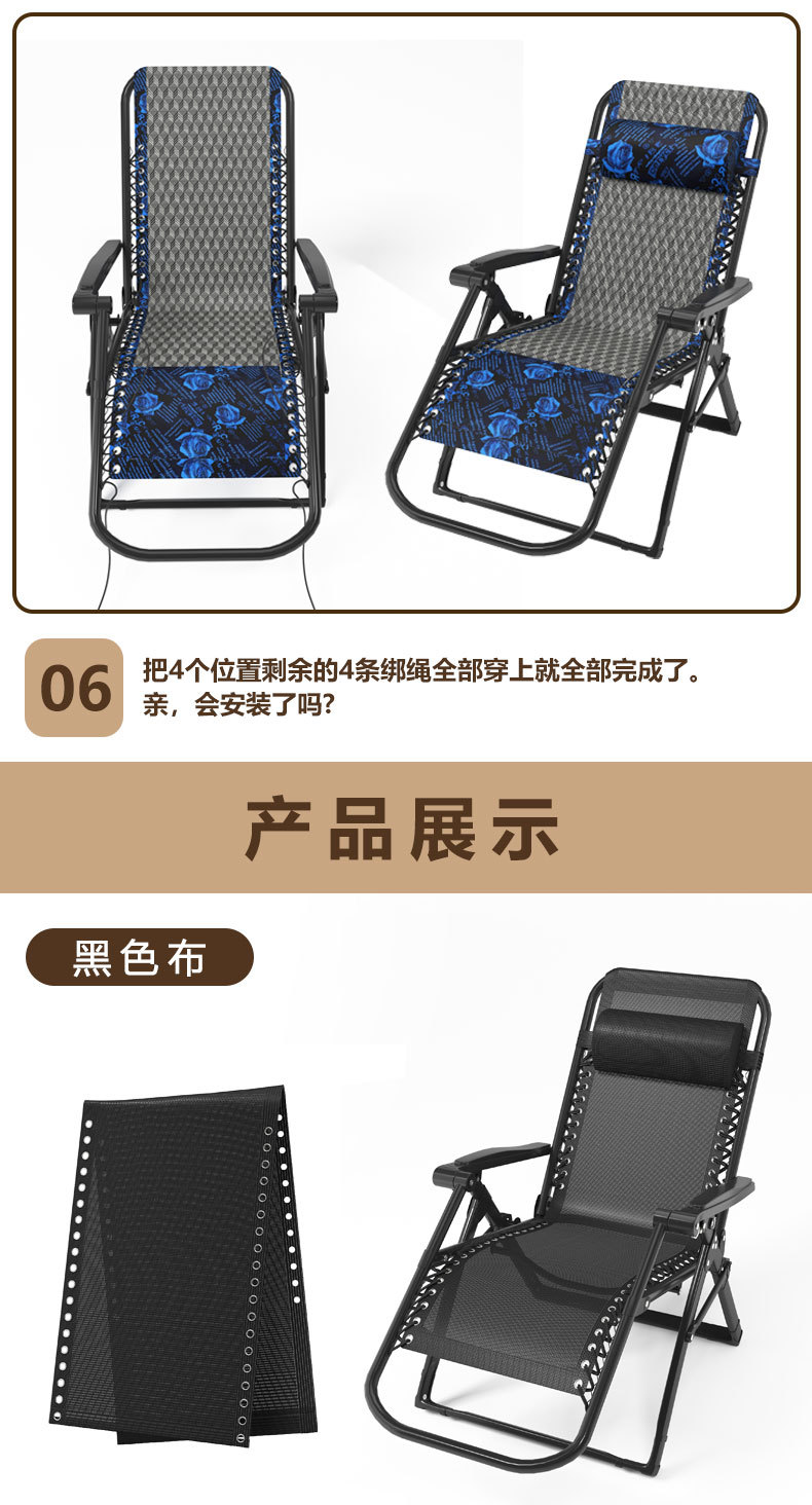 折叠躺椅黑色特斯林网布躺椅配件大全午休沙滩椅替换布加宽加厚布