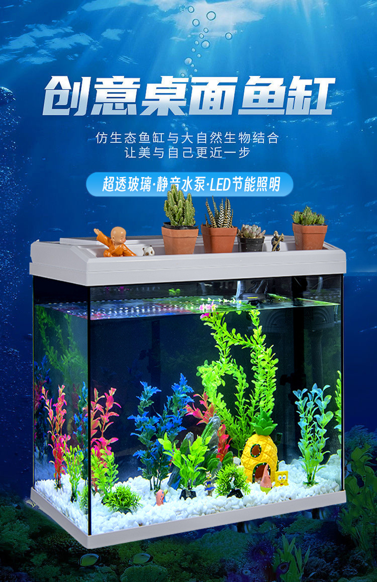 鱼缸免换水客厅金鱼缸家用懒人桌面玻璃造景创意生态中小型水族箱